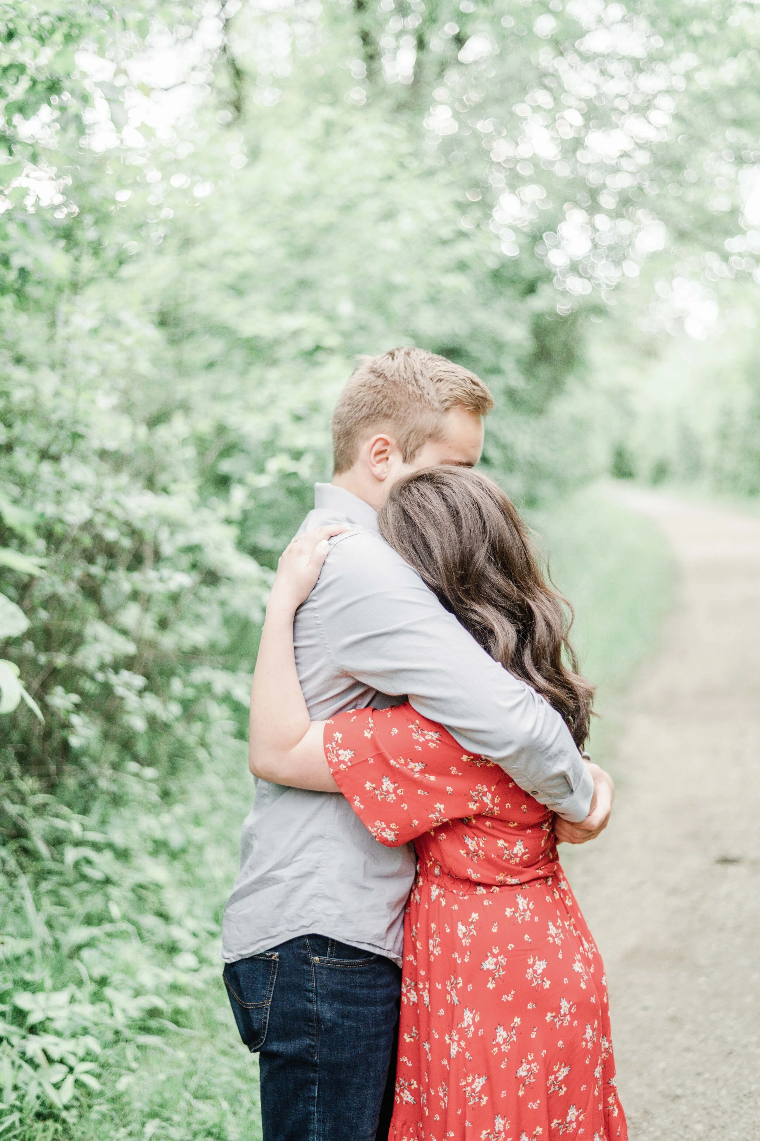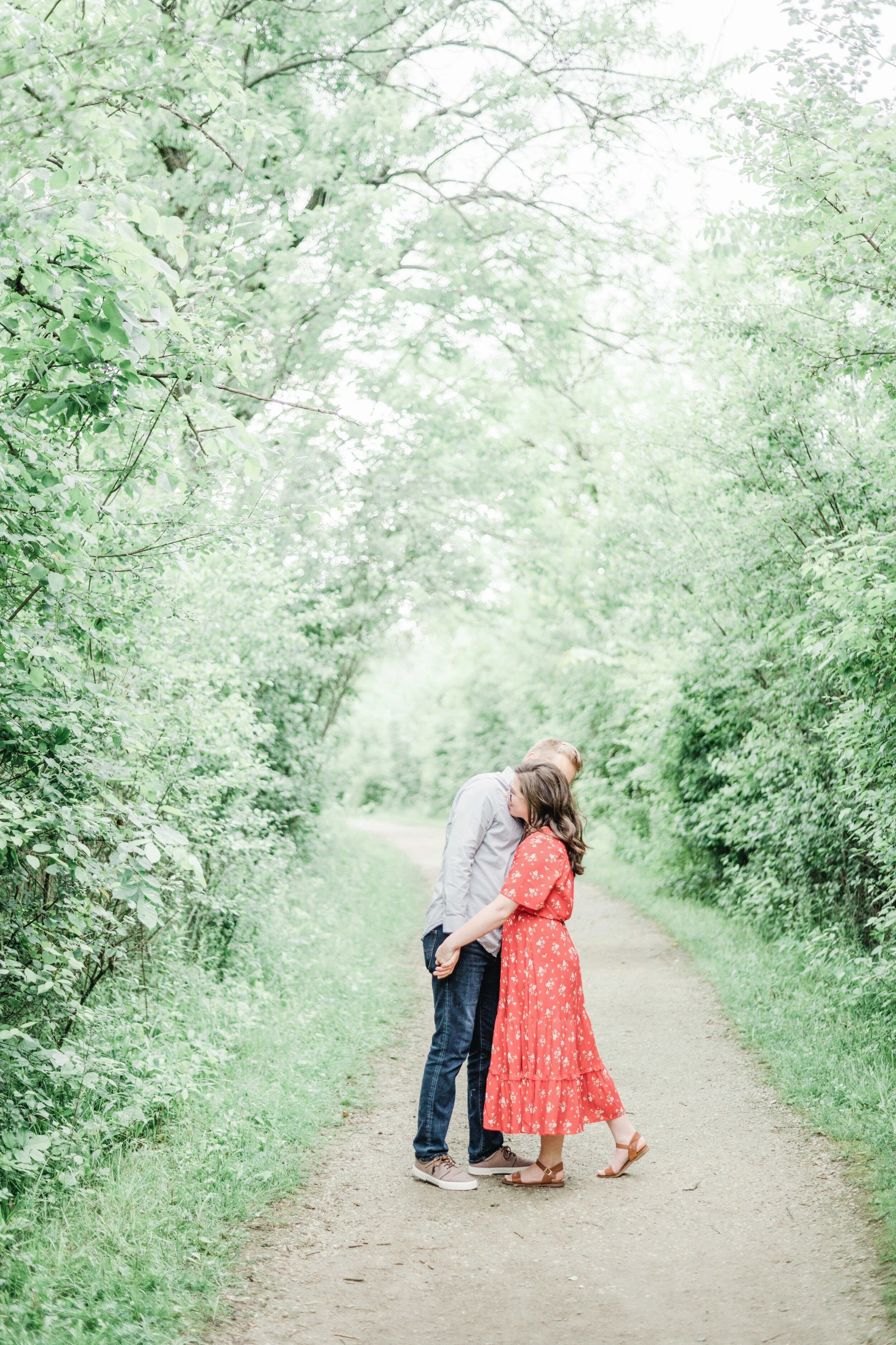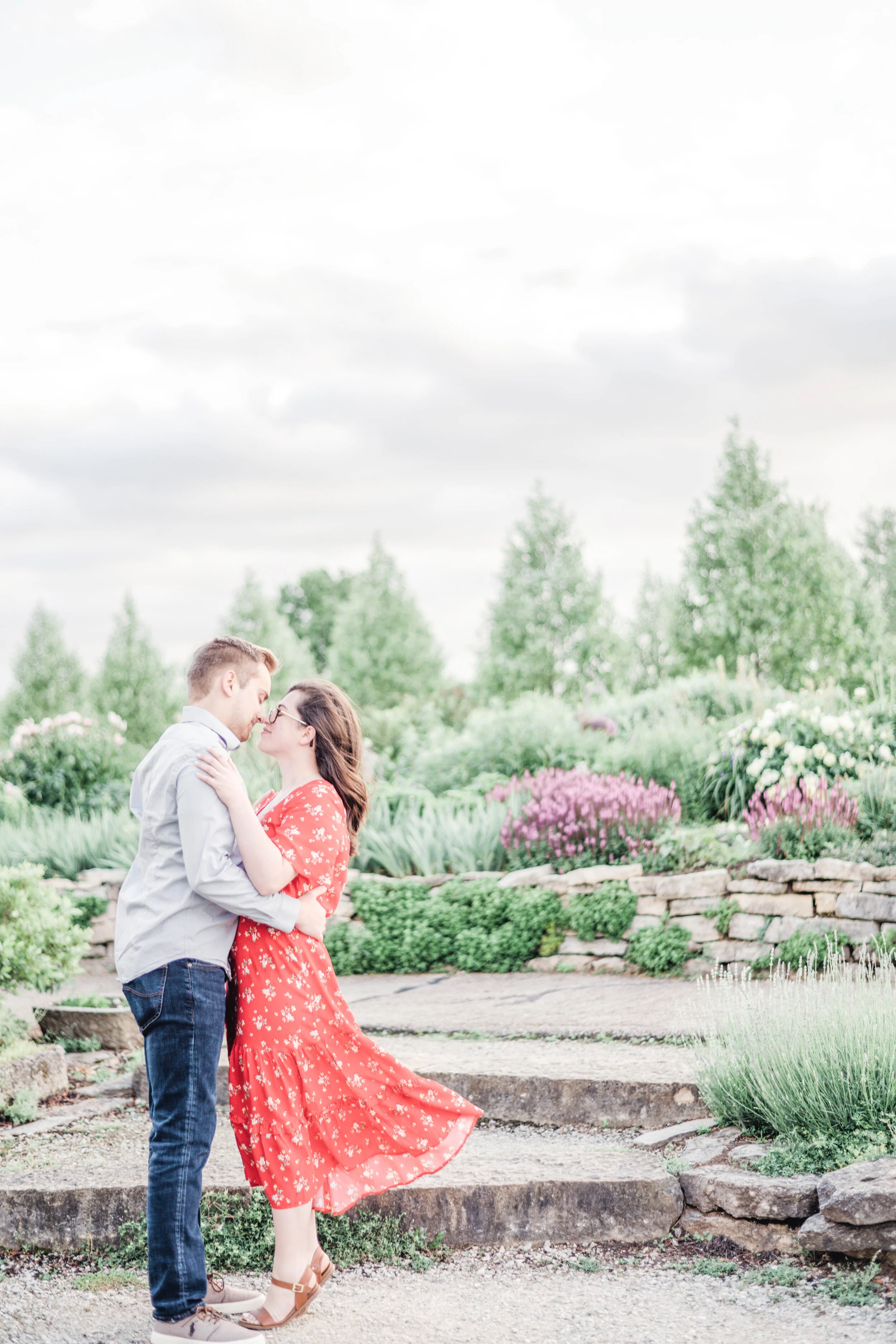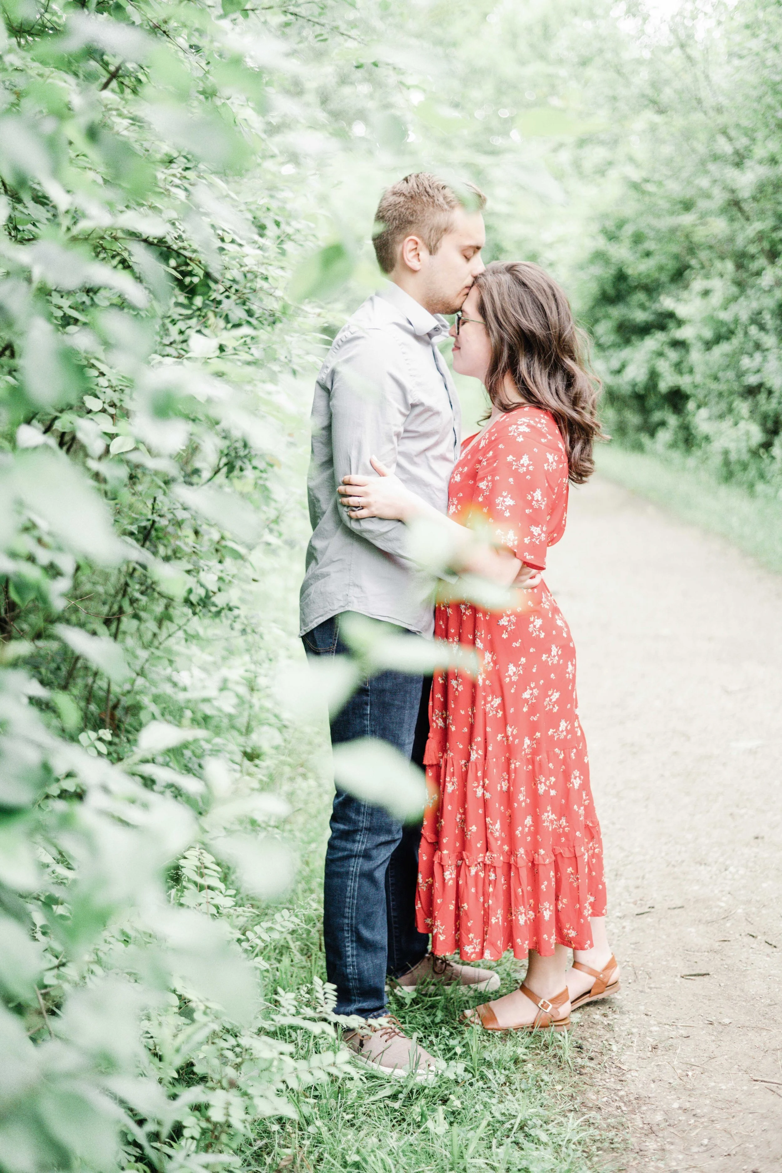 Summer engagement sessions are one of my absolute favorite things. It’s nice and warm outside. Everything is lush and green, and the sunsets are especially glowy- which is perfect for sunset engagement photos. This engagement session at Cox Arboretum was so much fun. During their engagement session, they had the sweetest family of photo-bombers. Scroll down to see exactly what happened! It was such a cute moment.