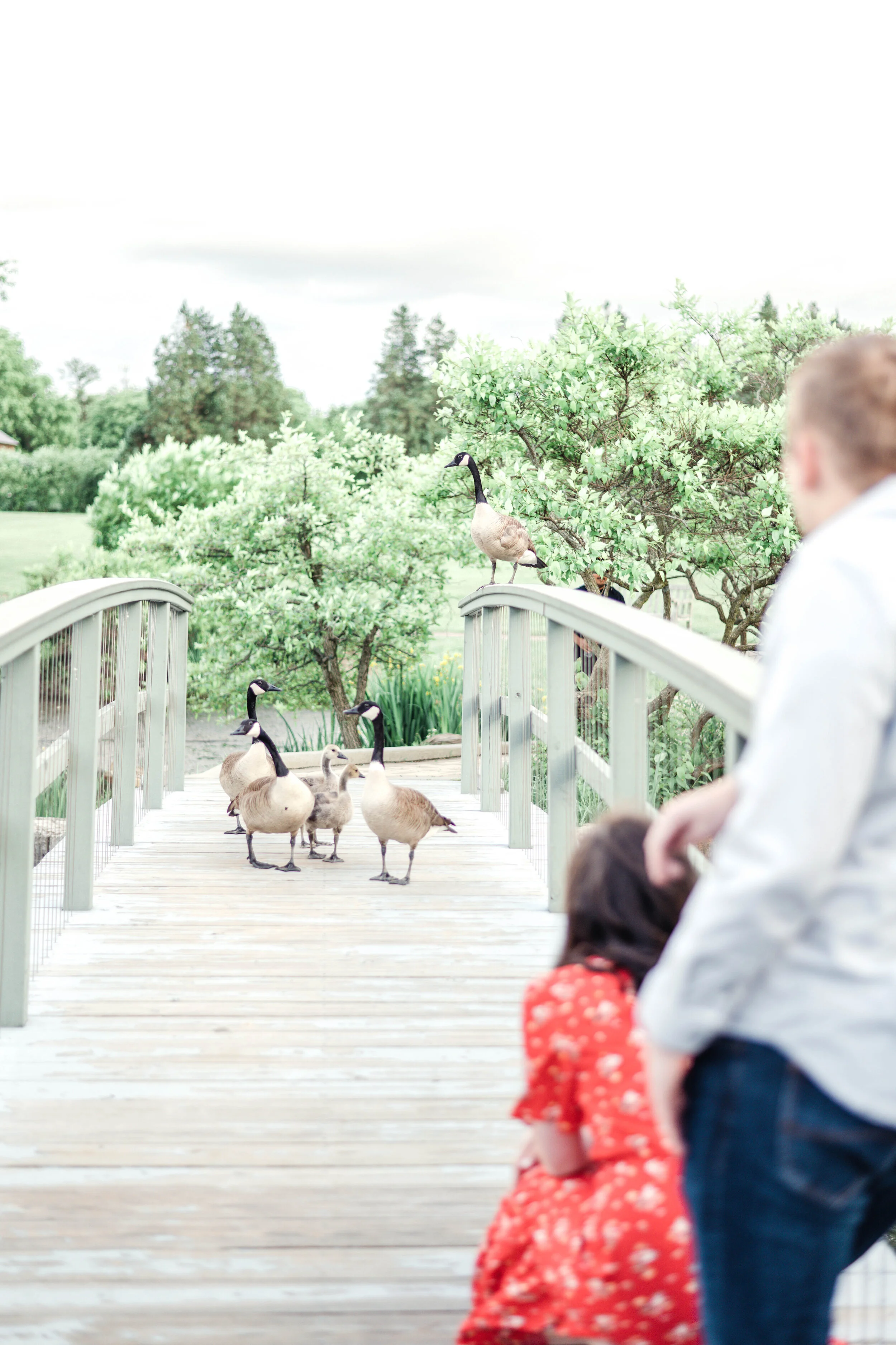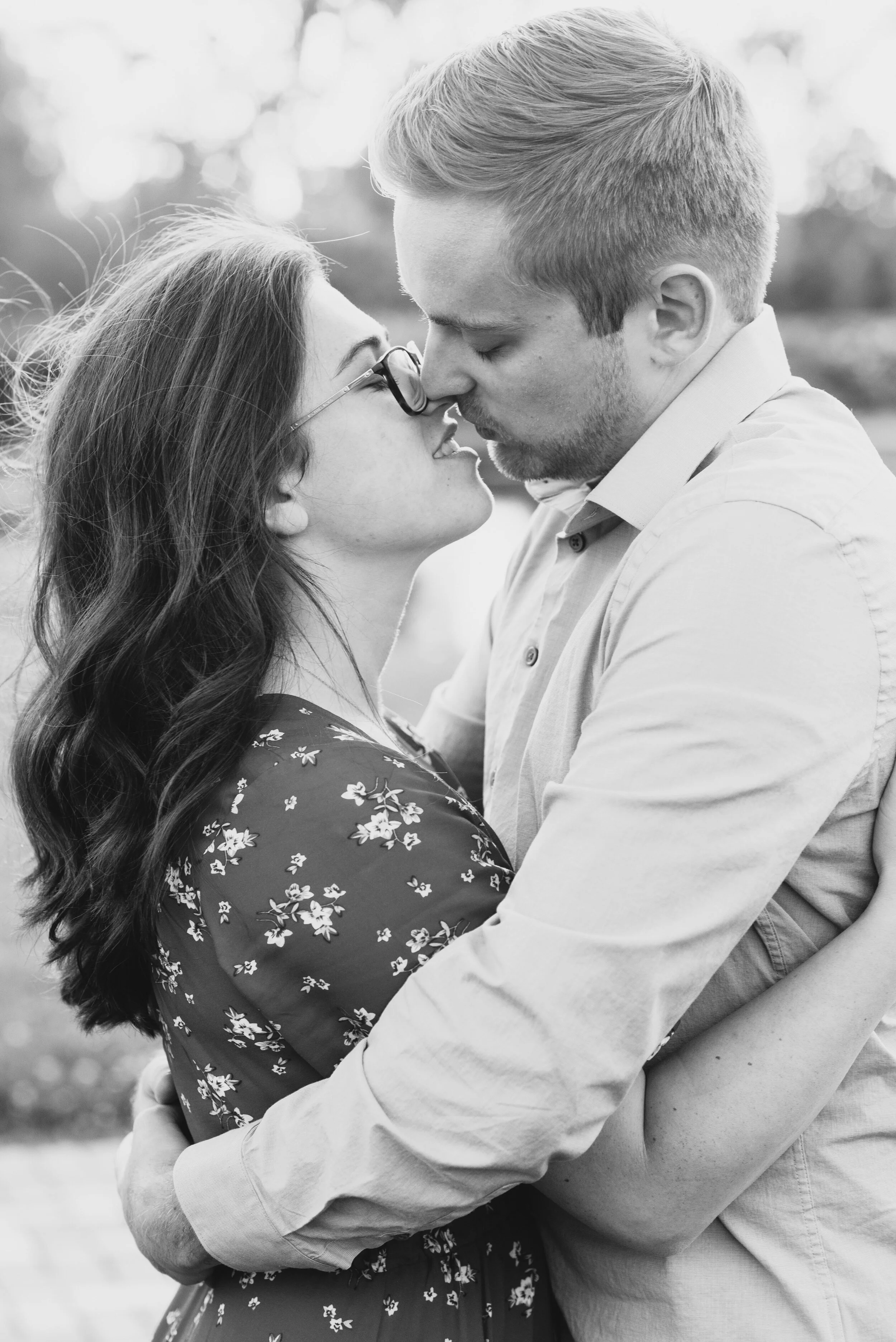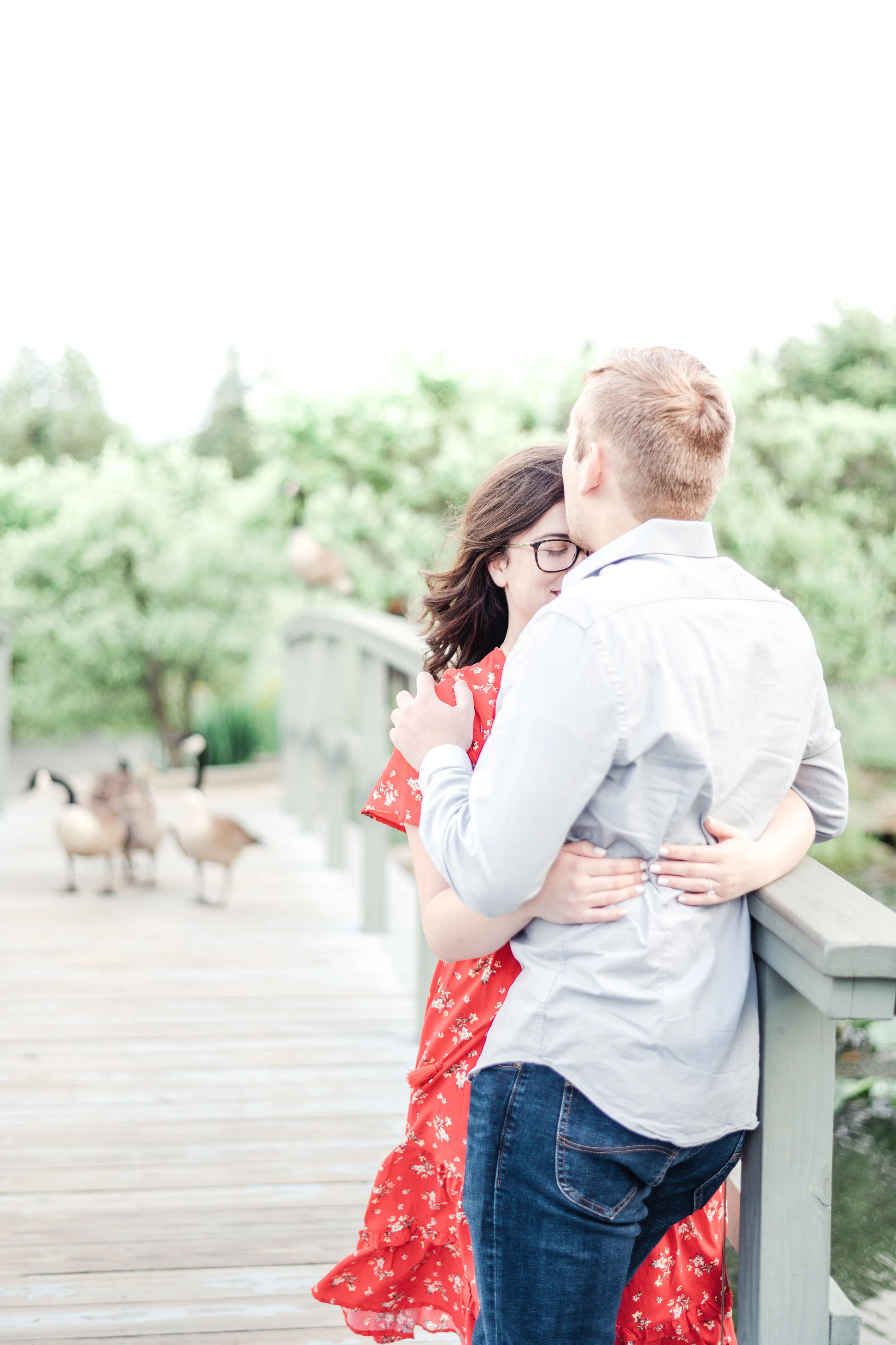 Summer engagement sessions are one of my absolute favorite things. It’s nice and warm outside. Everything is lush and green, and the sunsets are especially glowy- which is perfect for sunset engagement photos. This engagement session at Cox Arboretum was so much fun. During their engagement session, they had the sweetest family of photo-bombers. Scroll down to see exactly what happened! It was such a cute moment.