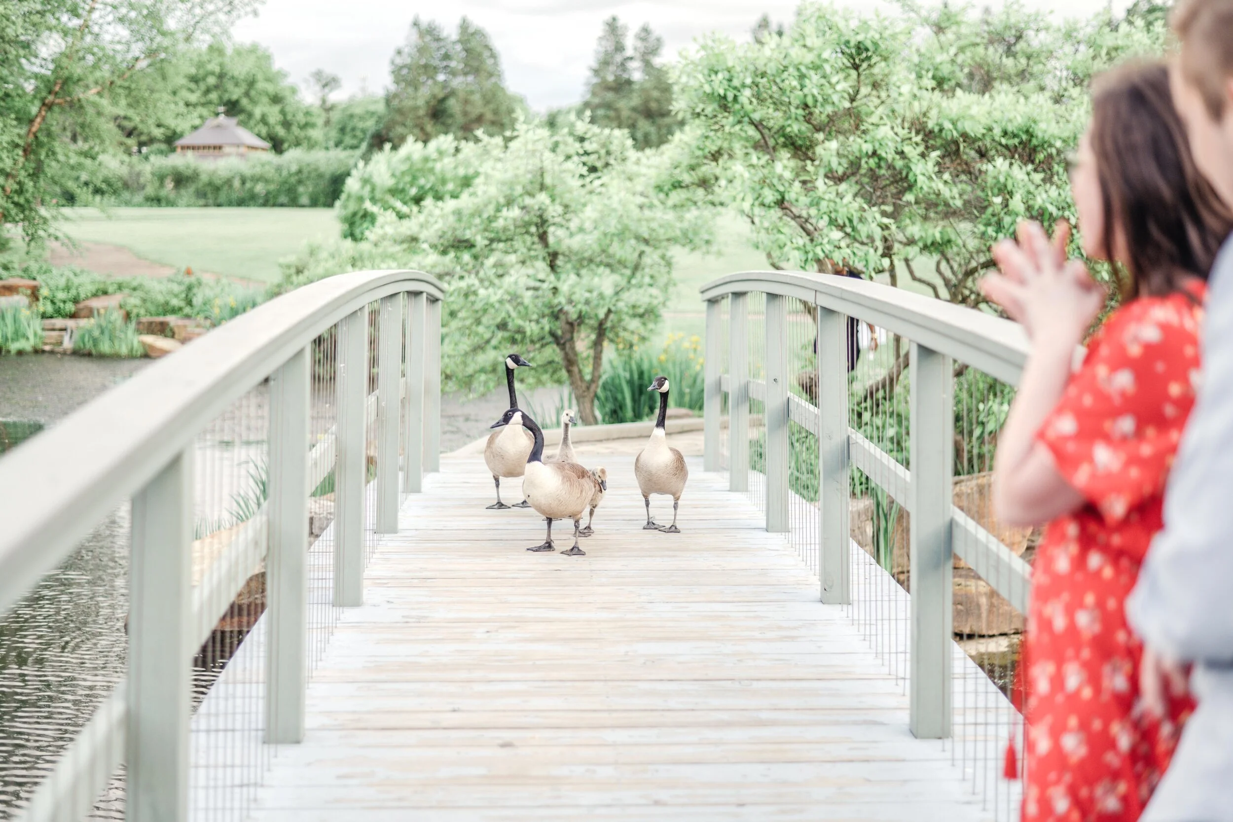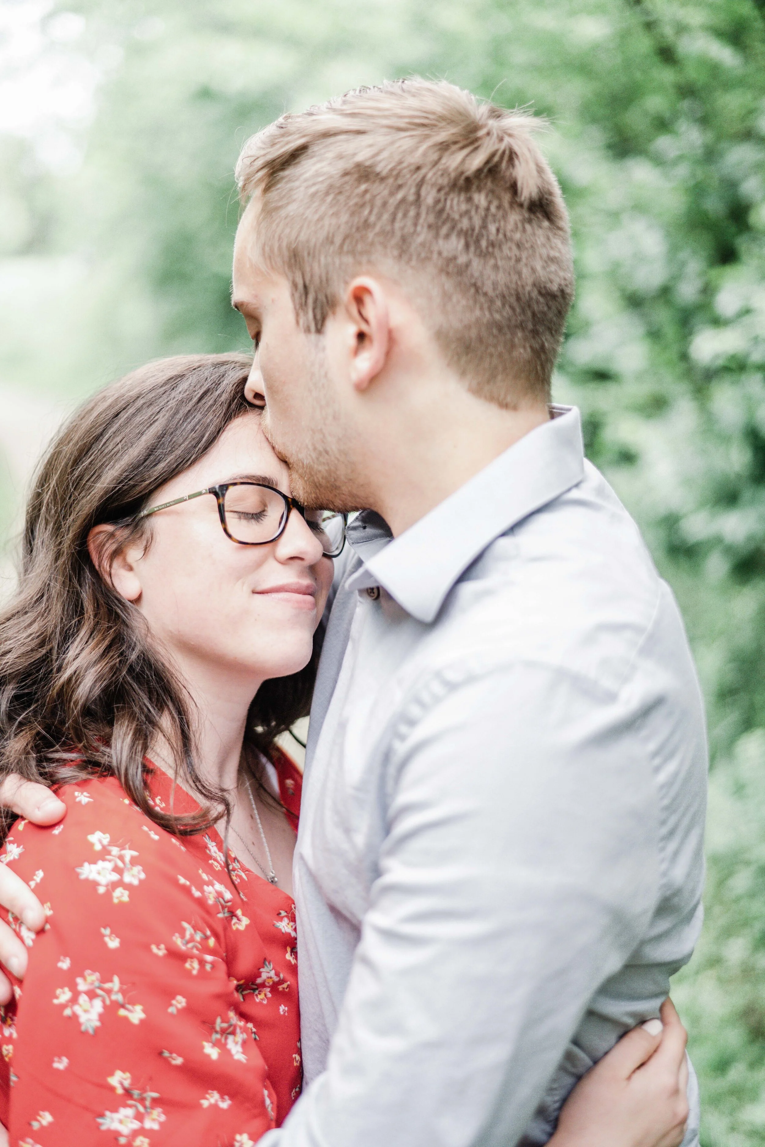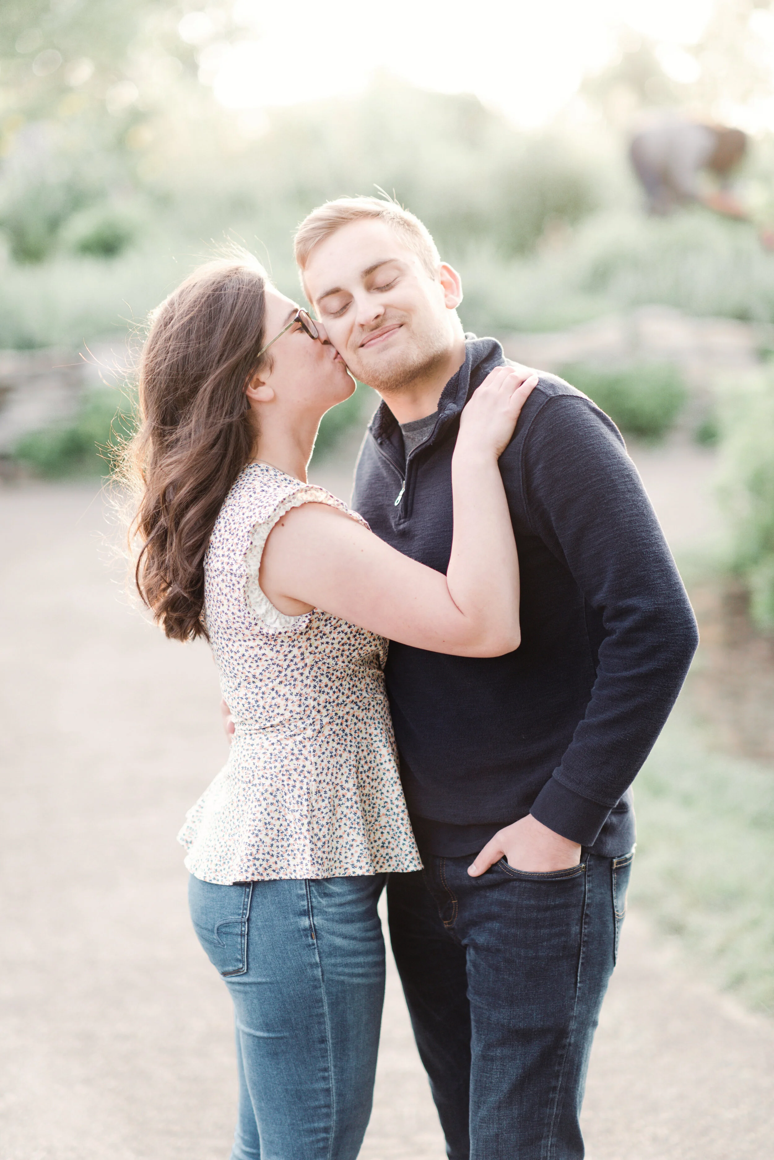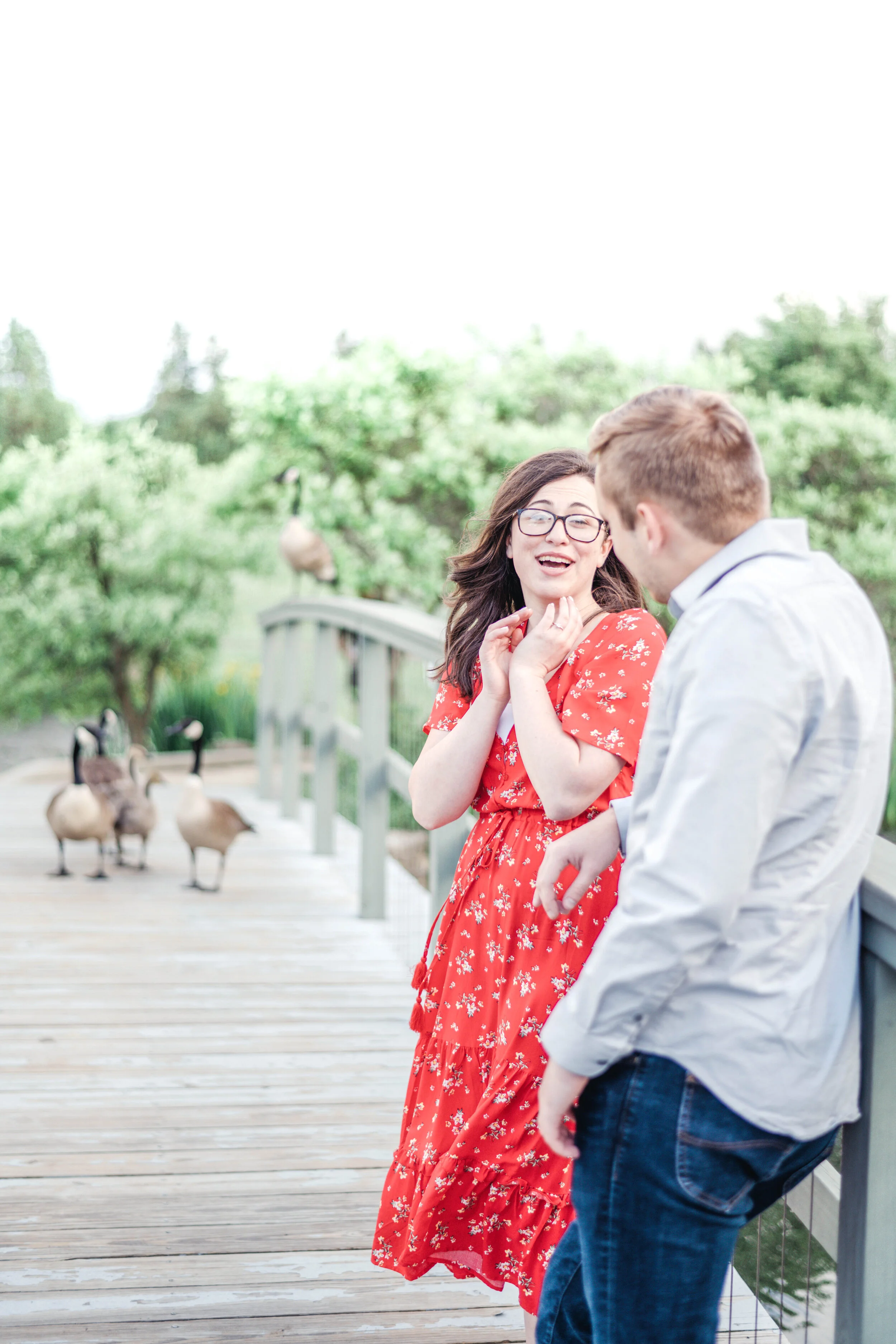 Summer engagement sessions are one of my absolute favorite things. It’s nice and warm outside. Everything is lush and green, and the sunsets are especially glowy- which is perfect for sunset engagement photos. This engagement session at Cox Arboretum was so much fun. During their engagement session, they had the sweetest family of photo-bombers. Scroll down to see exactly what happened! It was such a cute moment.