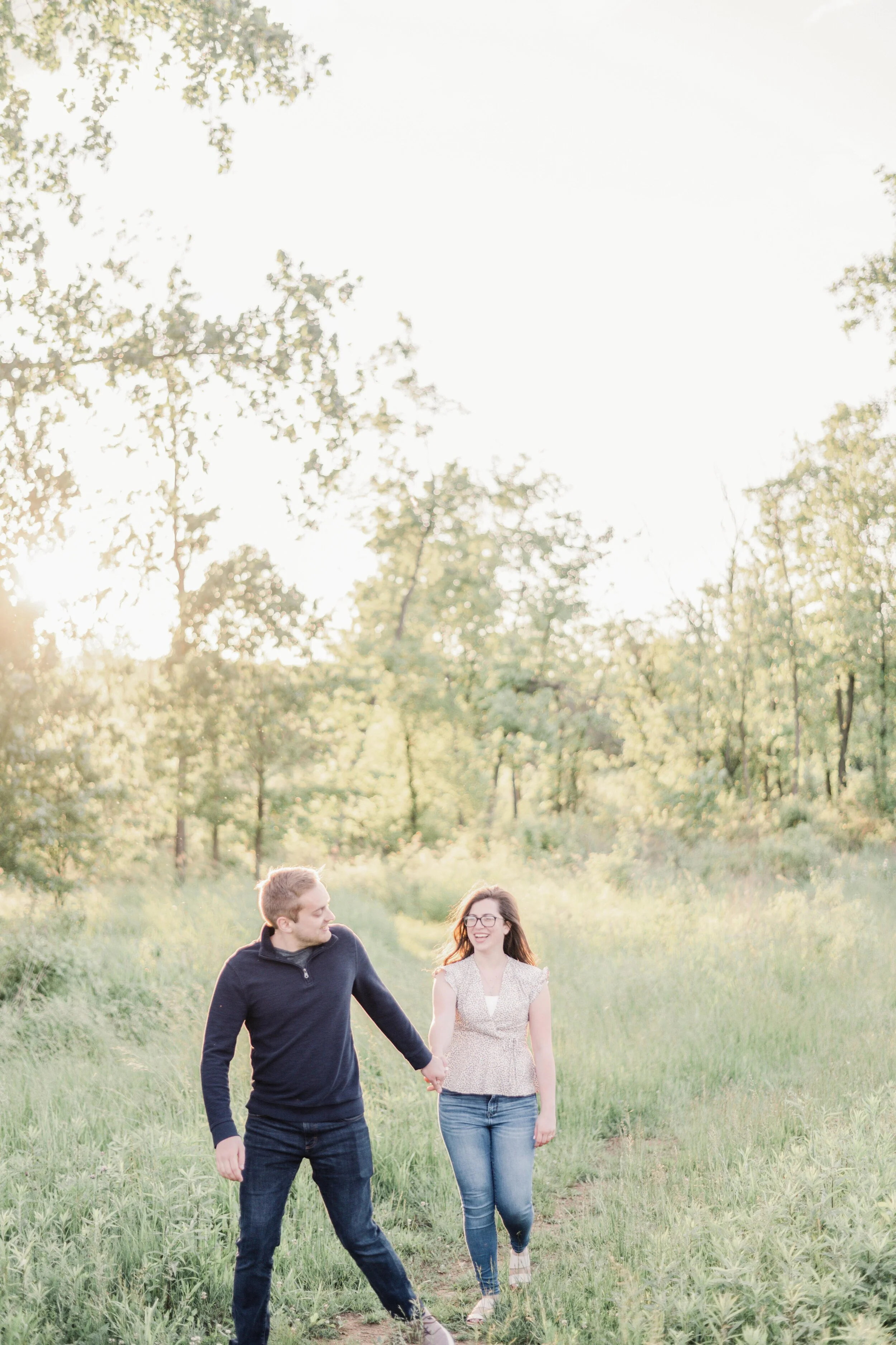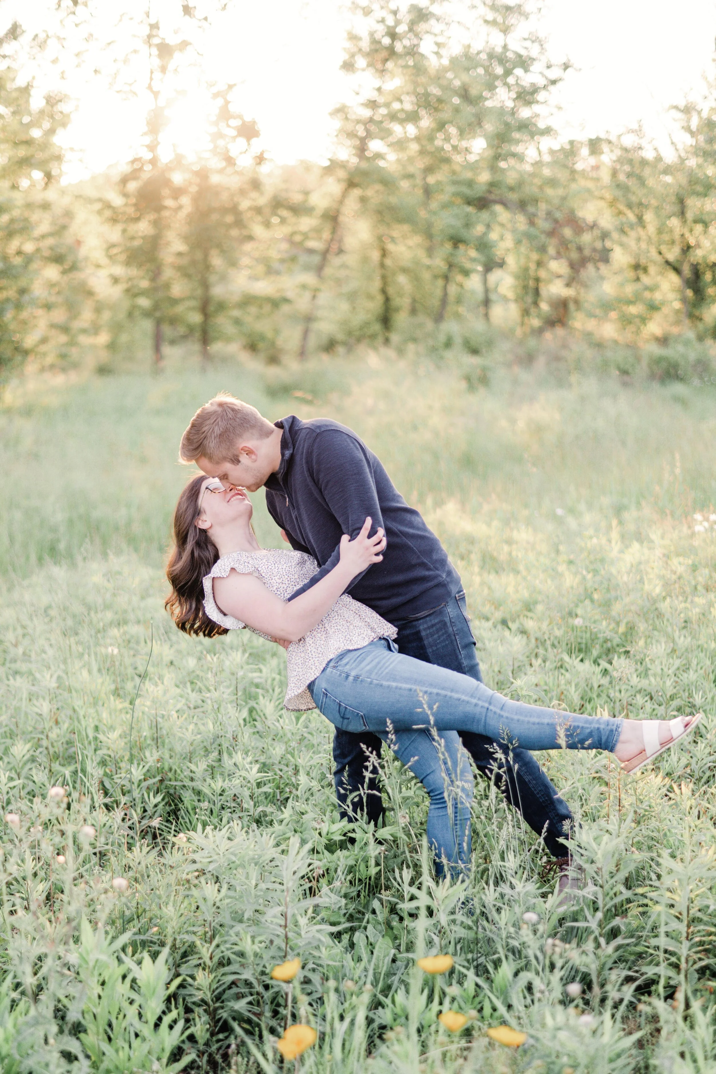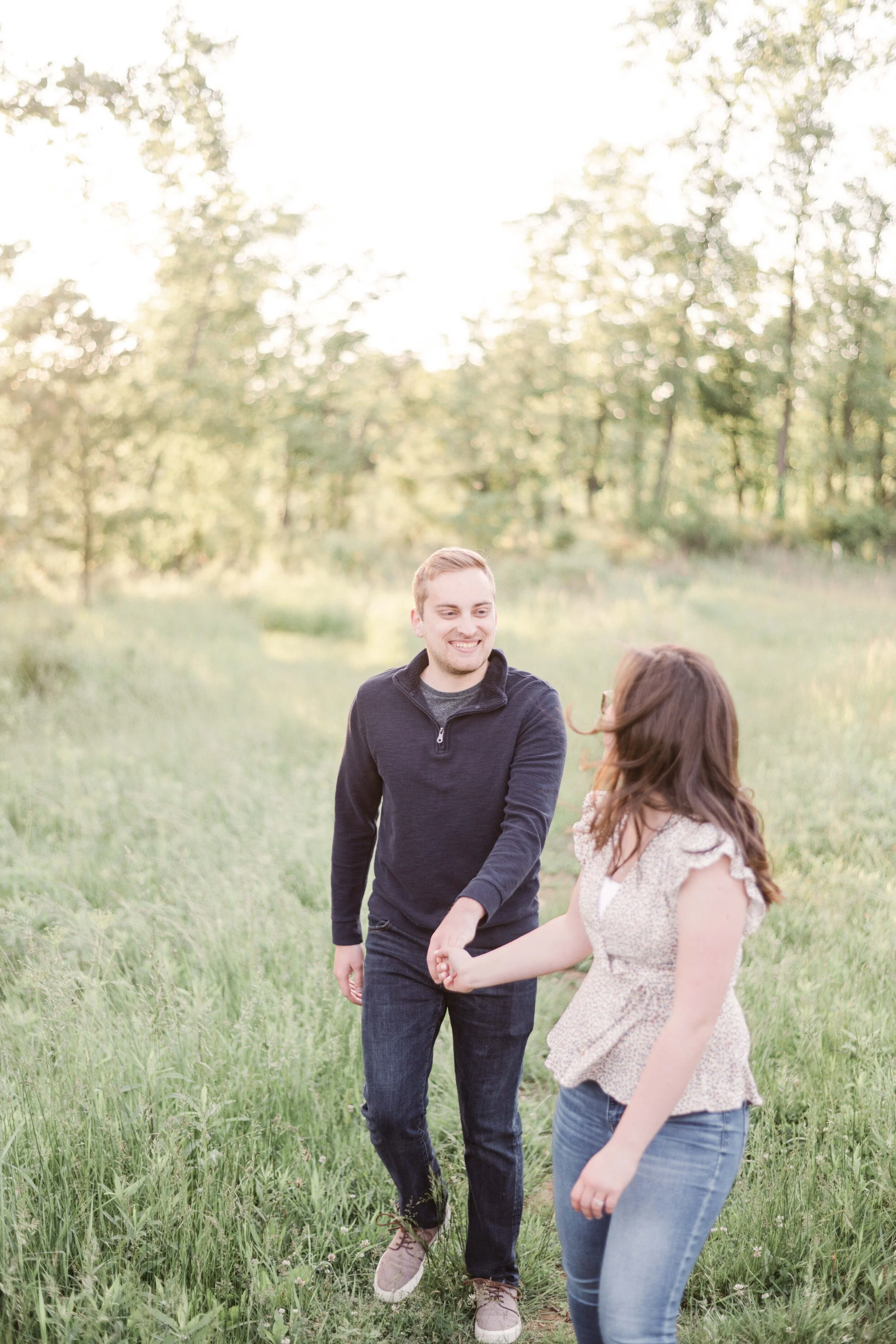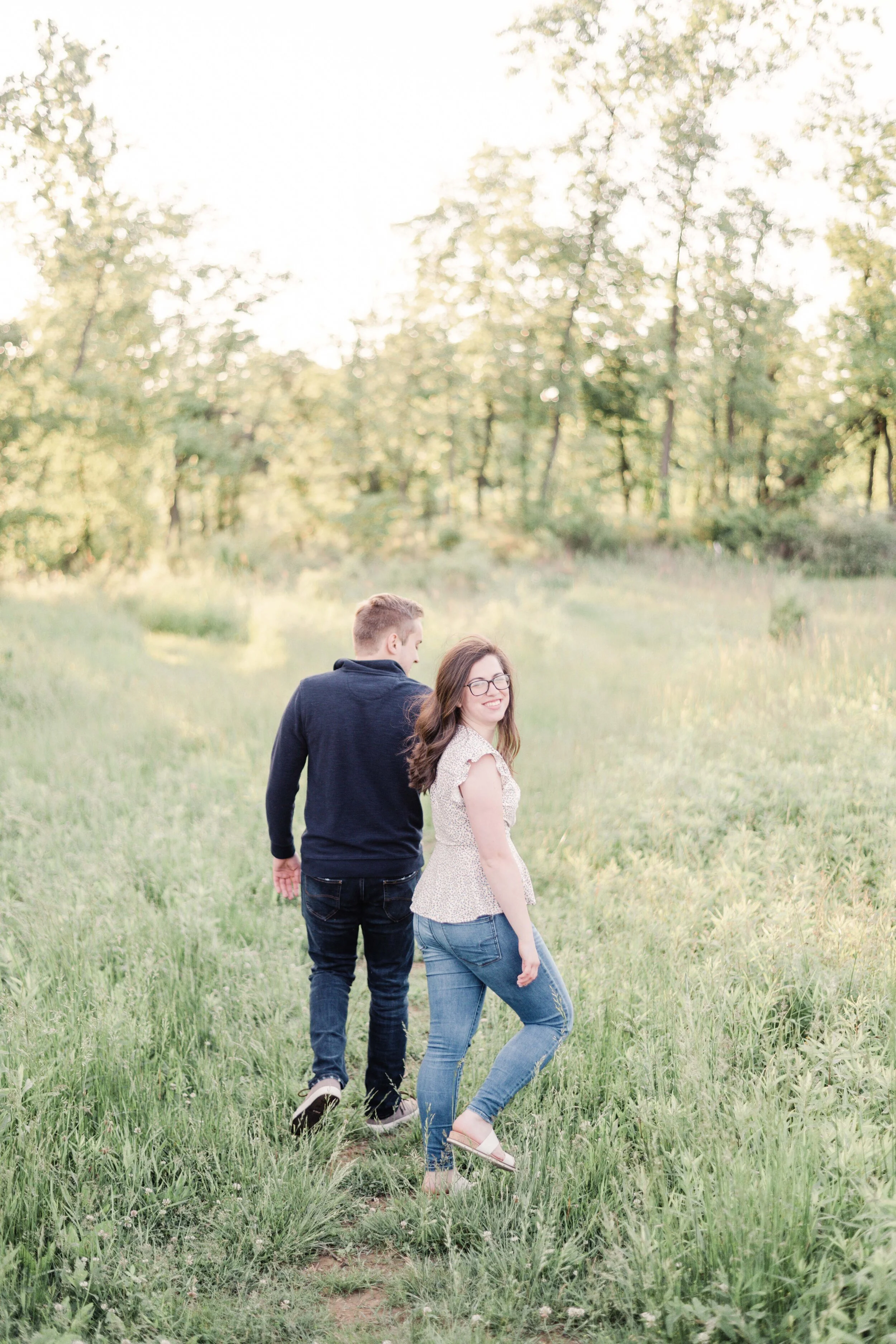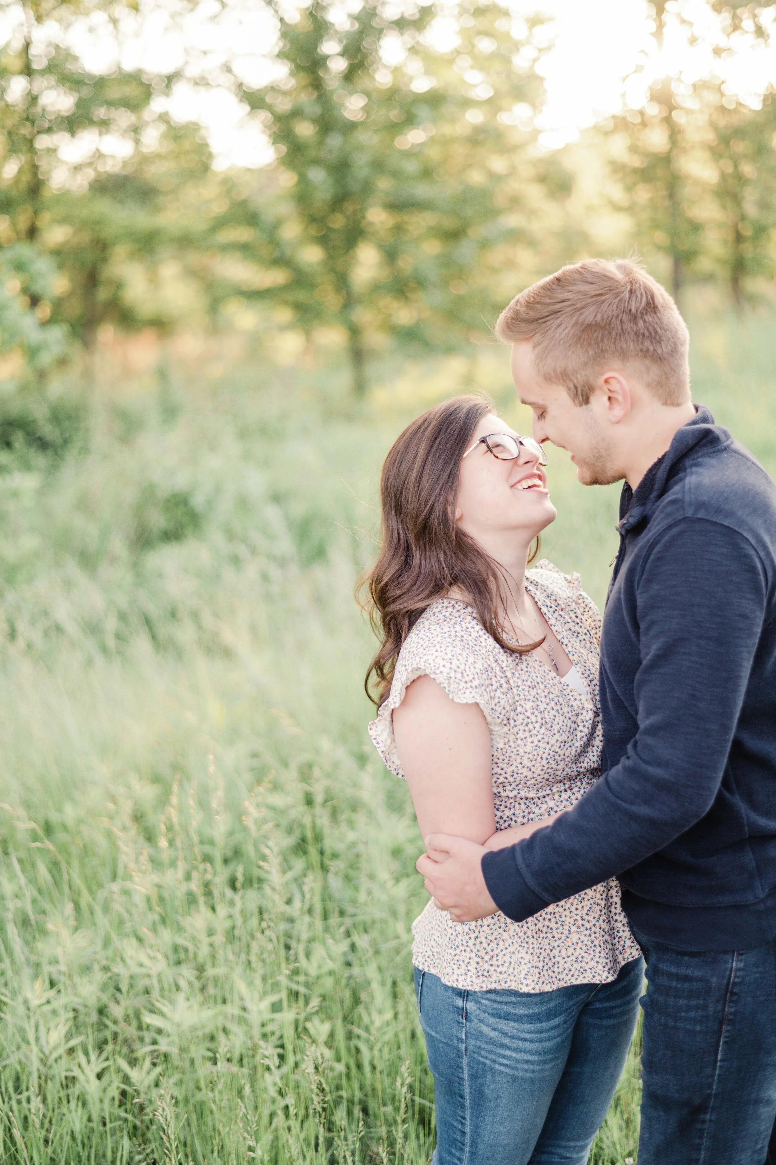Even though it started out overcast, the sun made an appearance right at sunset so that we could get some sunset engagement photos in the grassy field. I am so excited to photograph A & G’s big day next year! Enjoy these summer engagement photos at Cox Arboretum! Just a quick note- if you want to have any type of portraits taken at a Five Rivers Metropark in Dayton, they do require your photographer to have a permit to do so. Make sure to ask in advance if they have that (I do!).