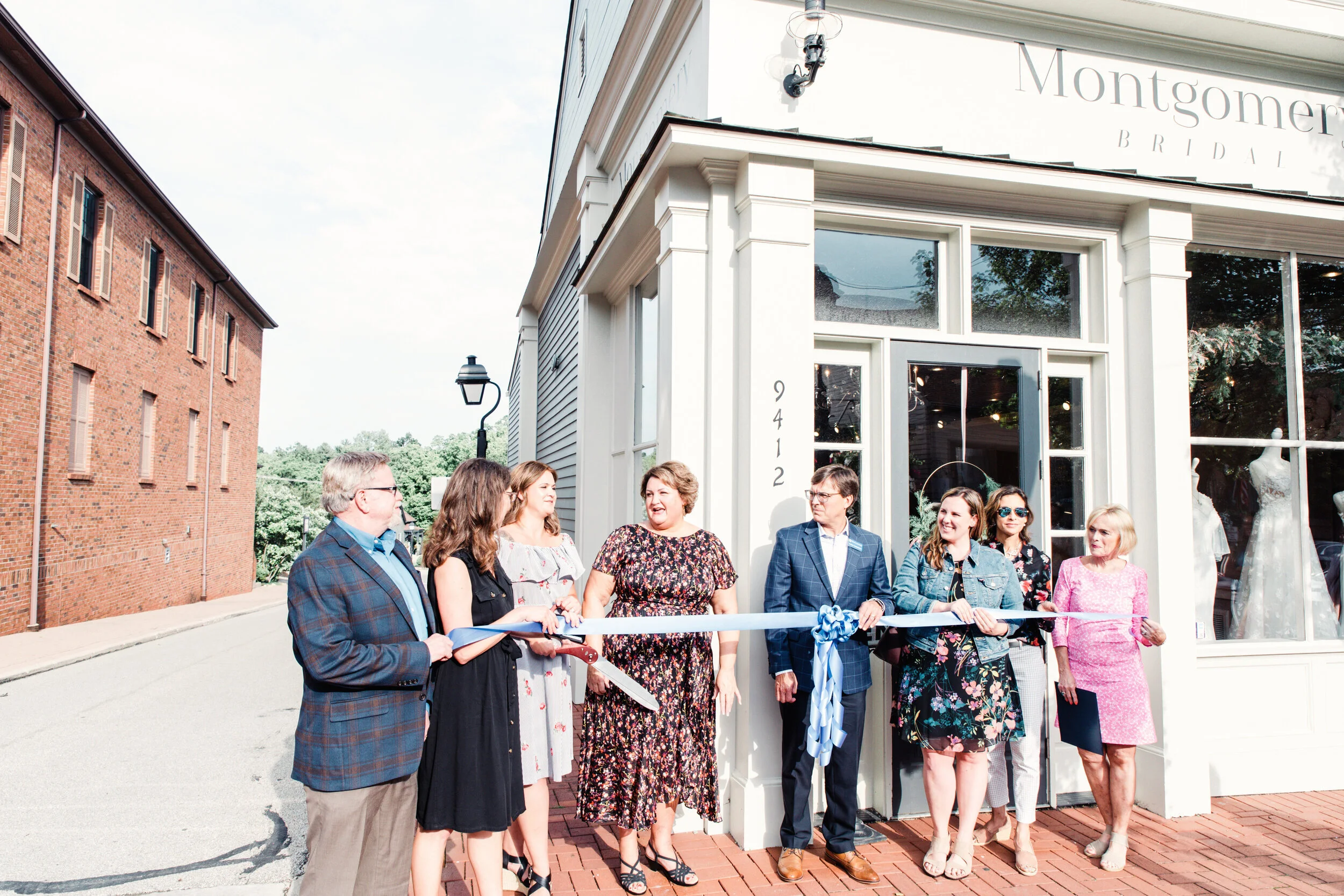 Last night, the city of Montgomery, Ohio welcomed a brand new bridal boutique to their downtown area. Montgomery Bridal is a gorgeous bridal gown dress shop that focuses on excellent client experience. They truly want their brides to enjoy the process of finding the perfect wedding gown, and put a huge effort into making every dress shopping appointment a magical one.
