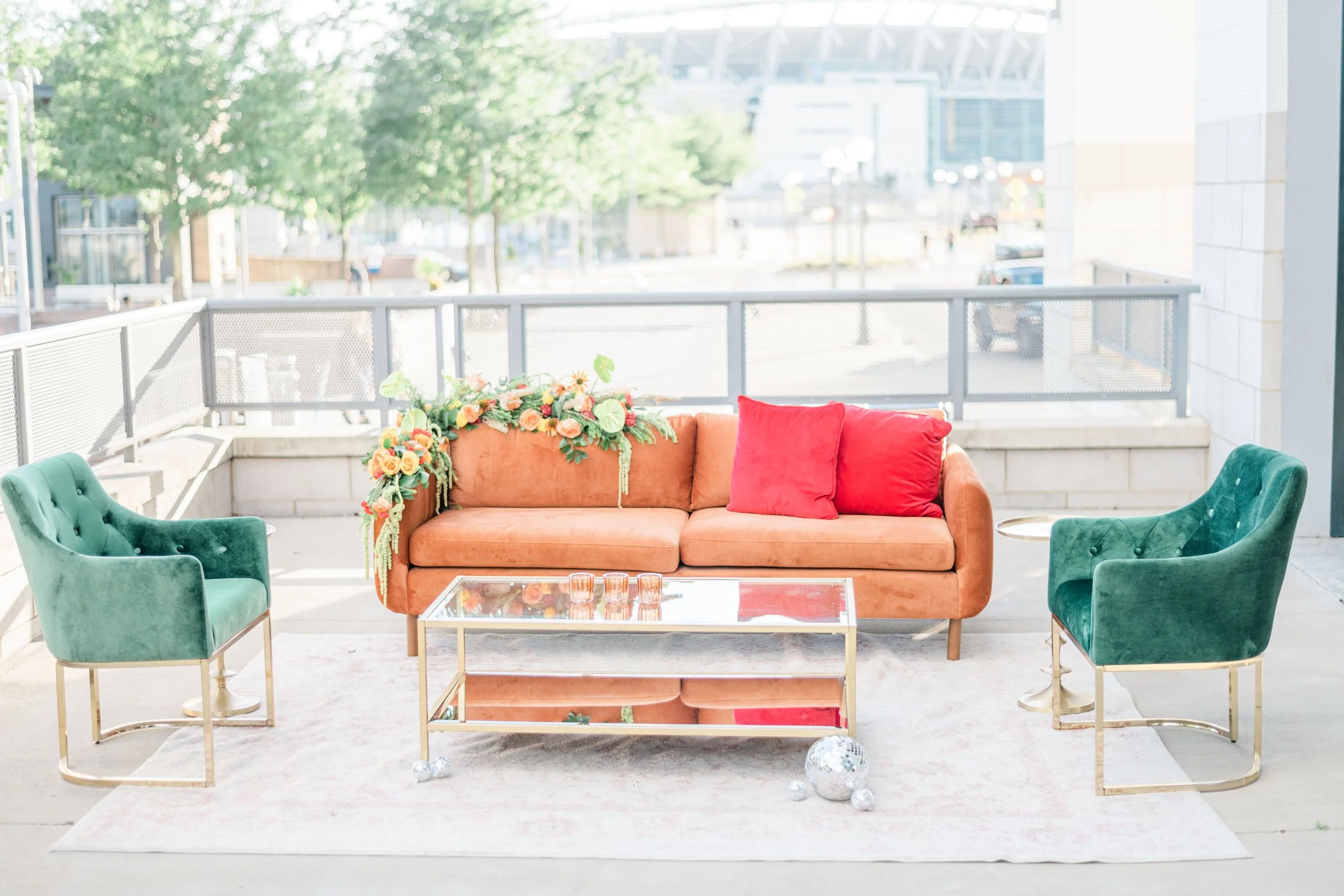 Planning & Styling: Electric Love Events // Lead Photography: Brit Jaye Photography // Hosting Venue: Sample Space // Floral Design: Flohemian Florist // Installations & Backdrops: Lain Studios // Furniture Rentals: Lost & Found // Ceremony Chairs & flatware: Primetime Party Rental // Dresses & Bridal Suit: Renee Grace Bridal // Men's Wear: The Black Tux // Custom Jewelry: Honey Designs // Paper Goods: Printed Hand Studio // Cake: Icon Cakes // MUAH: Salon Noir Mobile // Balloonist: Haute Air Balloons // Bounce House: Queen City Bounce // Charcuterie Cones: Graze & Gather // Cotton Candy Cart: Queen City Cotton Candy /