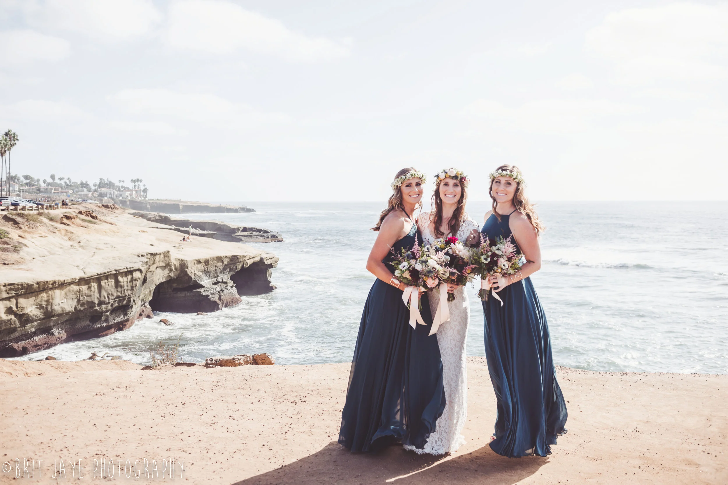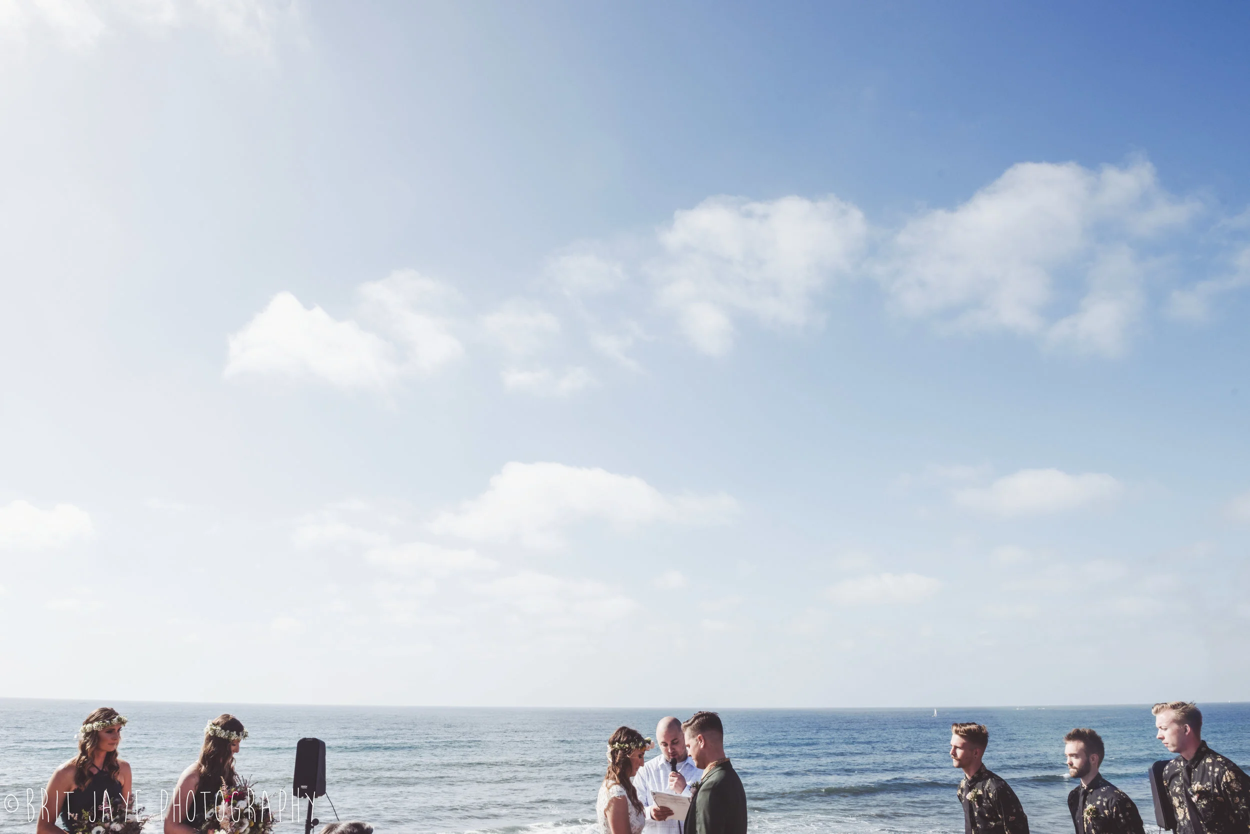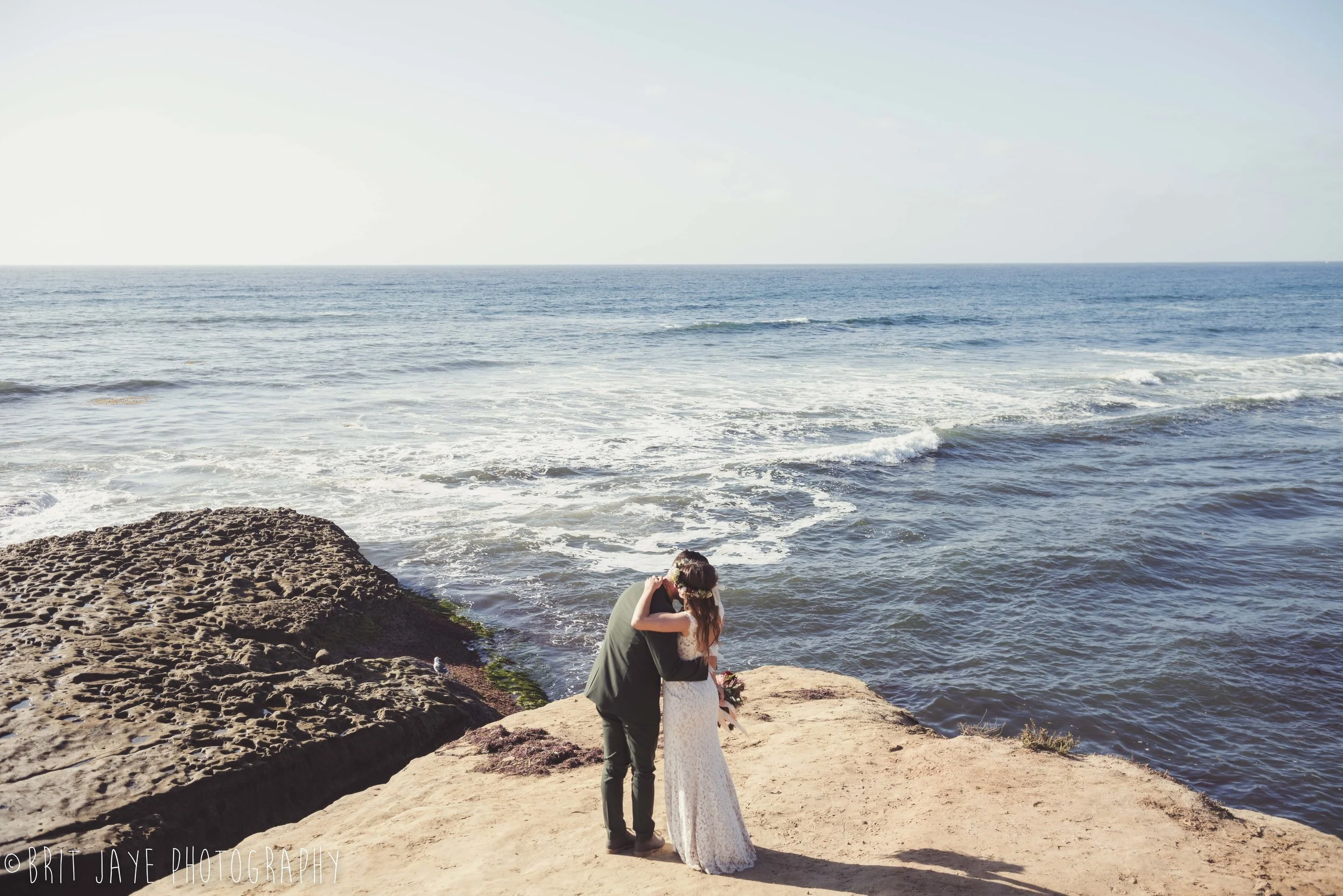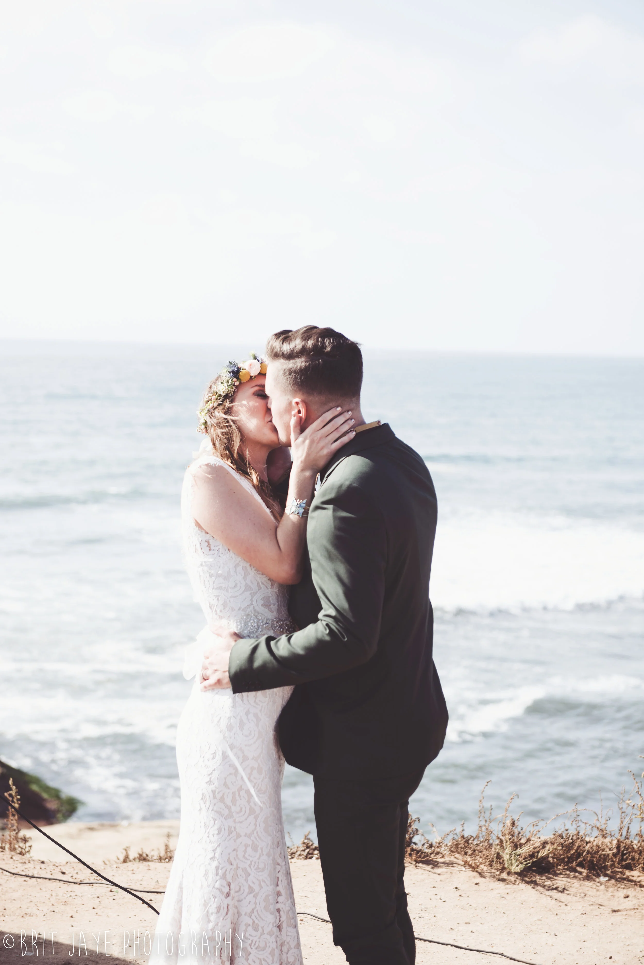 Ceremony Location: Sunset Cliffs Natural Park // Reception Location: BO-Beau Kitchen + Bar // Photography: Brit Jaye Photography // Wedding Dress: BHLDN // Florist: La Belle Bloom