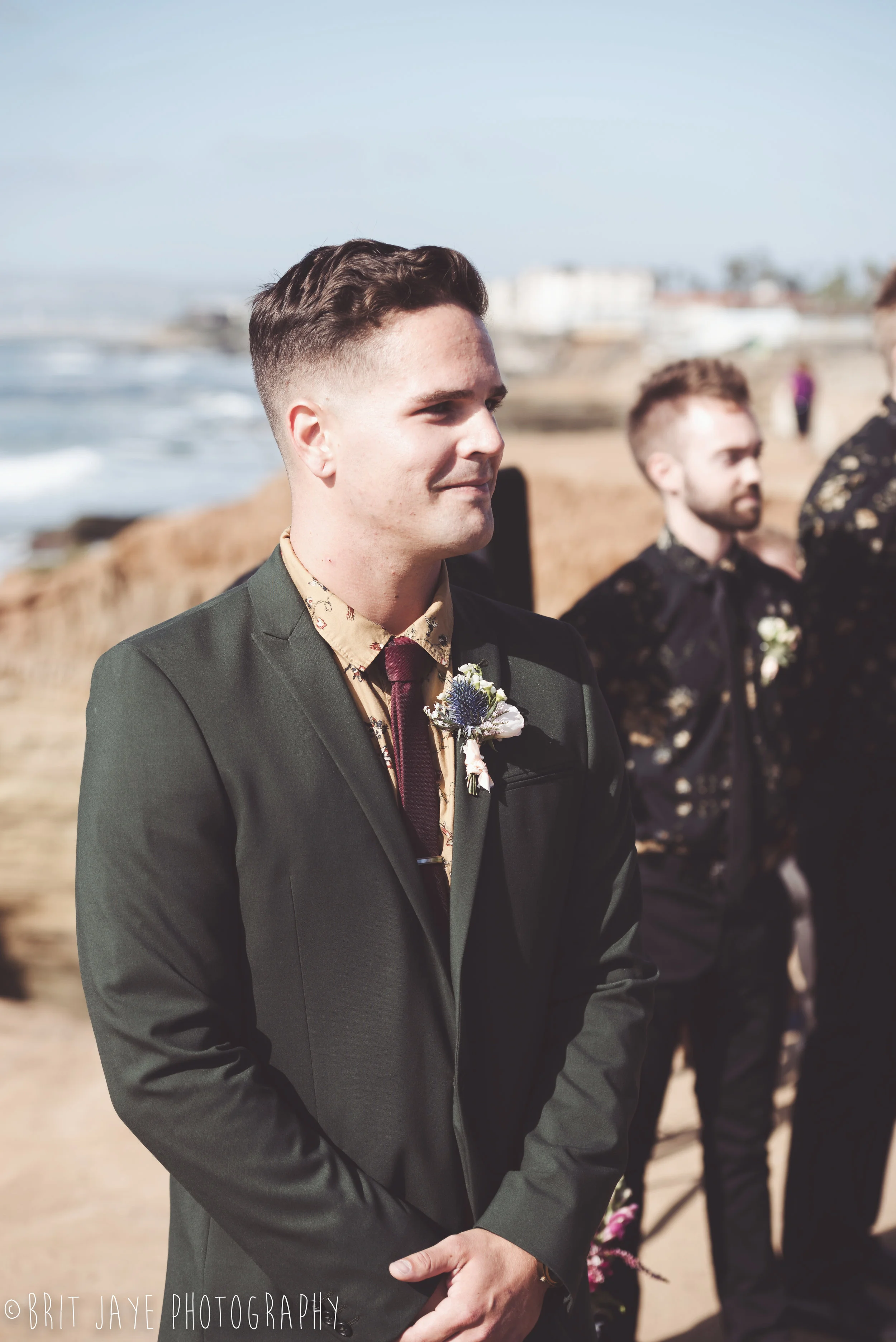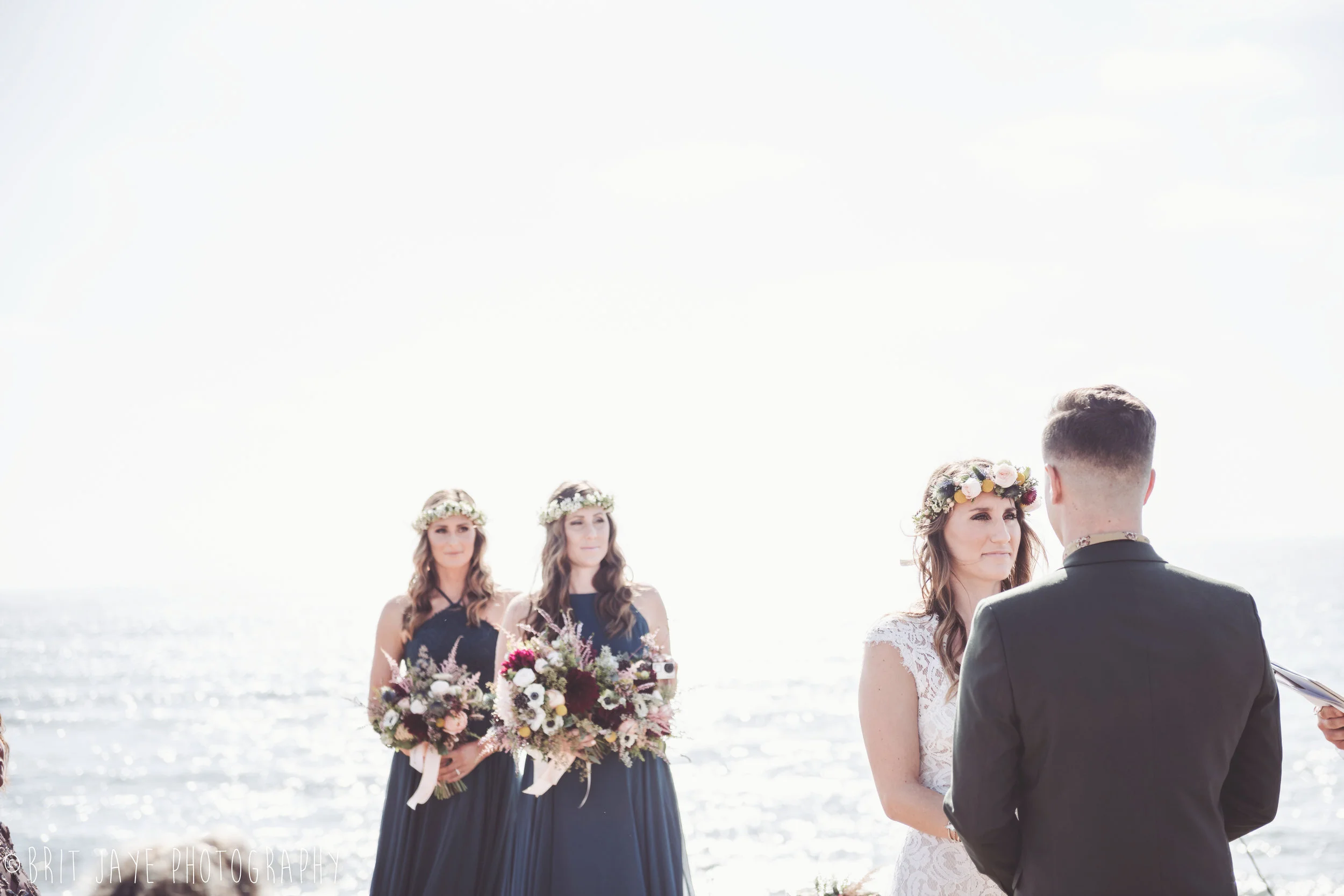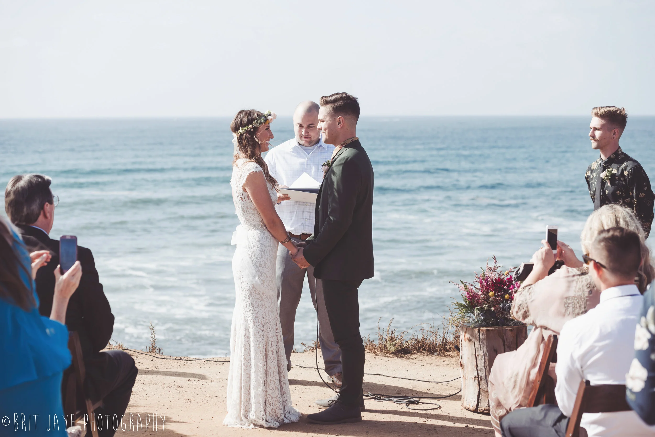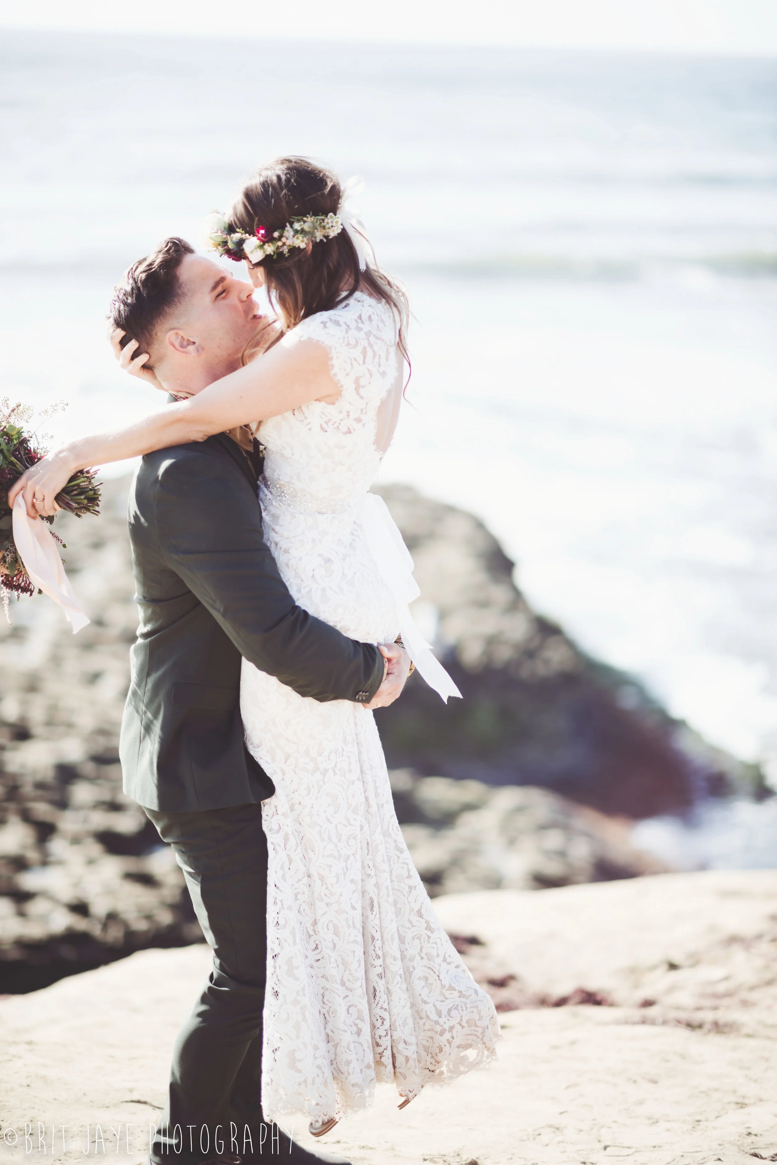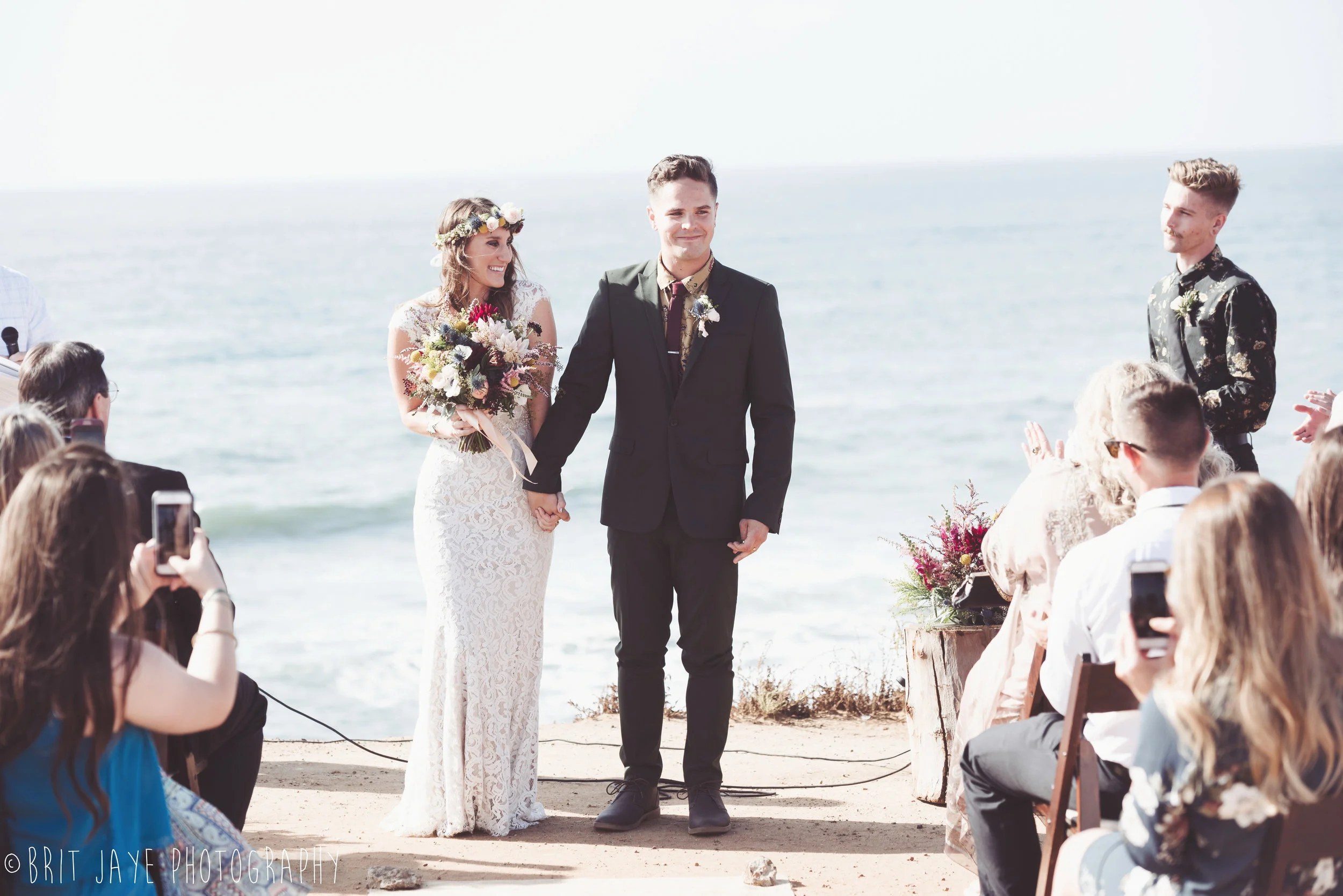 Ceremony Location: Sunset Cliffs Natural Park // Reception Location: BO-Beau Kitchen + Bar // Photography: Brit Jaye Photography // Wedding Dress: BHLDN // Florist: La Belle Bloom