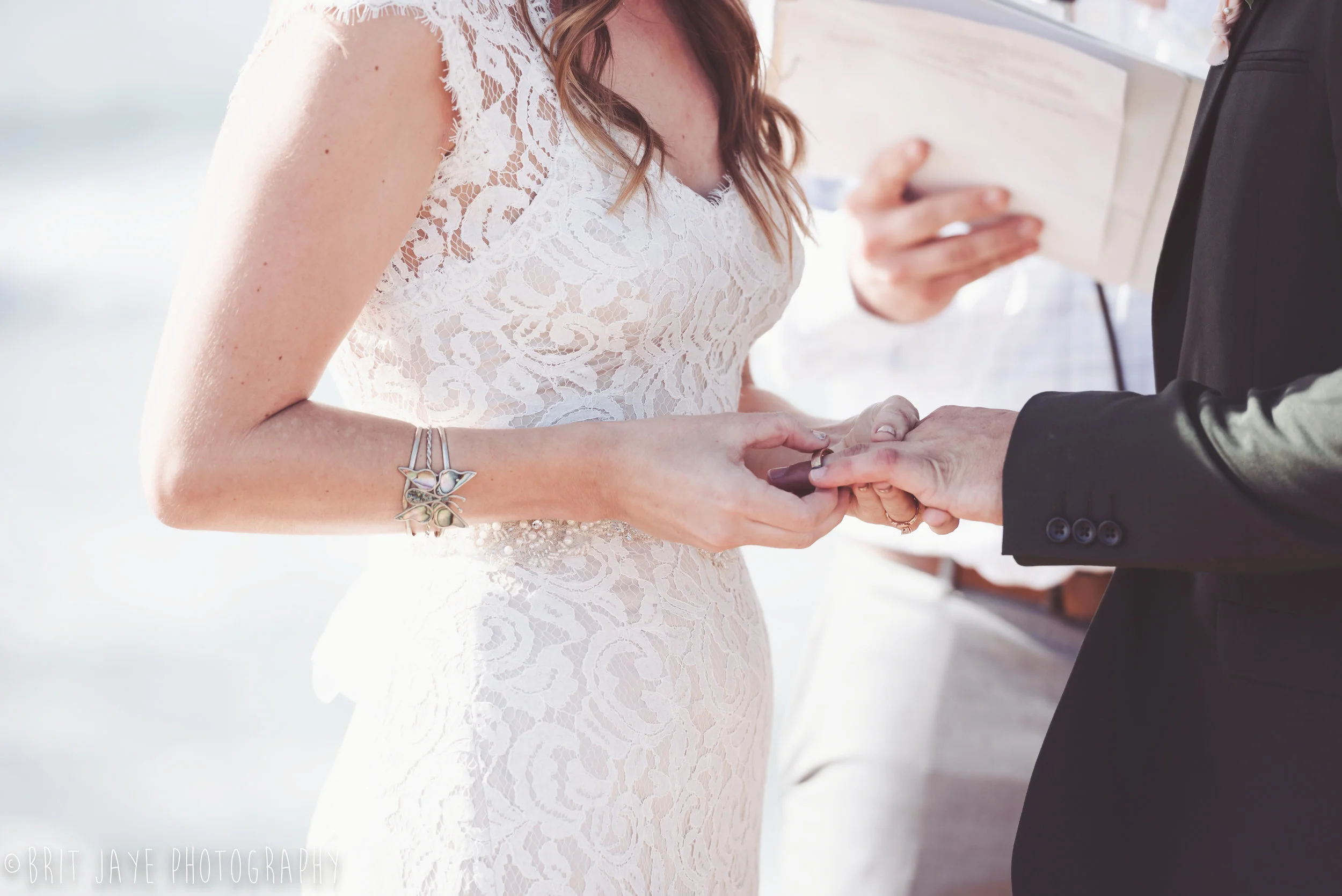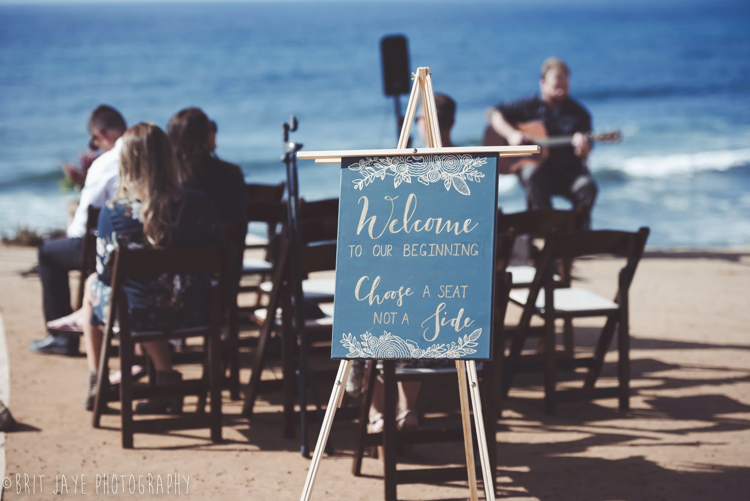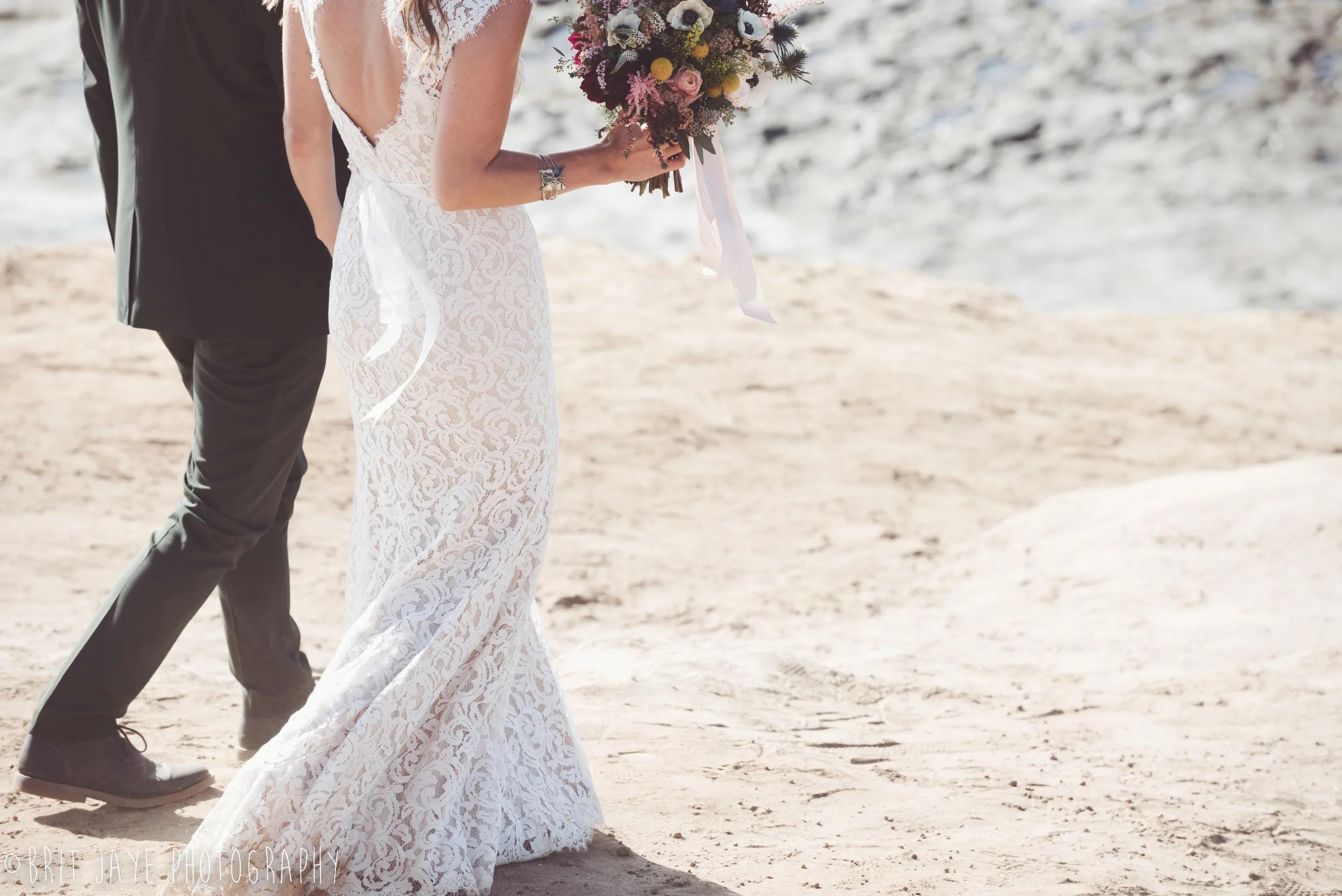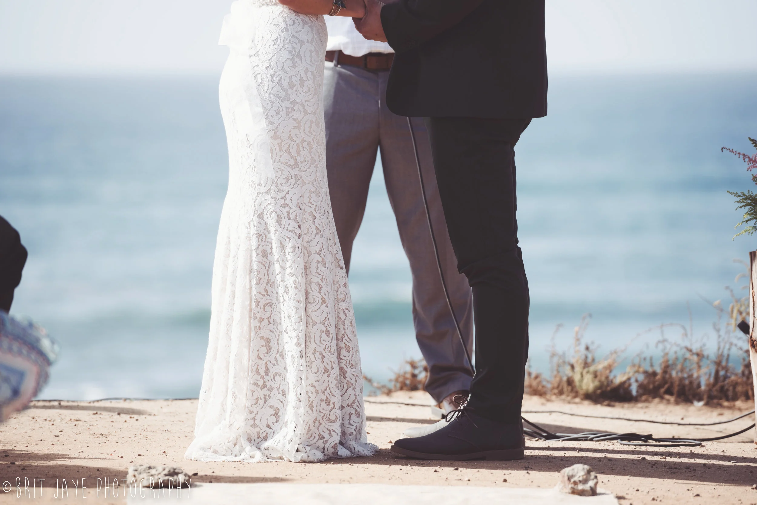 Ceremony Location: Sunset Cliffs Natural Park // Reception Location: BO-Beau Kitchen + Bar // Photography: Brit Jaye Photography // Wedding Dress: BHLDN // Florist: La Belle Bloom