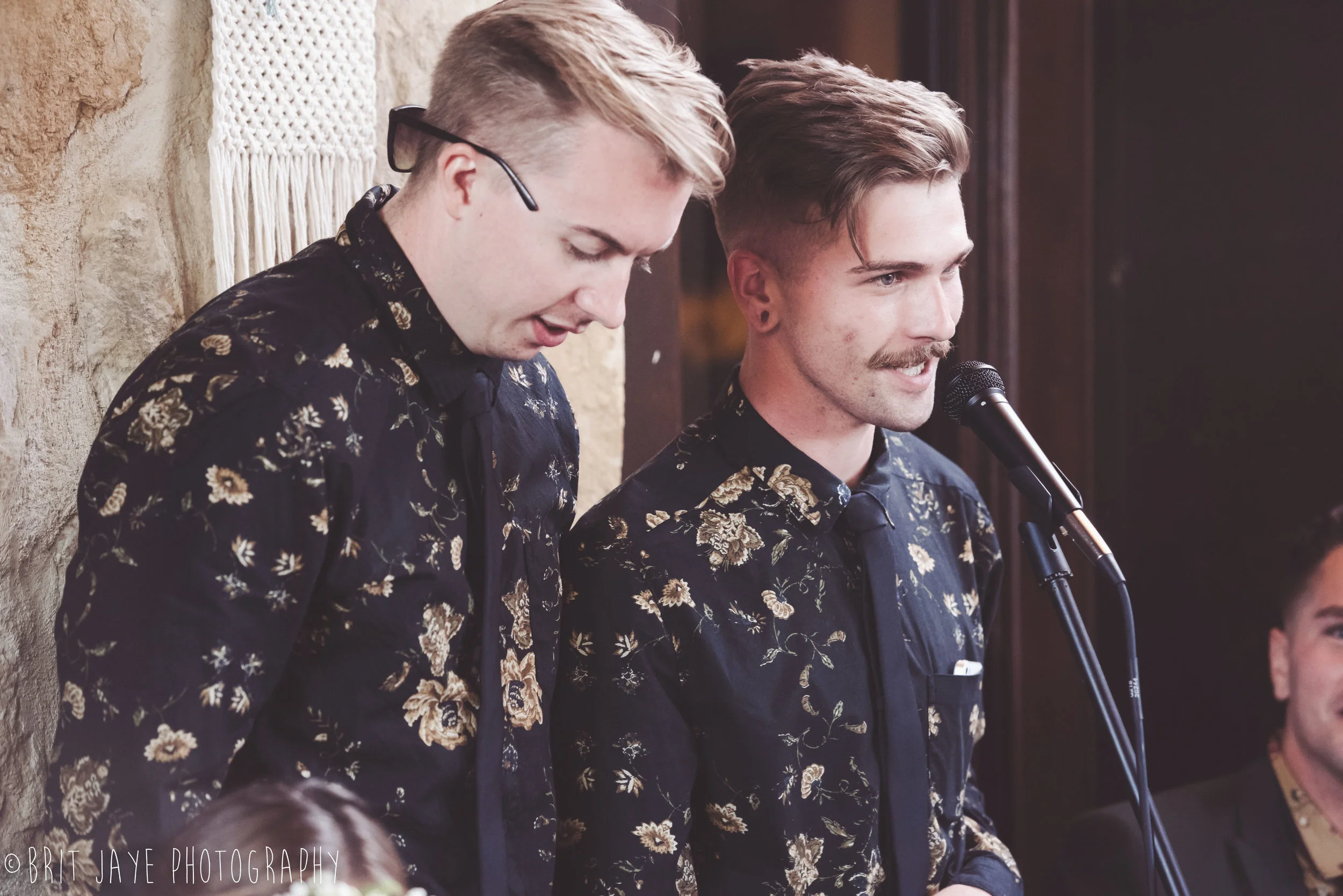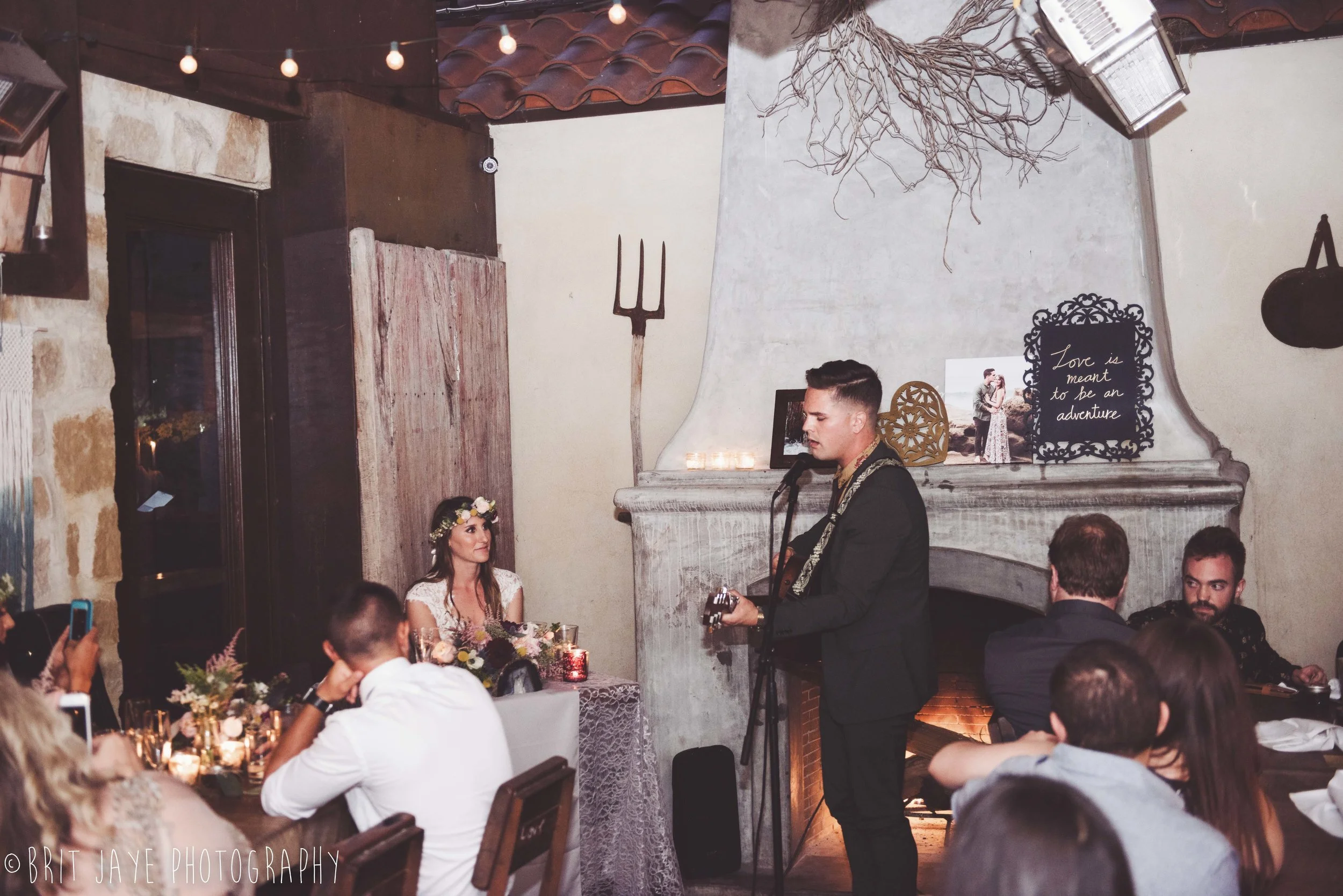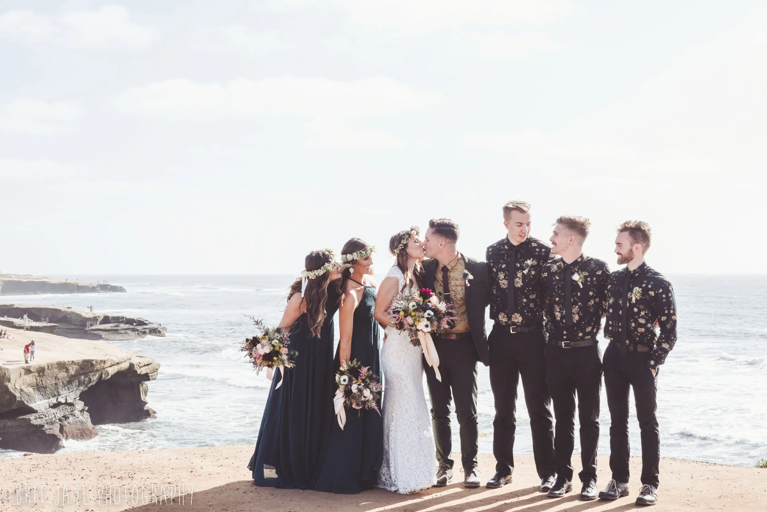 This romantic boho wedding is absolute perfection. From the sparkly champagne glasses to flower crowns for everyone- each thoughtful detail is so lovely. Ashley + Jack chose to say 'I do' at Sunset Cliffs Natural Park in Ocean Beach, CA. These two are adventurous(we recently did their engagement photos at the cliffs, too- so gorgeous!), and their cliff-top wedding ceremony was the perfect backdrop for their big day. They even brought in live music to properly set the mood. After the ceremony, everyone headed to Bo-Beau to for their restaurant reception. Get ready for wedding-inspiration overload- this one is a beauty! A huge congratulations to the Mr. & Mrs.! Wishing you a happiest ever after!