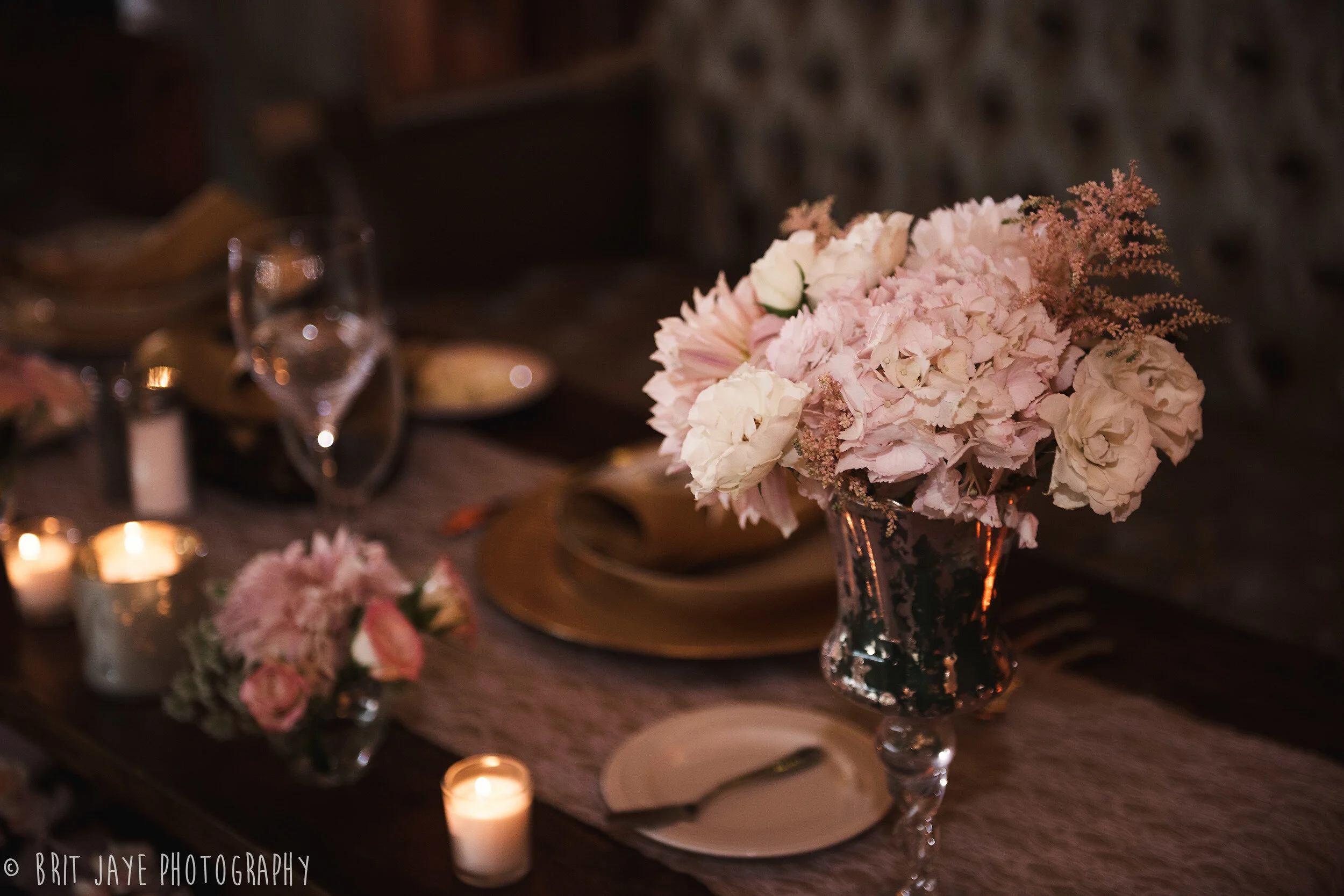 After the ceremony, guests enjoyed dinner and dancing inside the country club. Everything about this vintage lovebird inspired reception was completely elegant. Kristi & Mike had a sweetheart table that was incredible. To top it all off, their blush pink and gold cake had a ‘Lovebird’ gold script cake topper. They put together the most lavish candy bar I have ever seen, and every pink and gold detail at this reception was just so pretty and perfect. Sublime Wedding & Events did an amazing job as day-of coordinators! Everything ran very smoothly, and the bride & groom were able to relax and enjoy the day!