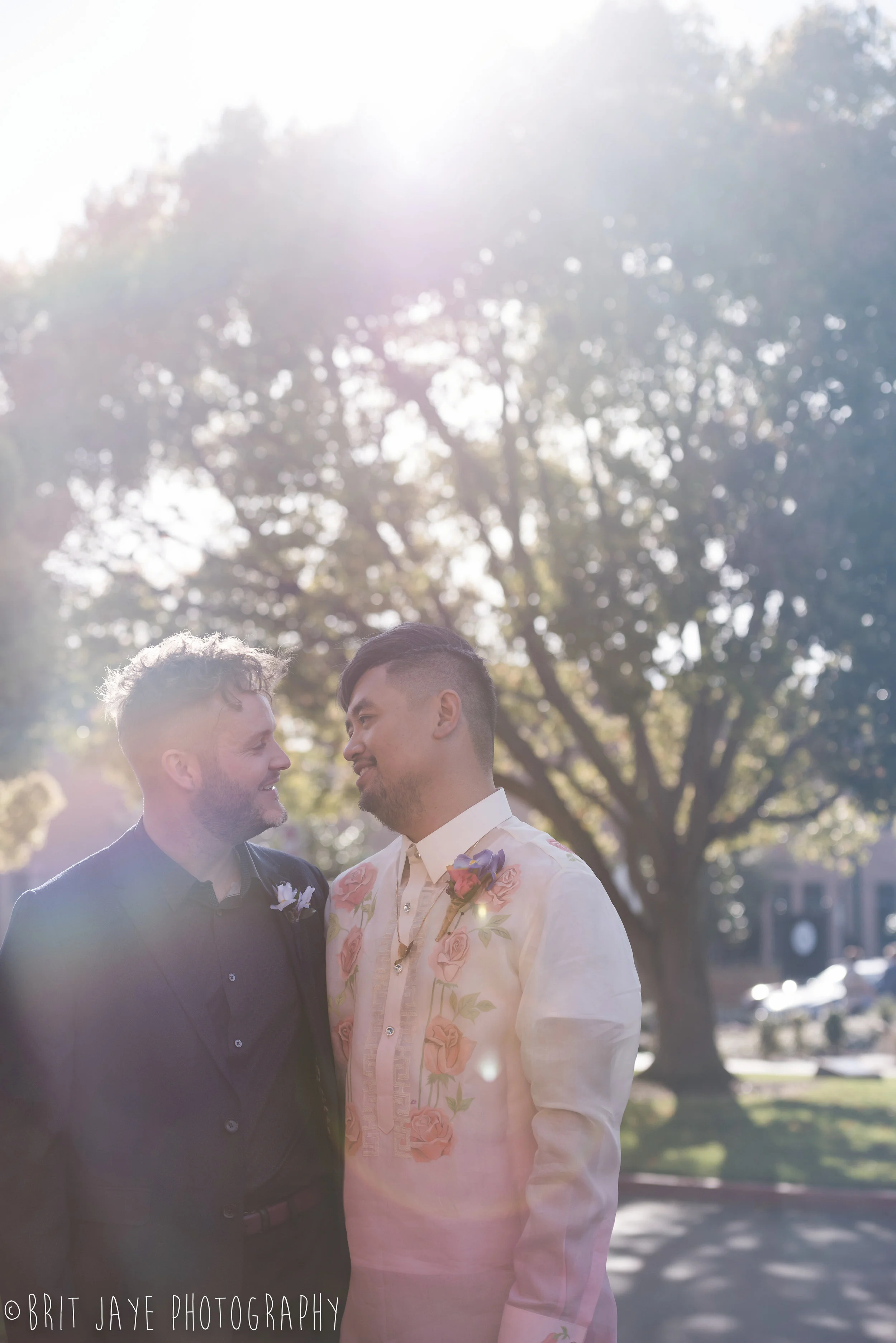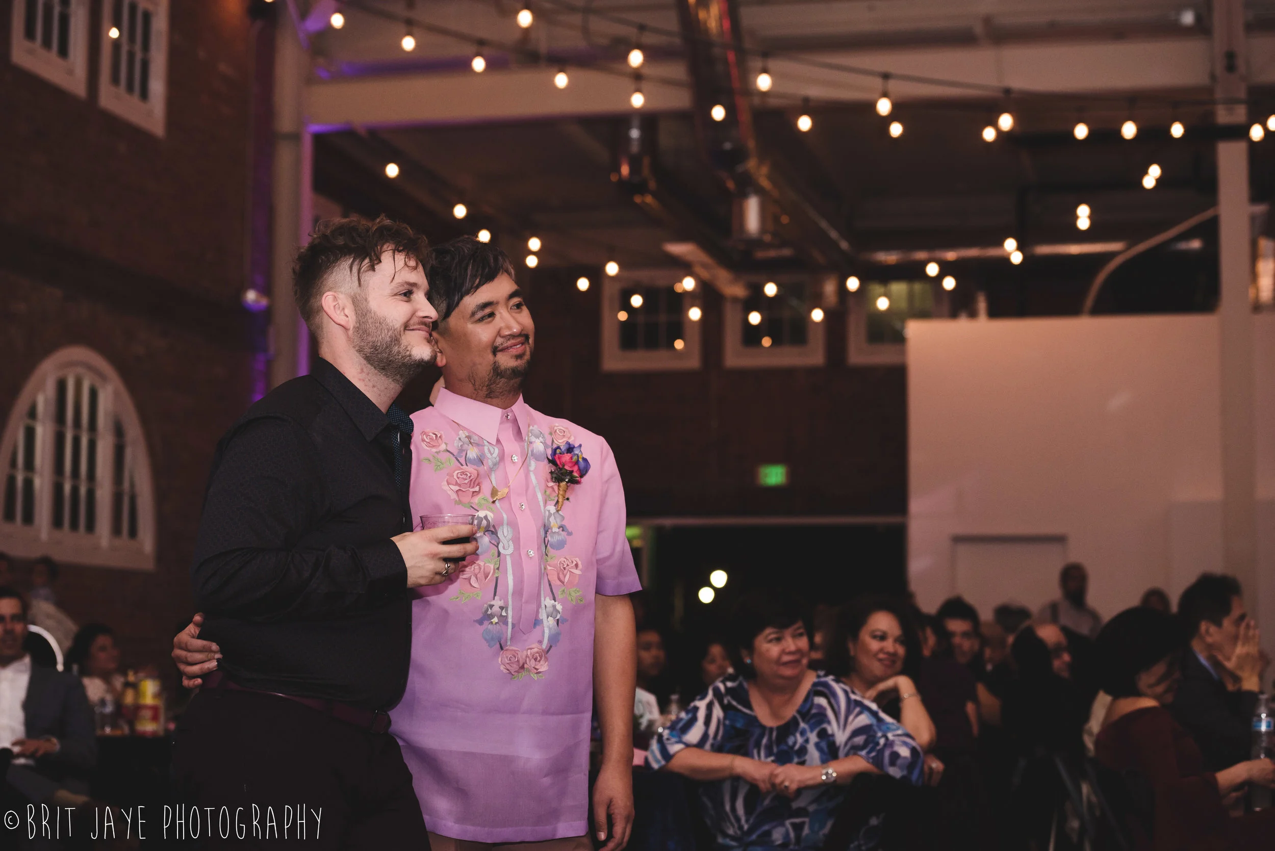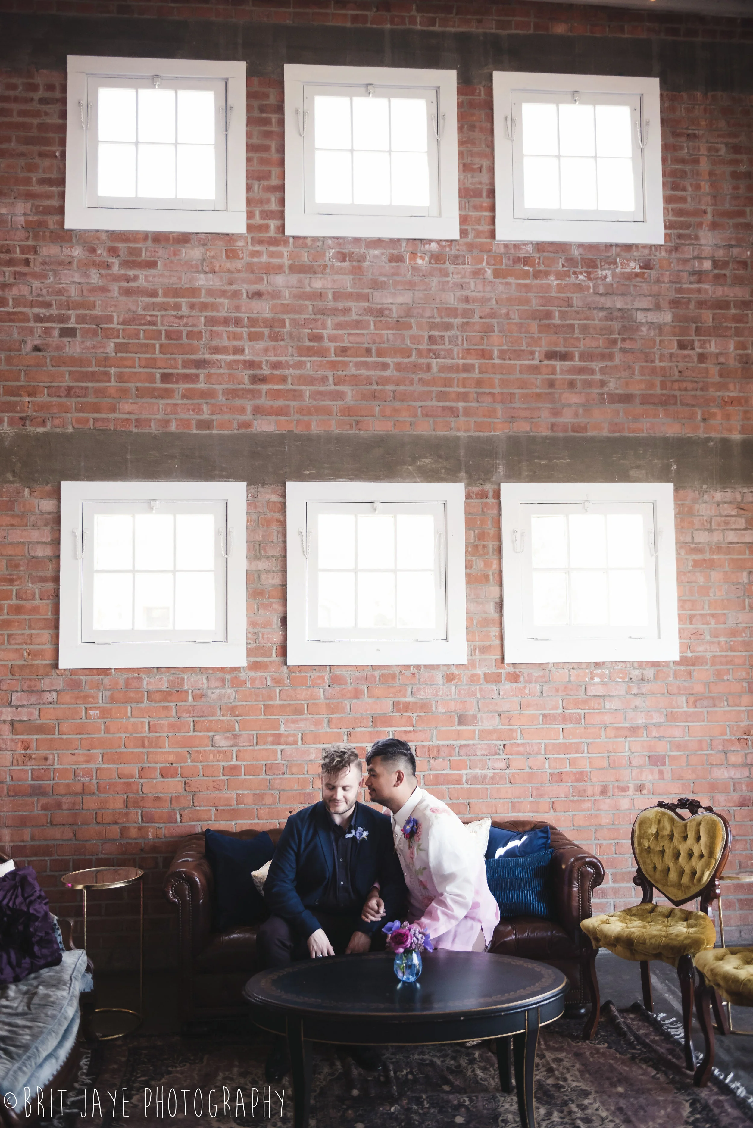 Yesterday was absolutely glorious. I had the honor of spending my day celebrating with these two amazing people at Brick in Liberty Station, one of the coolest, most modern wedding venues in San Diego. It's pretty much just a warehouse, so couples can decorate the space however they'd like- it makes for some really wonderful, personalized weddings, and James & Marcel's big day was no exception. Their sense of style is unique and so on point. I love the modern purple geometric table numbers. Every detail was so fantastic.