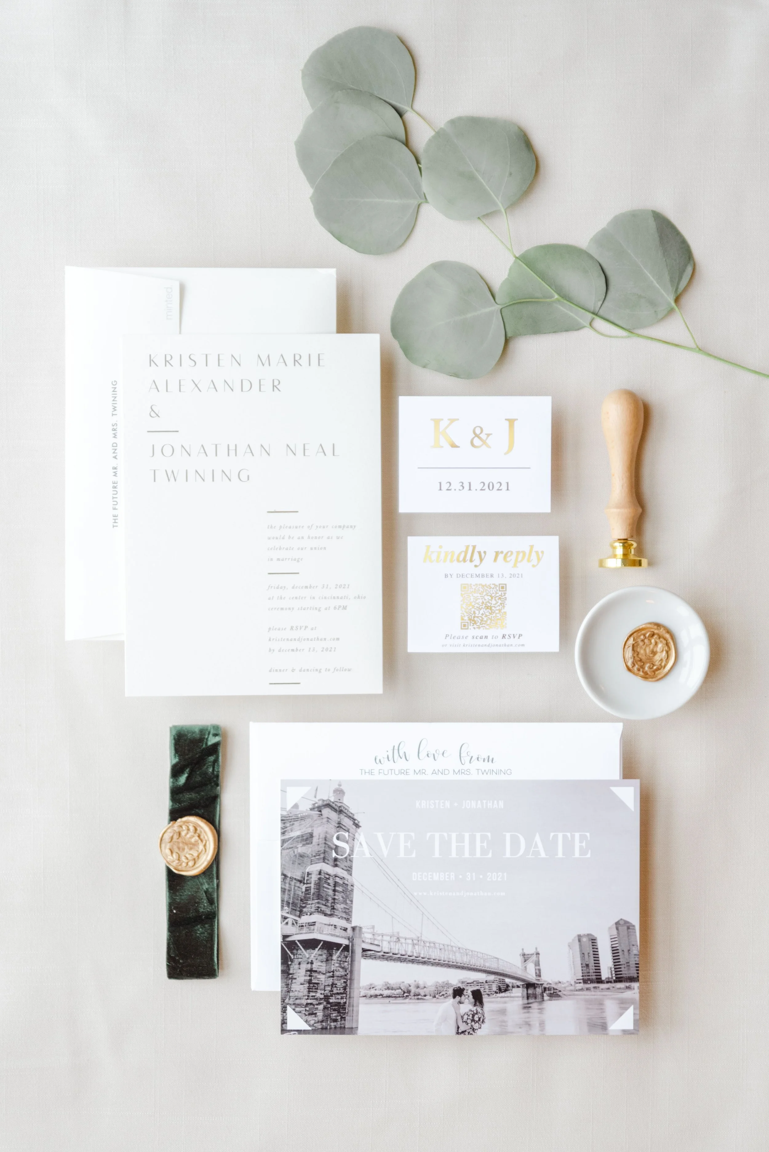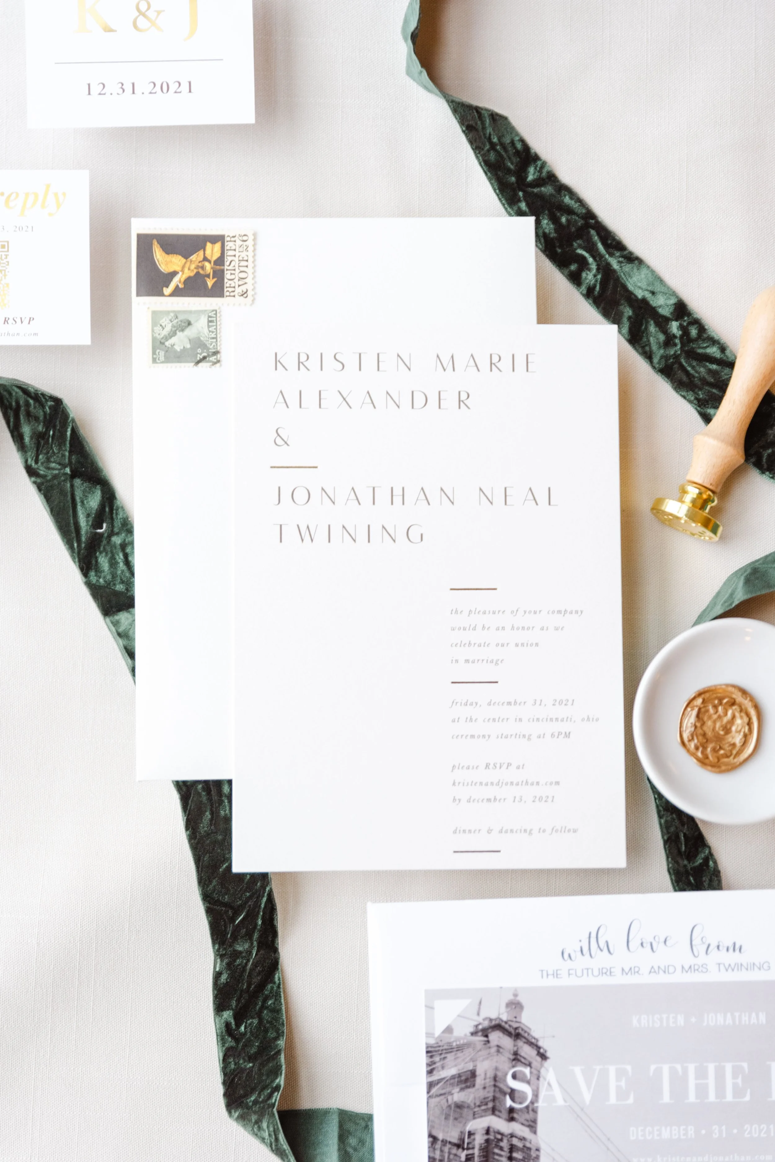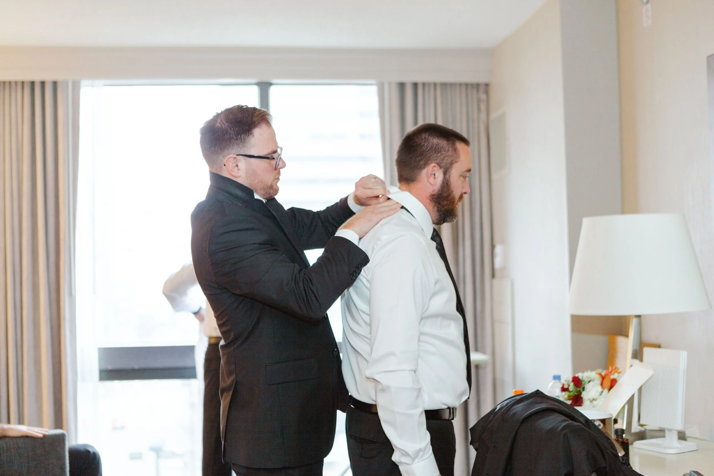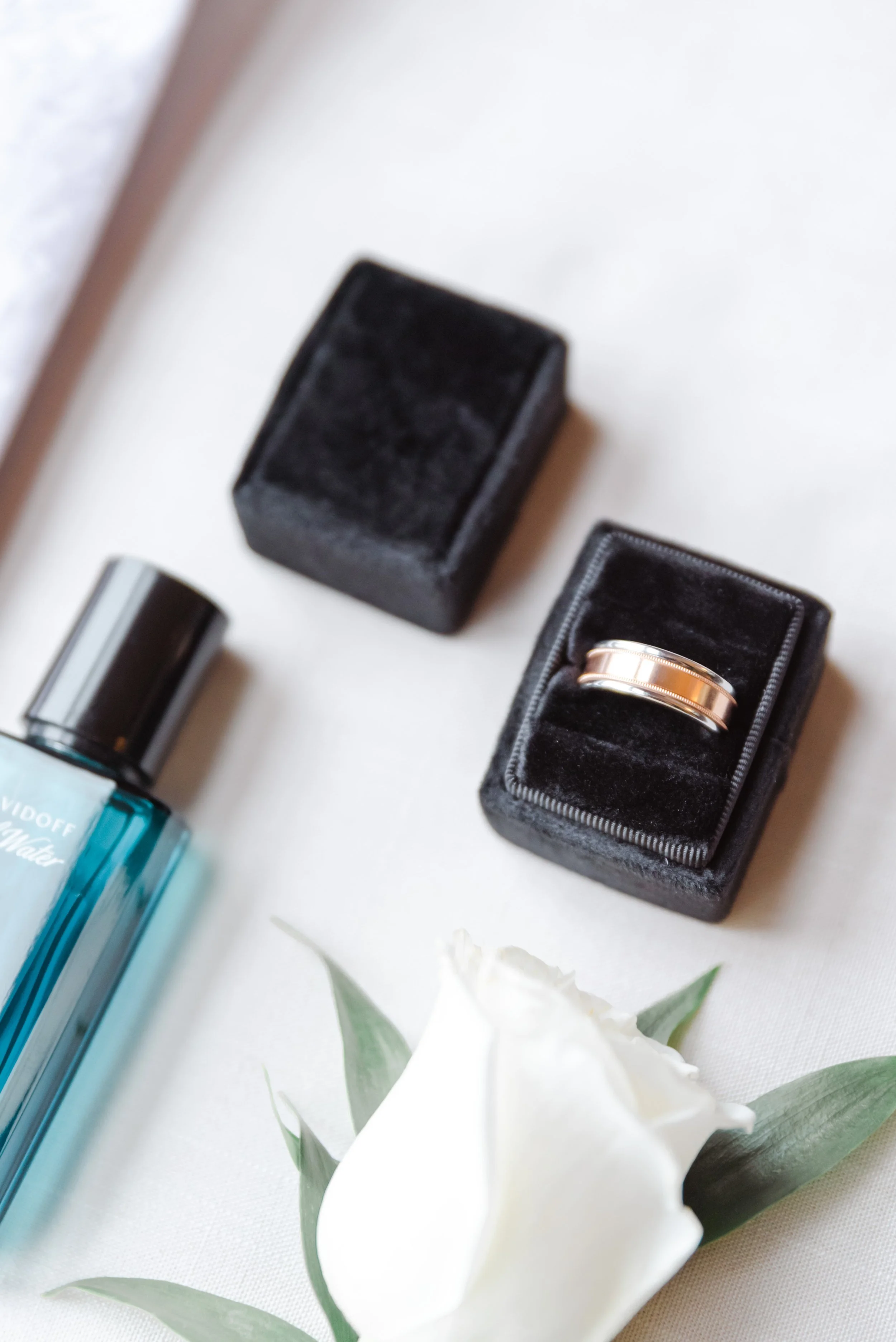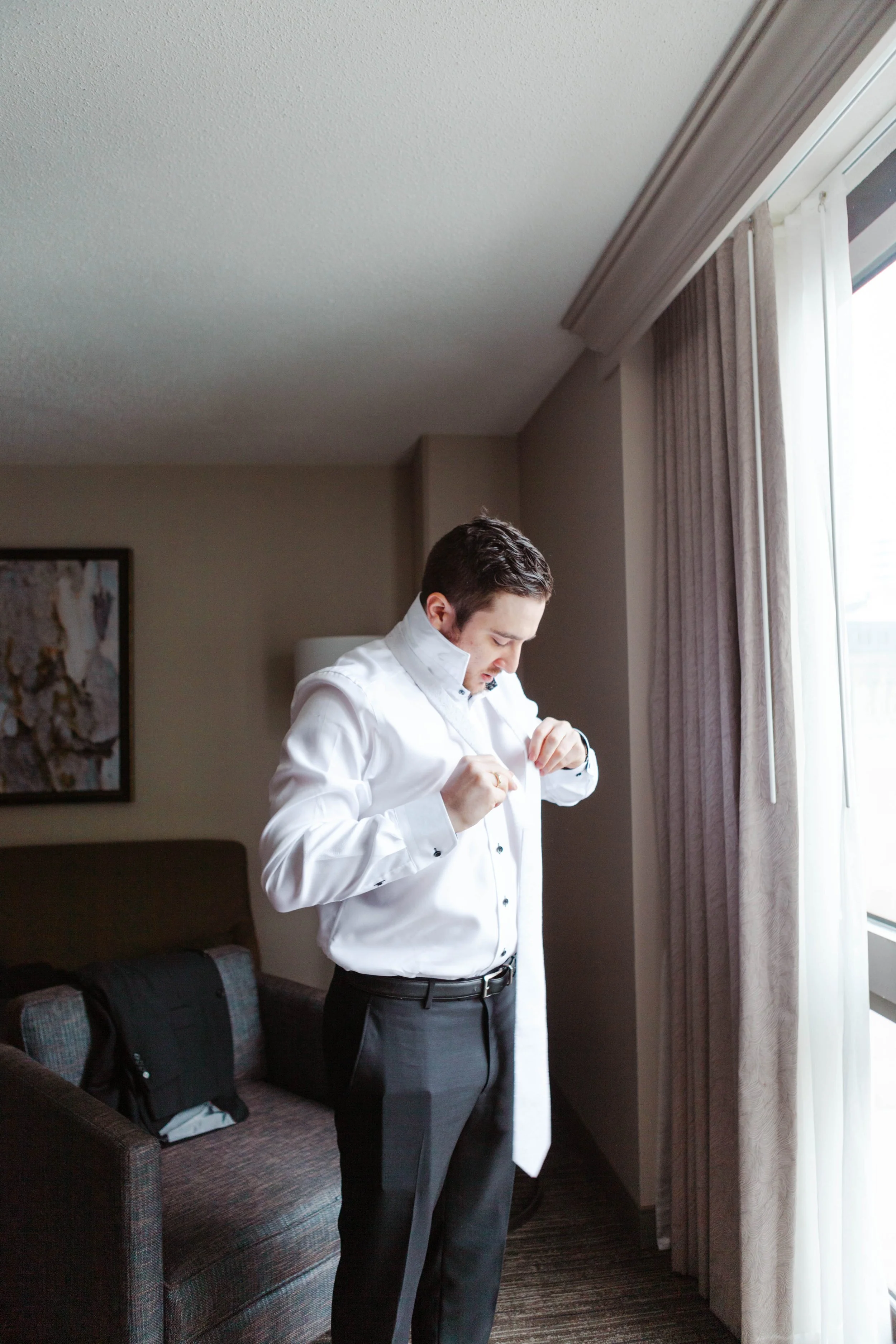 There’s nothing quite like the magic of a New Year’s Eve wedding, and this celebration in downtown Cincinnati was spectacular. We began the day photographing the bride & groom getting ready at the Westin Hotel in downtown Cincinnati, overlooking Fountain Square. Kristen & Jonathan planned ahead and put all of both the bride & groom details, along with two copies of their invitation suite, into a bag for me to photograph first. I love starting out the wedding day photographing the pretty little details, it is relaxing and creative and really starts things off on the right foot.