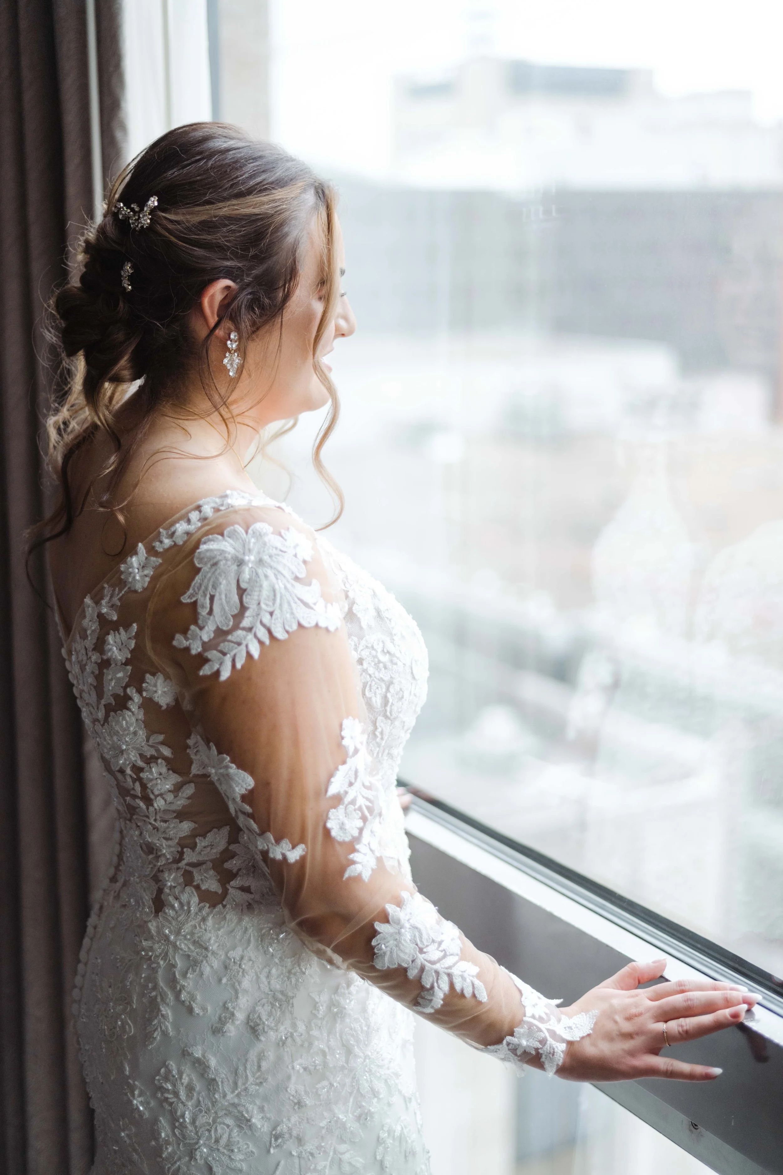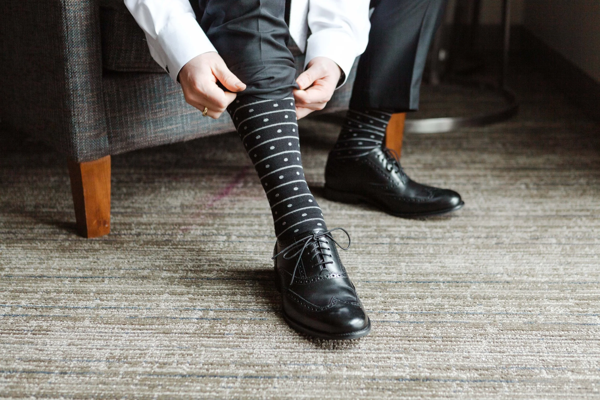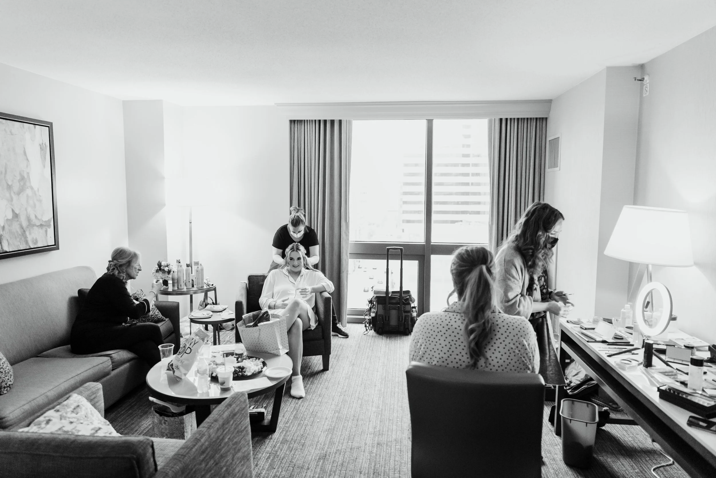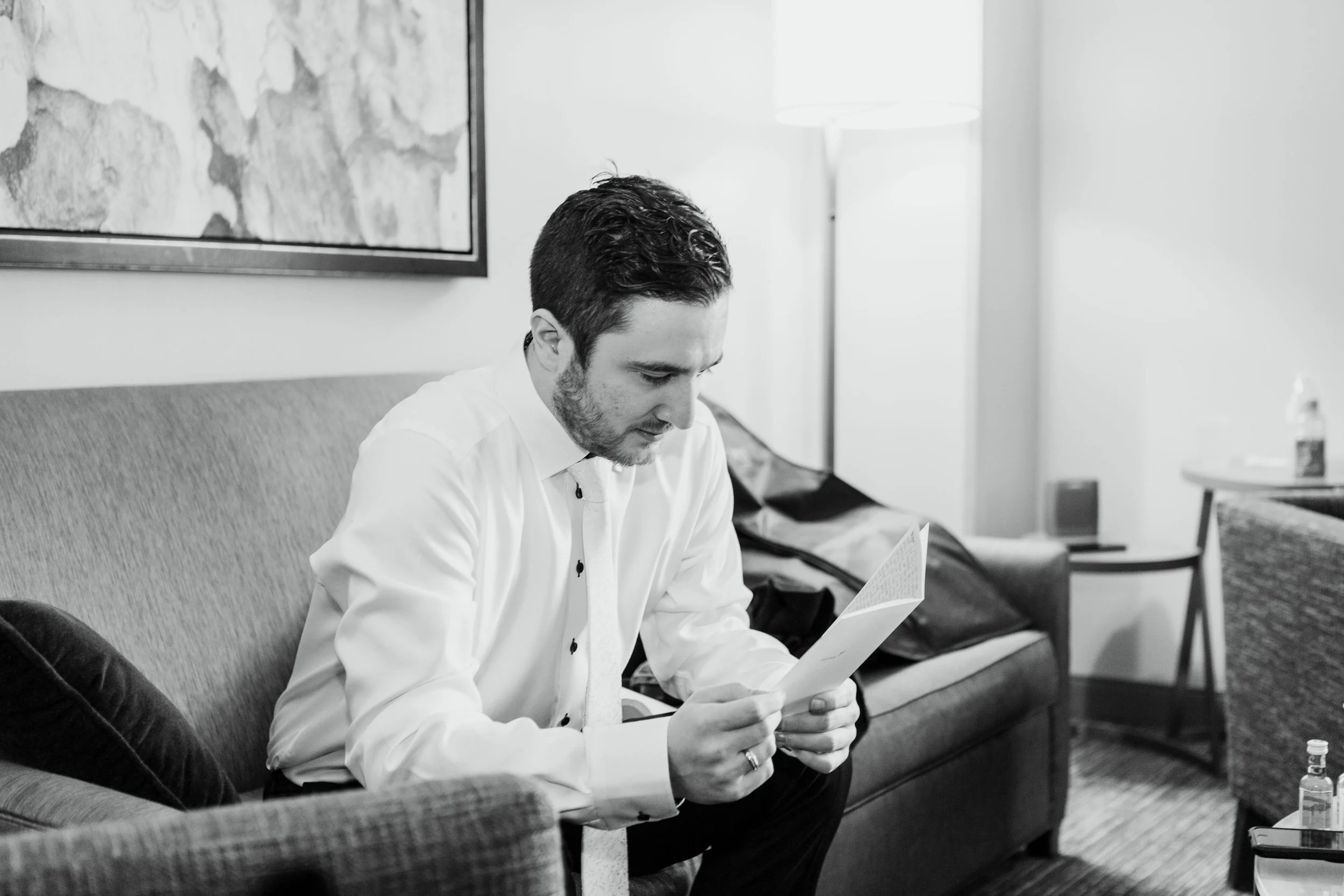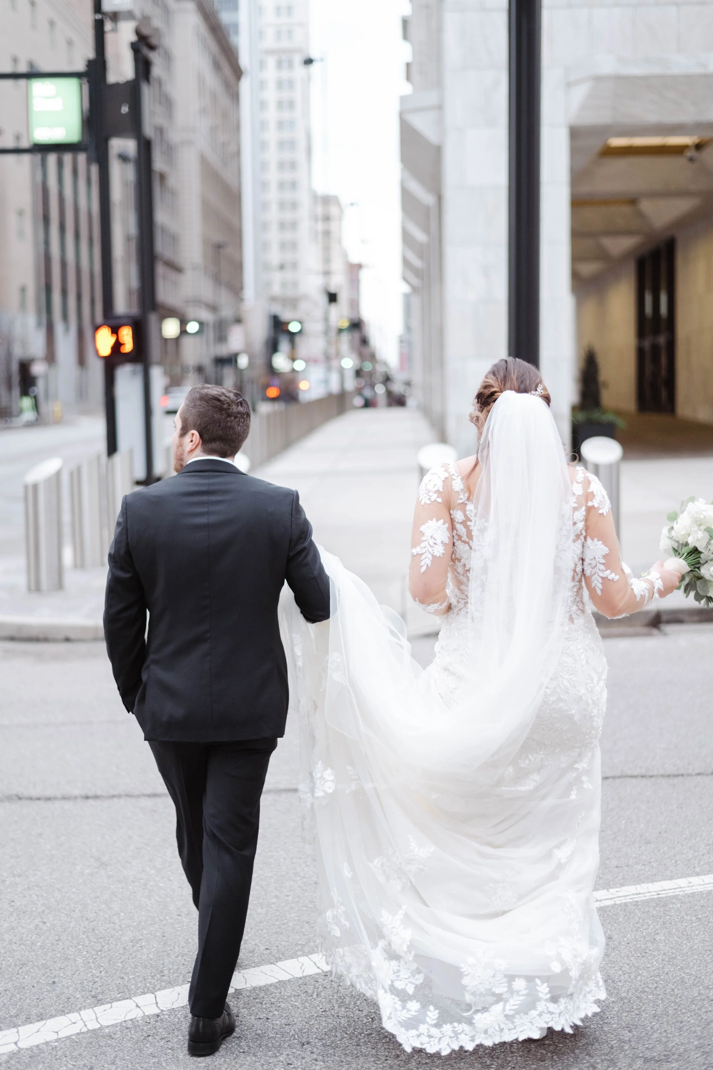 There’s nothing quite like the magic of a New Year’s Eve wedding, and this celebration in downtown Cincinnati was spectacular. We began the day photographing the bride & groom getting ready at the Westin Hotel in downtown Cincinnati, overlooking Fountain Square. Kristen & Jonathan planned ahead and put all of both the bride & groom details, along with two copies of their invitation suite, into a bag for me to photograph first. I love starting out the wedding day photographing the pretty little details, it is relaxing and creative and really starts things off on the right foot.