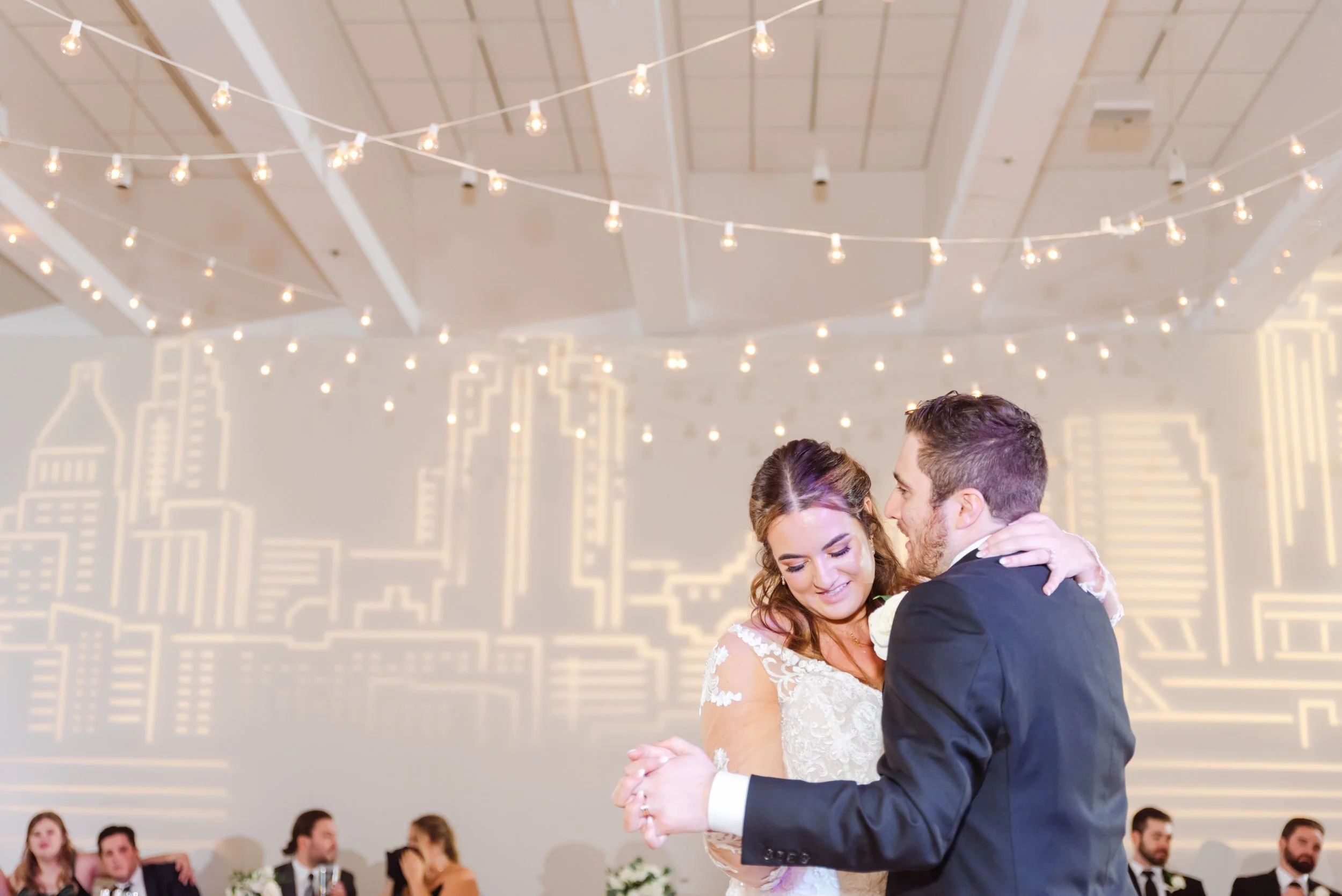 Venue: The Center Cincinnati // Photography: Brit Jaye Photography // Videography: Harmon Films // Hair & Makeup: Wallis Doyle // DJ: Party Pleasers Services // Florist: Two Little Buds // Marquee: Totally Lit Events // Balloons: USA Balloonatics // Bridal Gown: Belle Amour Bridal // Menswear: Ticknors