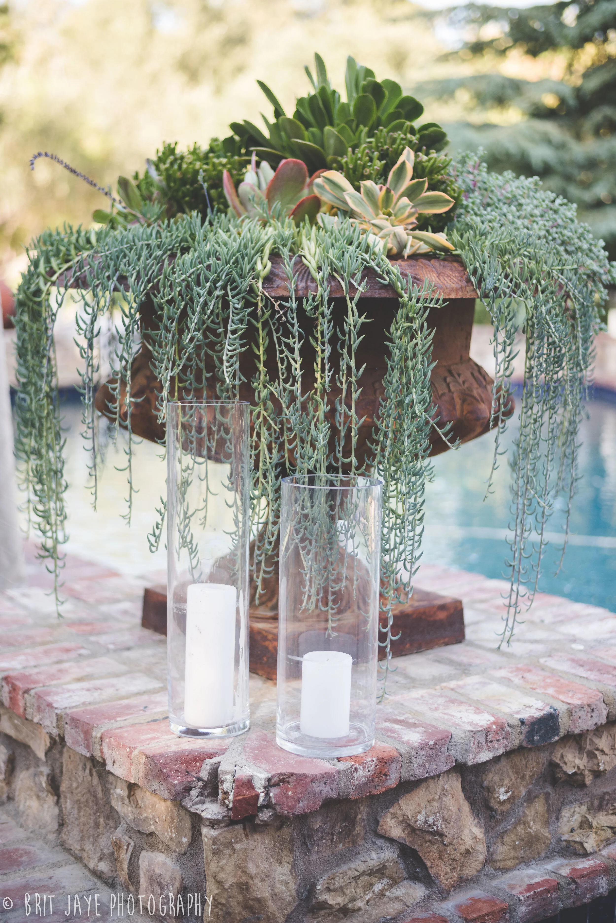 This Orange County estate wedding was filled with whimsical details. Candle-lit lanterns and fresh potted plants lined the aisle; and Phoebe looked amazing in her elegant lace wedding dress! The girls carried some amazing fall-inspired boho-chic bridal bouquets.