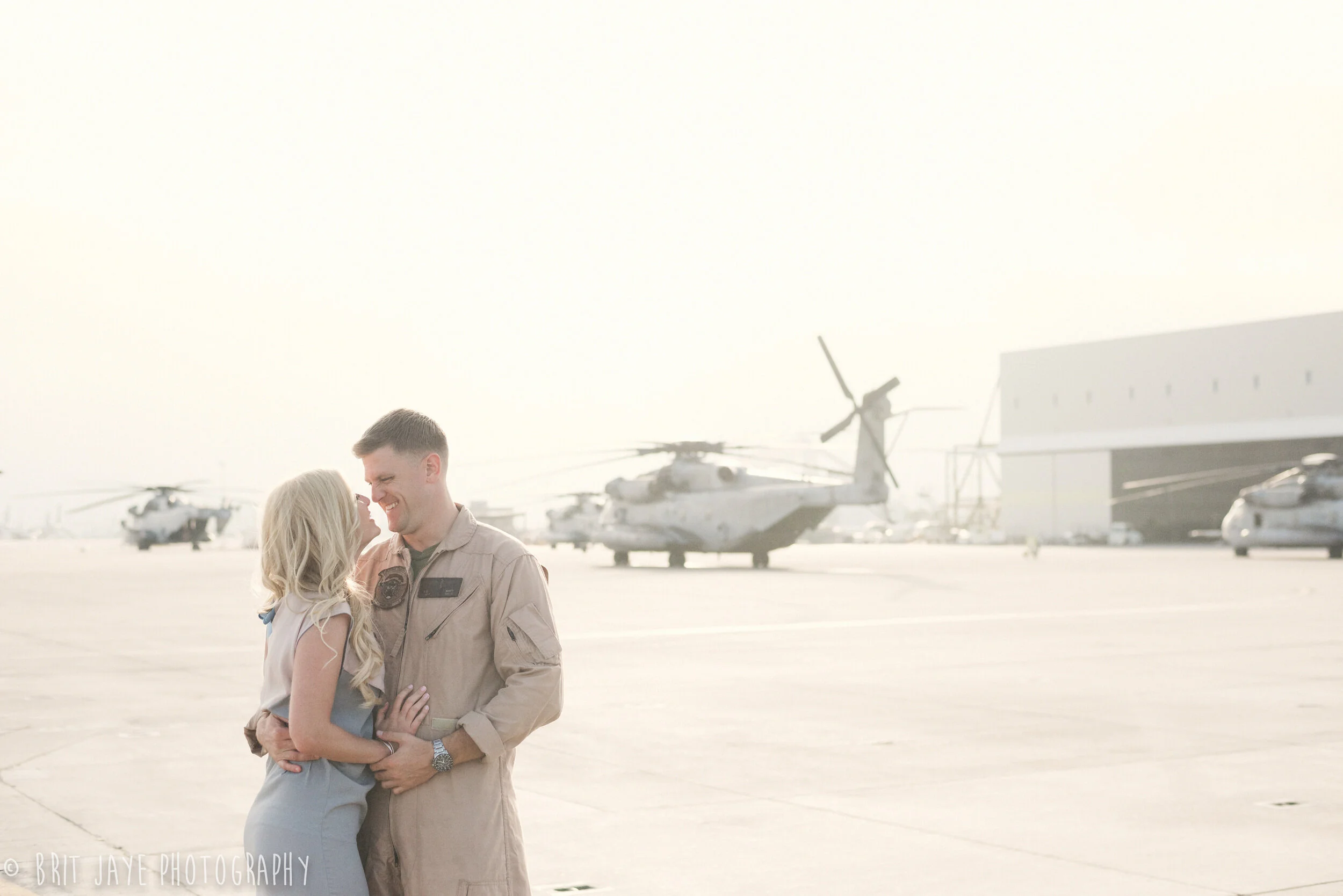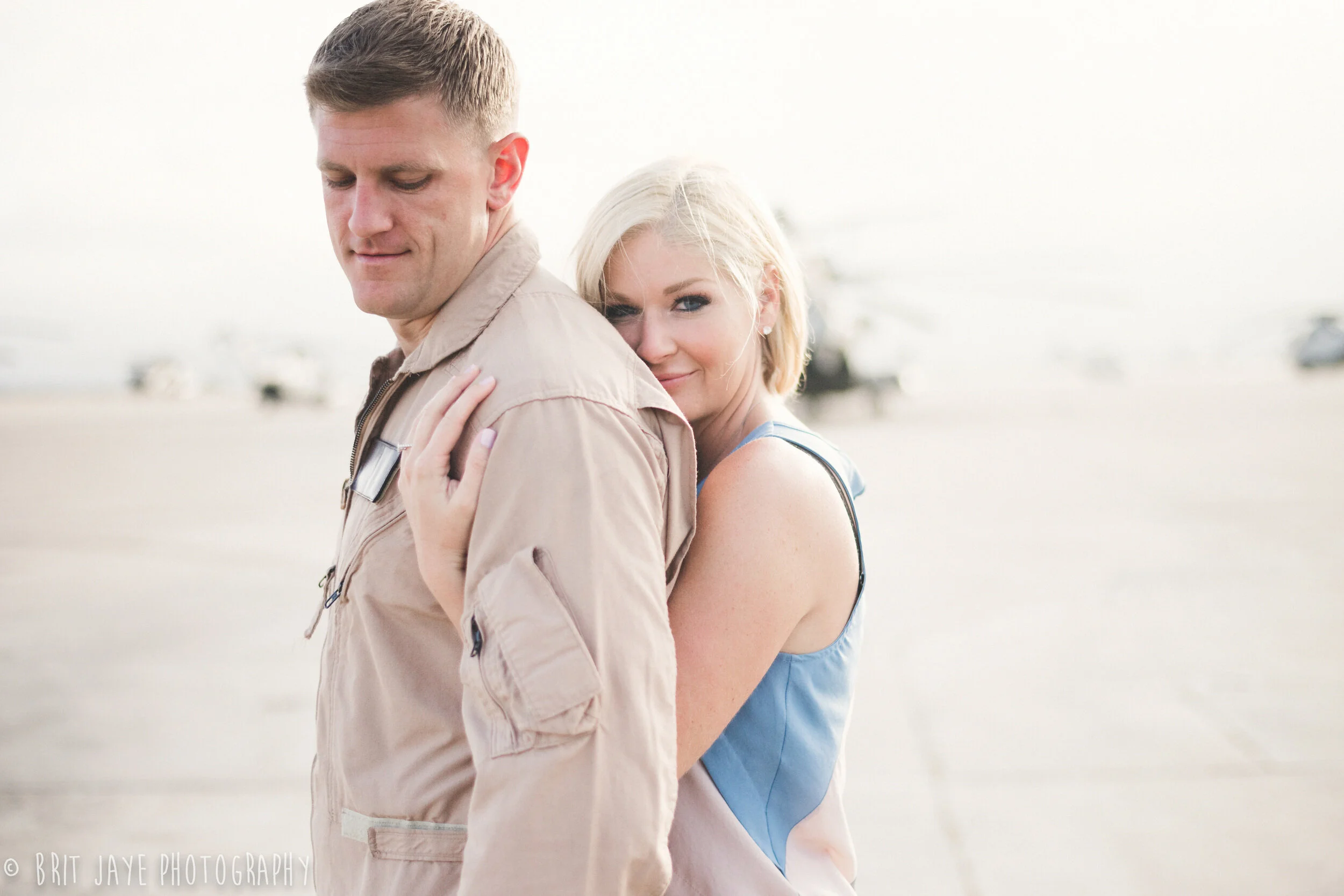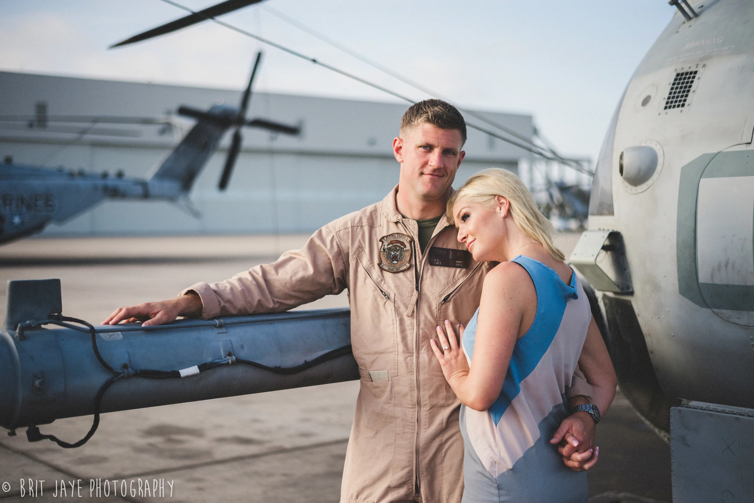 We began our session where Luke works everyday- at MCAS Miramar. Luke is in the military, and it's such a big part of who they are; so they wanted to include it in our session (which I was ridiculously excited about- talk about epic locations). Then we rushed to the beach for a few photos of the couple at La Jolla Cove's Coast Boulevard Park. This hidden gem is a great location for photos just south of the cove. There is usually lots of street parking open, even at sunset on a Saturday. It's a great spot for some photos at La Jolla Cove away from the crowds!