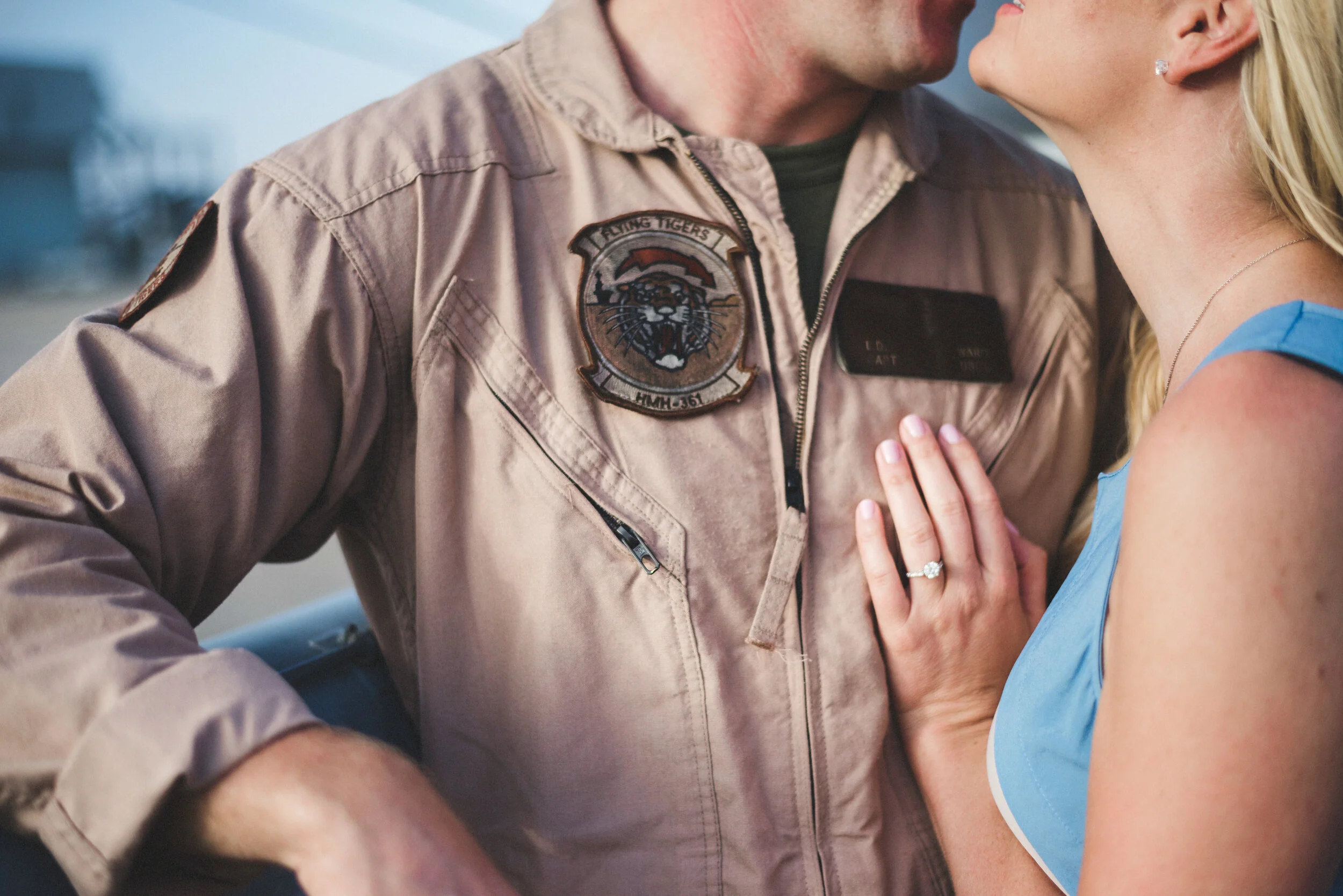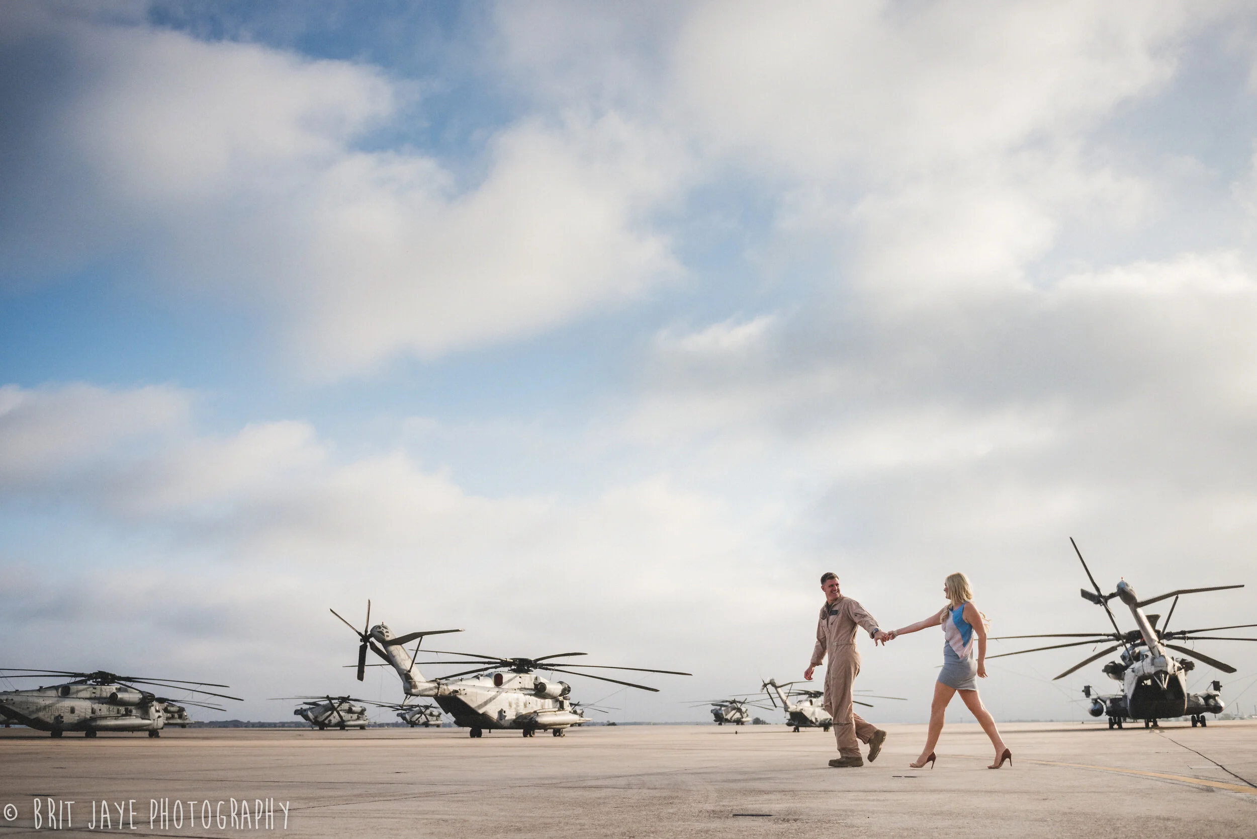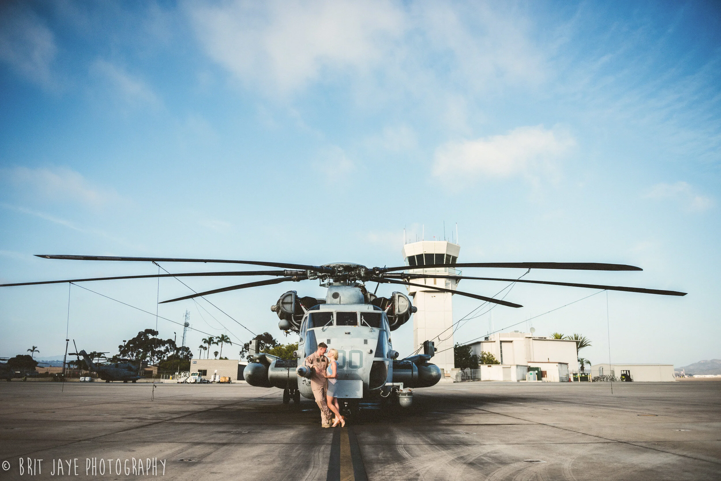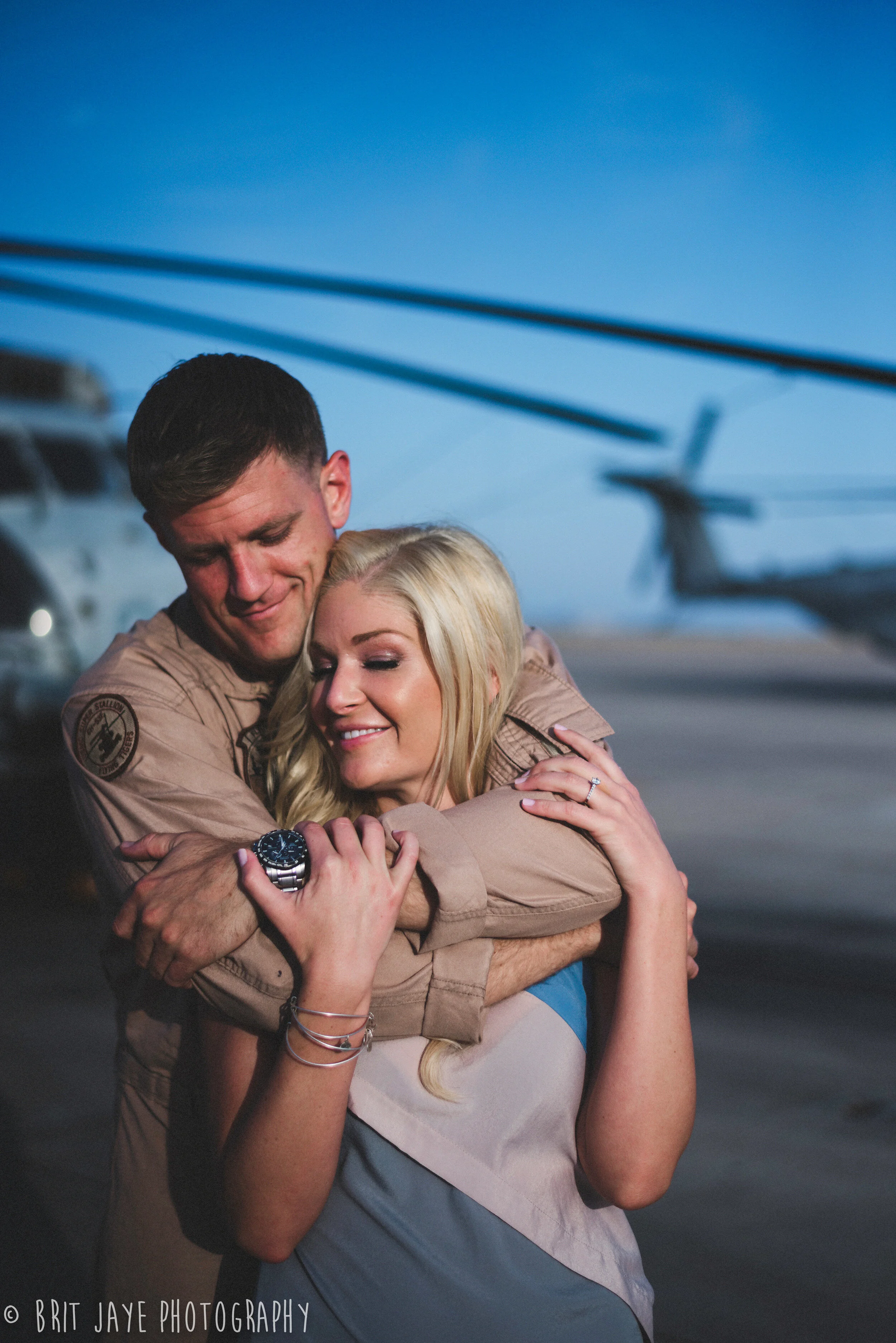 We began our session where Luke works everyday- at MCAS Miramar. Luke is in the military, and it's such a big part of who they are; so they wanted to include it in our session (which I was ridiculously excited about- talk about epic locations). Then we rushed to the beach for a few photos of the couple at La Jolla Cove's Coast Boulevard Park. This hidden gem is a great location for photos just south of the cove. There is usually lots of street parking open, even at sunset on a Saturday. It's a great spot for some photos at La Jolla Cove away from the crowds!