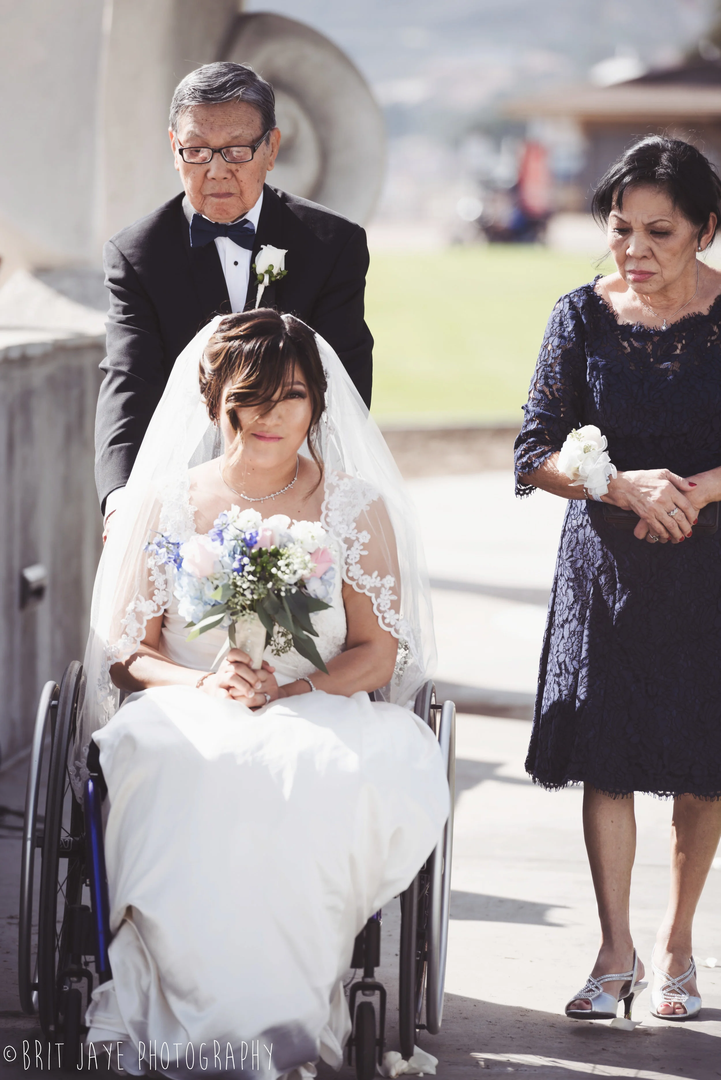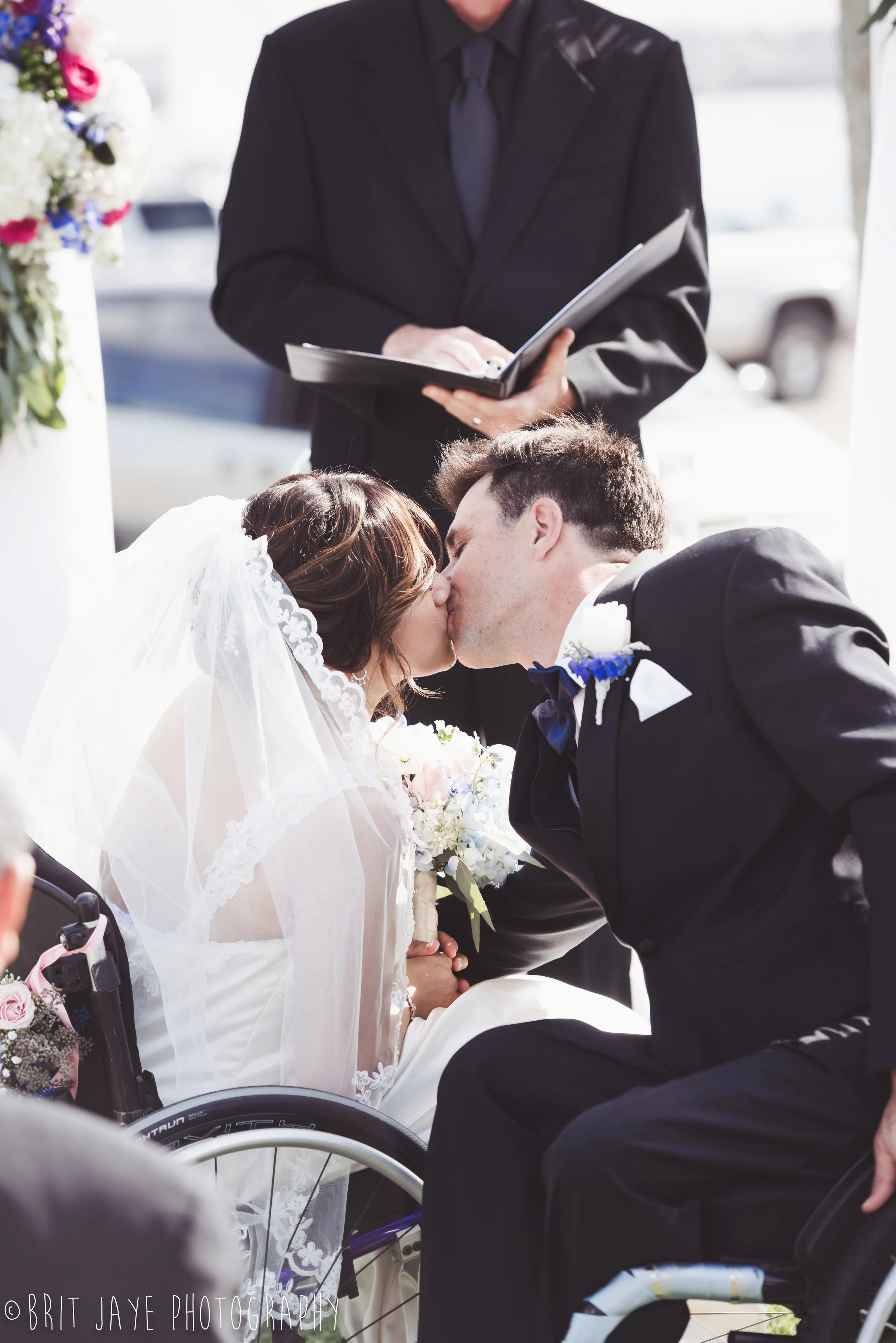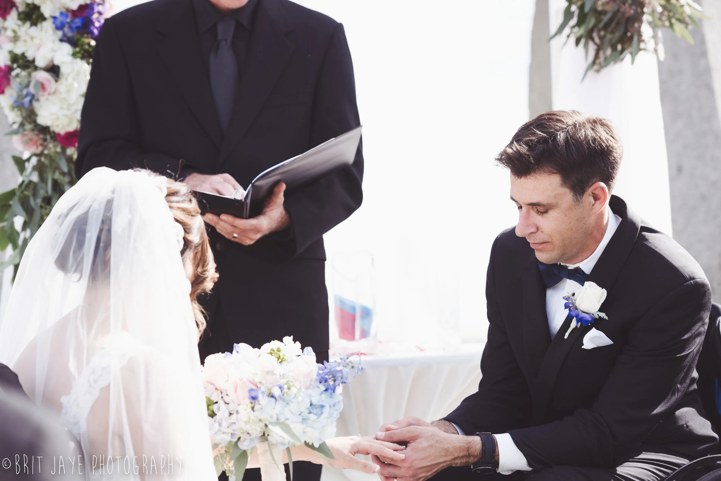 This gorgeous wedding overlooking the San Diego Bay at the Bay Club Hotel was absolutely perfect. The bride & groom hung Mr. & Mrs. signs from the backs of their wheelchairs and it was so adorable, such a wonderful detail. Friends and family enjoyed their outside wedding ceremony there at Shelter Island, with the following reception inside the Bay Club Hotel. Enjoy all the details from this San Diego Bay wedding!