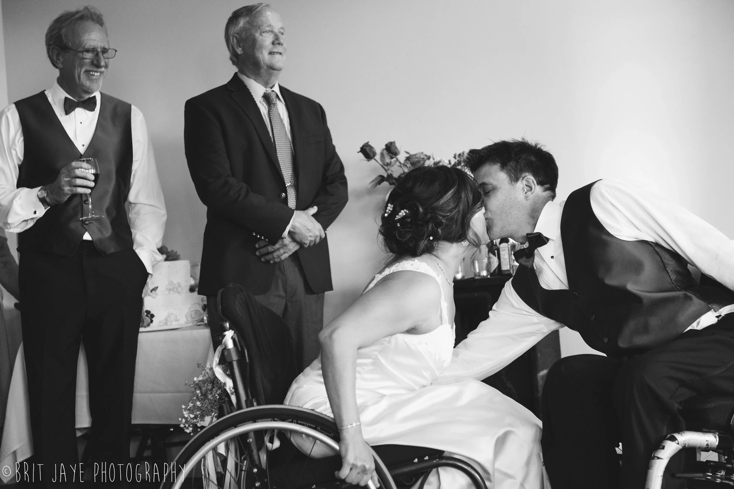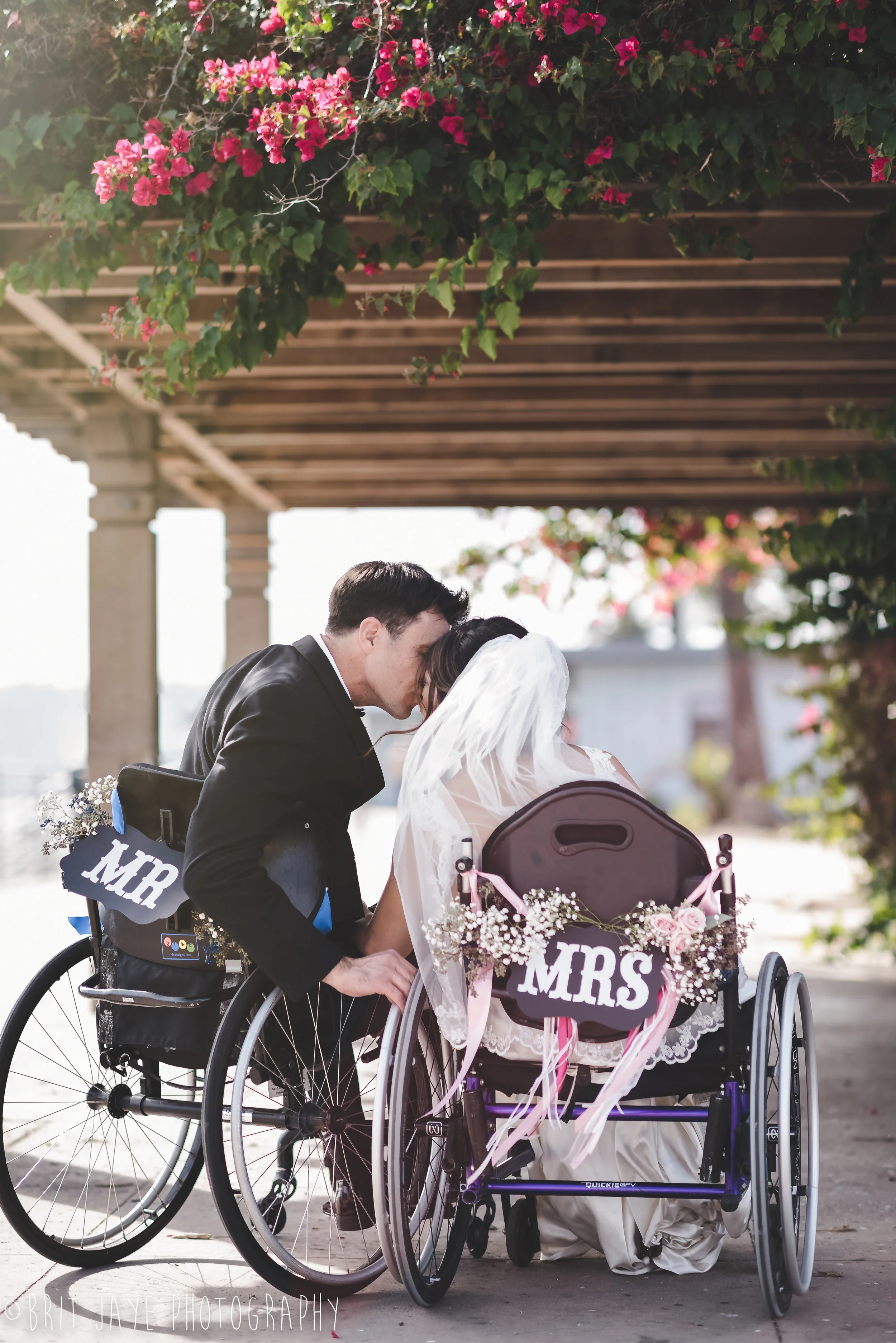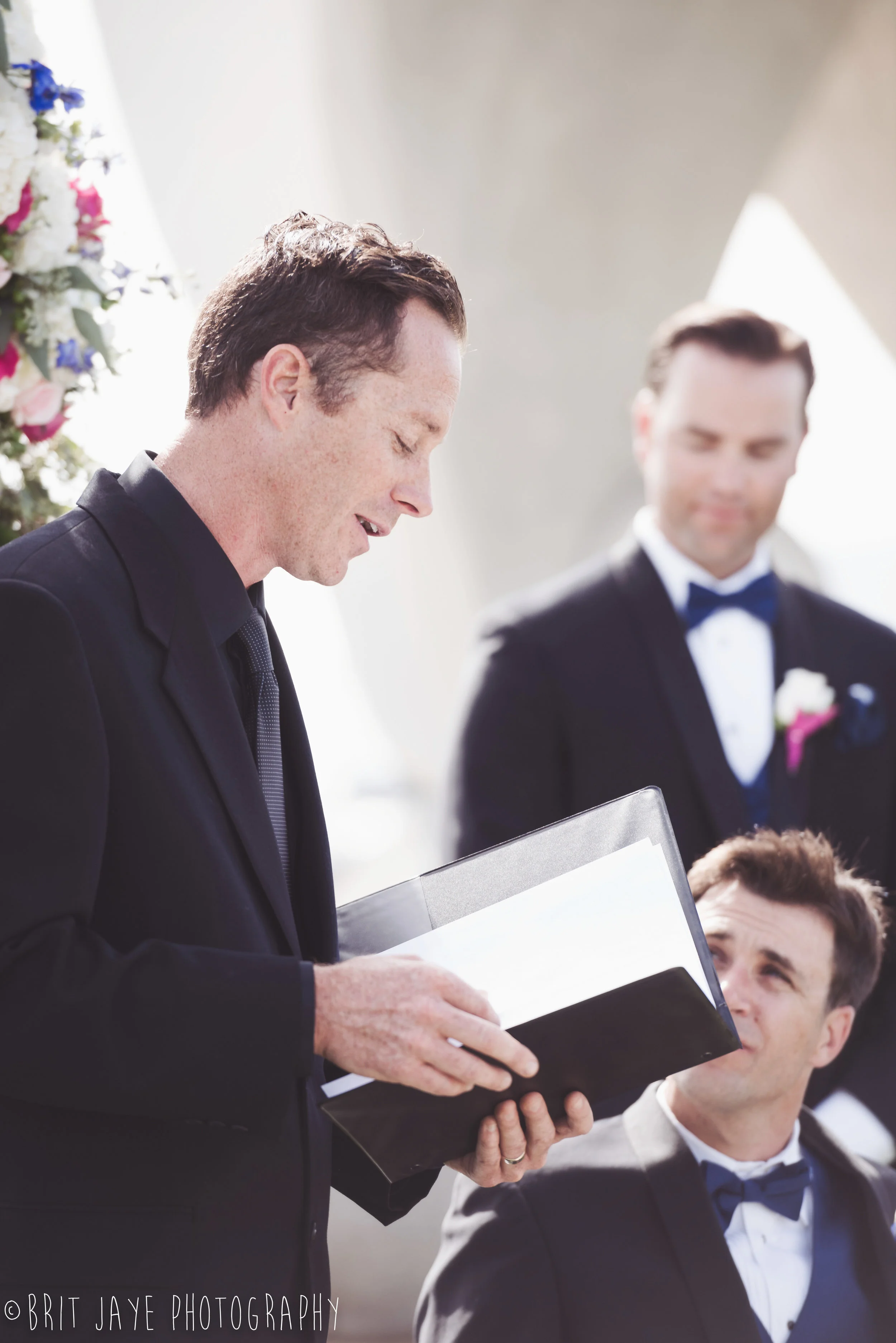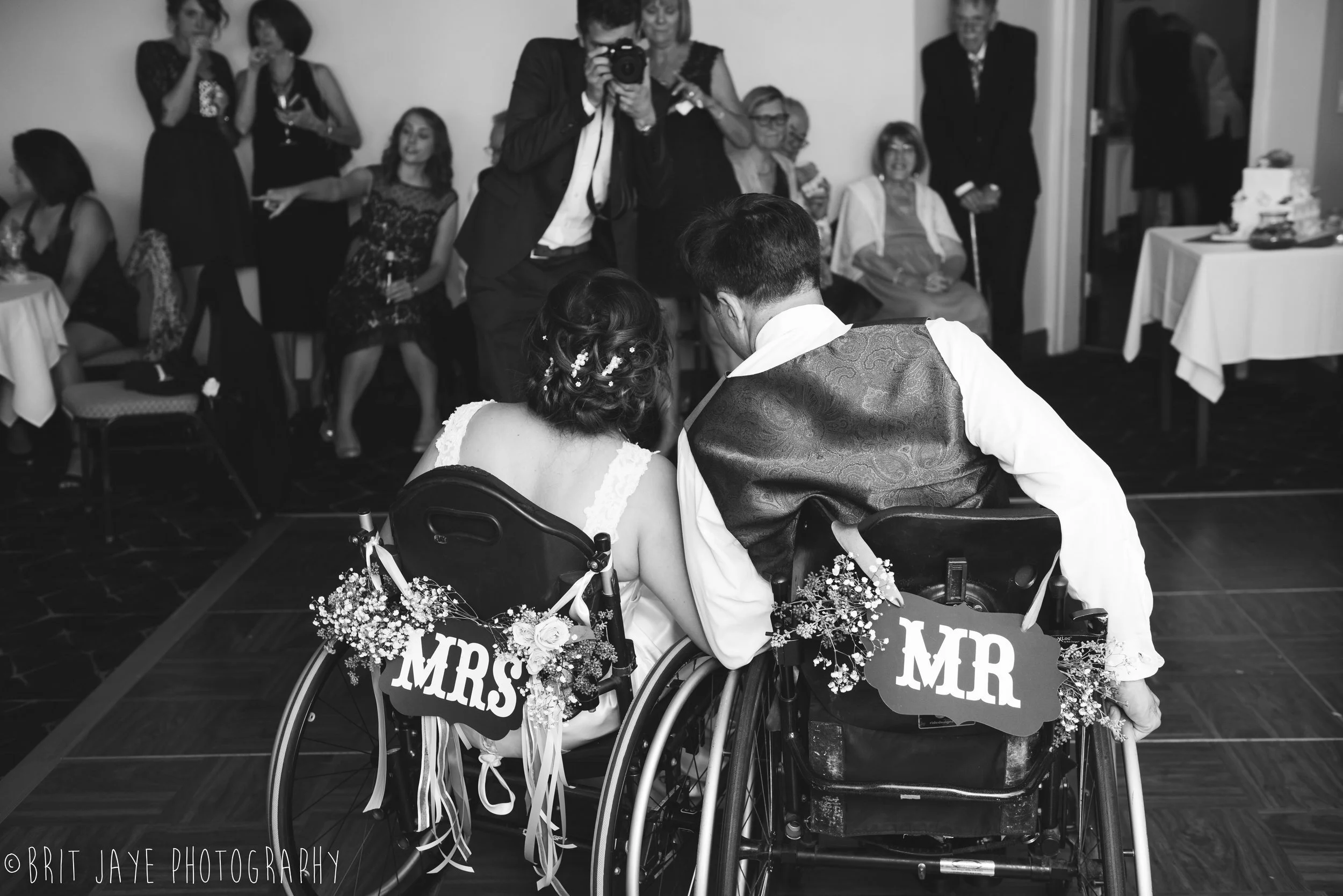 This gorgeous wedding overlooking the San Diego Bay at the Bay Club Hotel was absolutely perfect. The bride & groom hung Mr. & Mrs. signs from the backs of their wheelchairs and it was so adorable, such a wonderful detail. Friends and family enjoyed their outside wedding ceremony there at Shelter Island, with the following reception inside the Bay Club Hotel. Enjoy all the details from this San Diego Bay wedding!