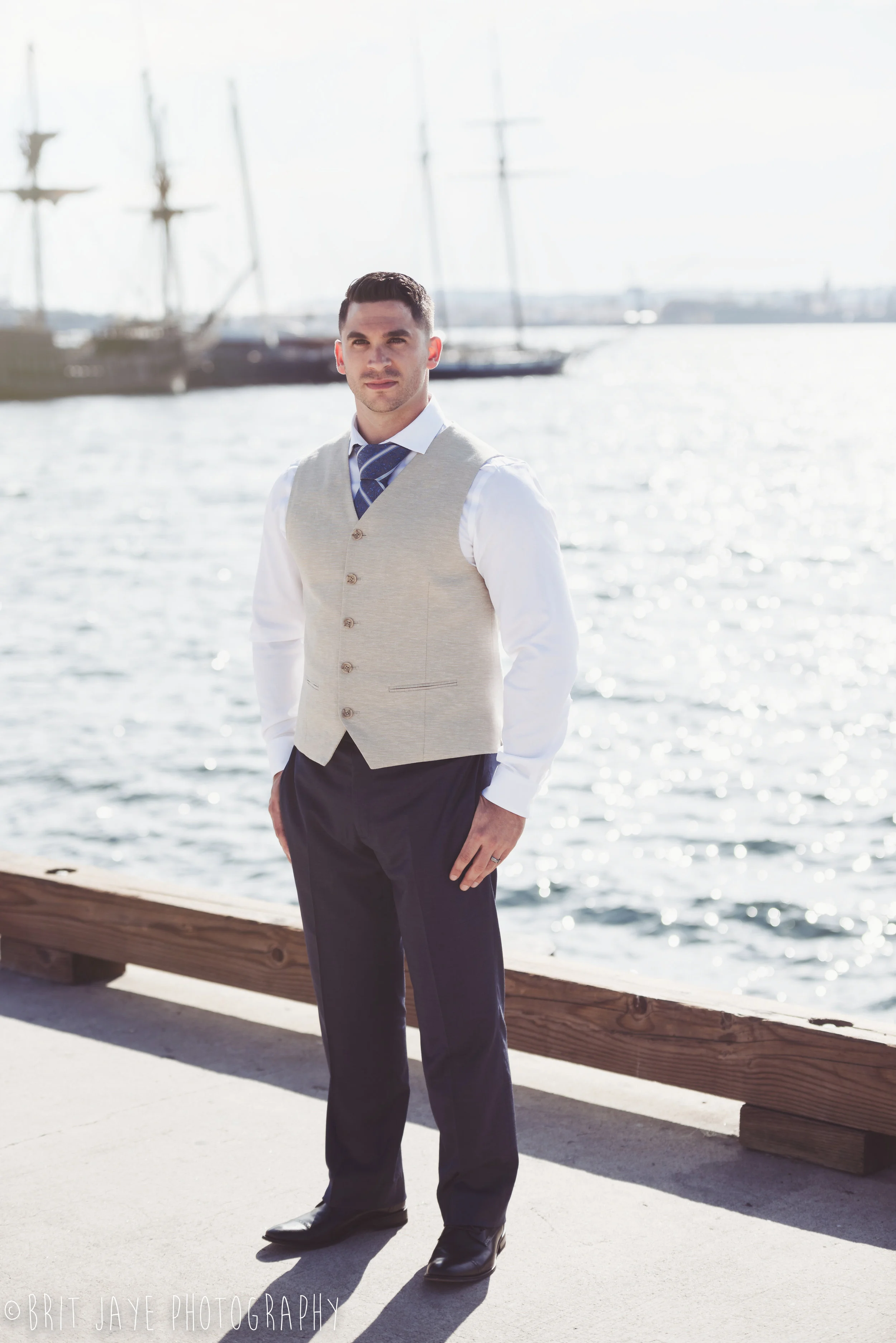 Kelly & Ryan recently tied the knot at their intimate downtown San Diego wedding ceremony. They said 'I do' at the gorgeous outdoor ceremony location at the San Diego County Administration Center, which overlooks the San Diego bay. This downtown San Diego elopement was absolutely adorable! I had the honor of photographing these two wonderful people for their engagement as well- and they were so amazing together, when they asked if I was available to photograph their wedding day- I was over the moon. They both looked so fantastic- I love the tee-length pink dress Kelly chose, and the also the huge tie-knot that really made Ryan's look complete. So excited to share a few moments from their intimate ceremony! And of course, a huge congratulations to the Mr. & Mrs.! Wishing you a happiest ever after!