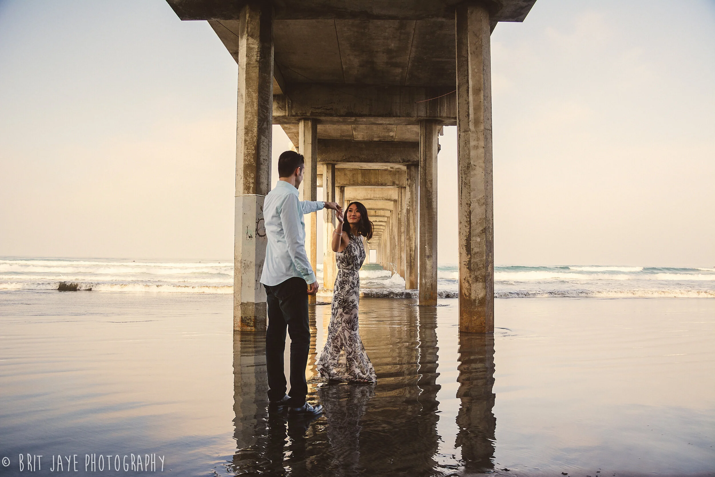 Of course we had to take advantage of the amazing beach and pier just behind Scripps Seaside Forum. I absolutely love beach engagement photos, and Scripps Pier is a really great location on it’s own! The variety we were able to get from these two locations in such a short amount of time, was really awesome! I would definitely recommend checking it out, if you are looking for a more modern engagement shoot.