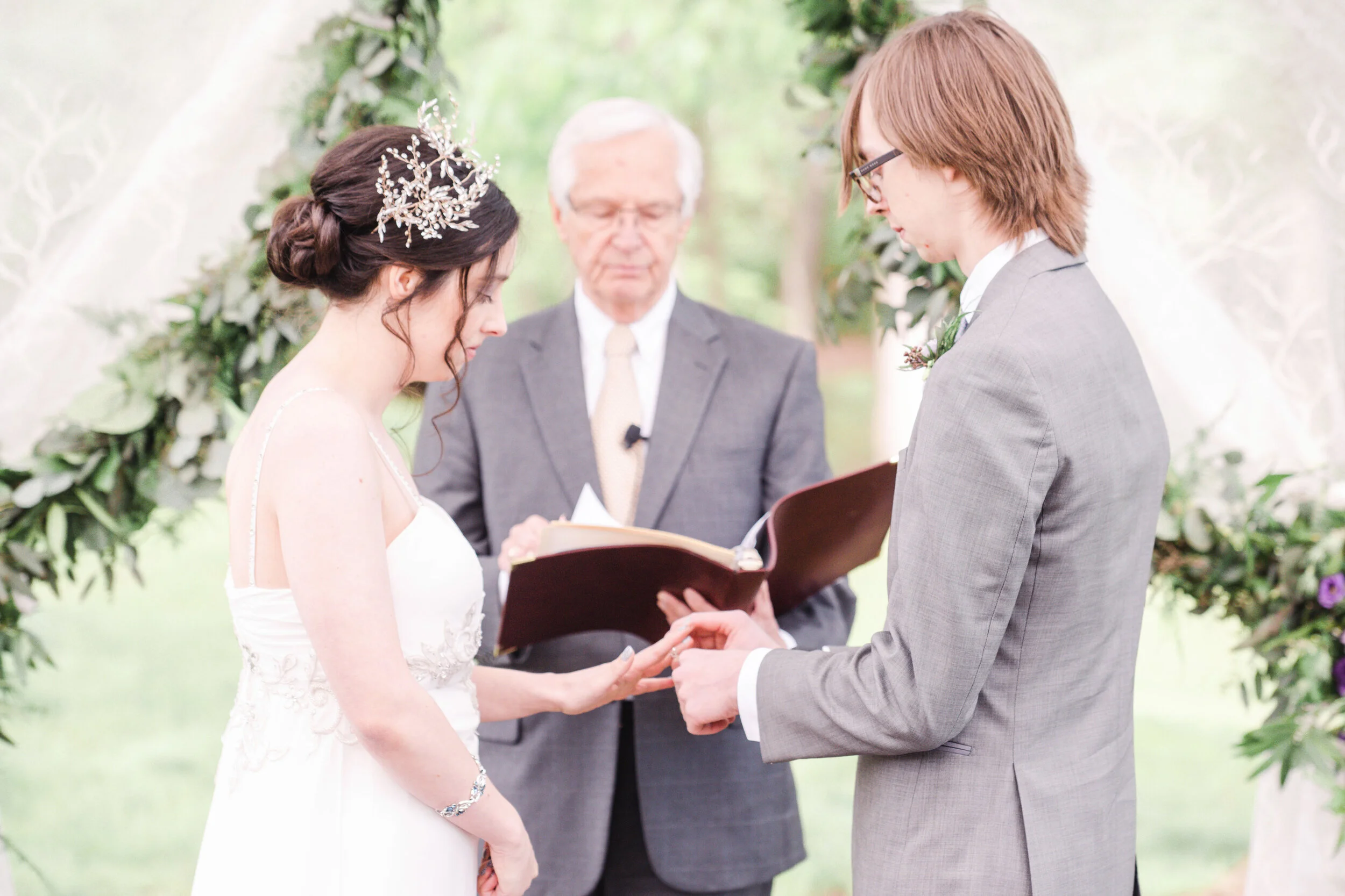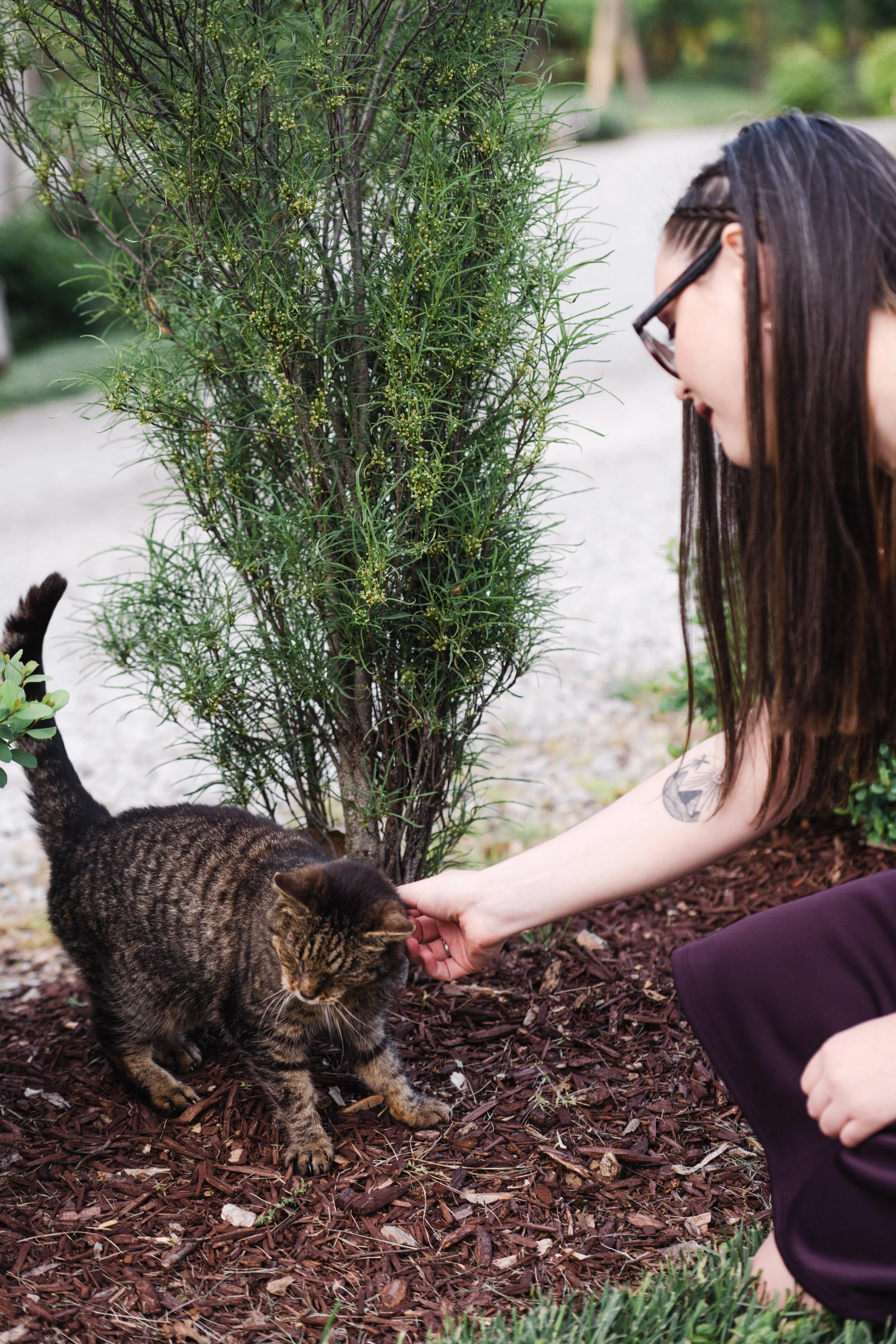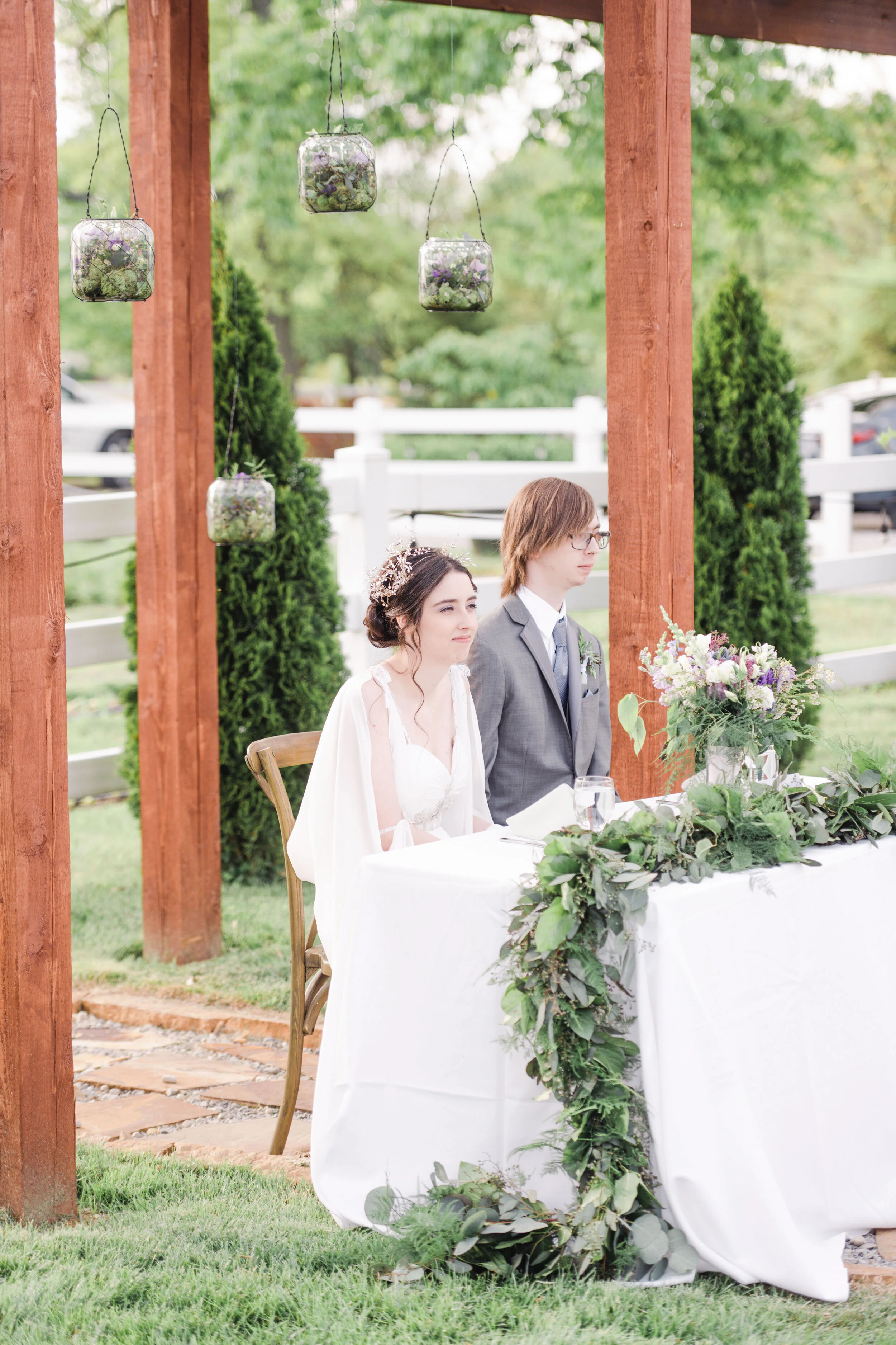 Saturday was pure wedding magic. Christina & Ryan had an ethereal garden wedding in Loveland, Ohio. Every detail came together to create an other-worldly vibe. From Christina’s bridal headpiece to the ornate cake cutting utensils- this wedding was romantic and atmospheric. Guests enjoyed an outdoor dinner reception while the sun set over the garden at The Marmalade Lily. The resident wedding cat even came out to say hello to guests. A huge congratulations to the Mr. & Mrs.! Enjoy this quick sneak peek from Christina & Ryan’s spring garden wedding.