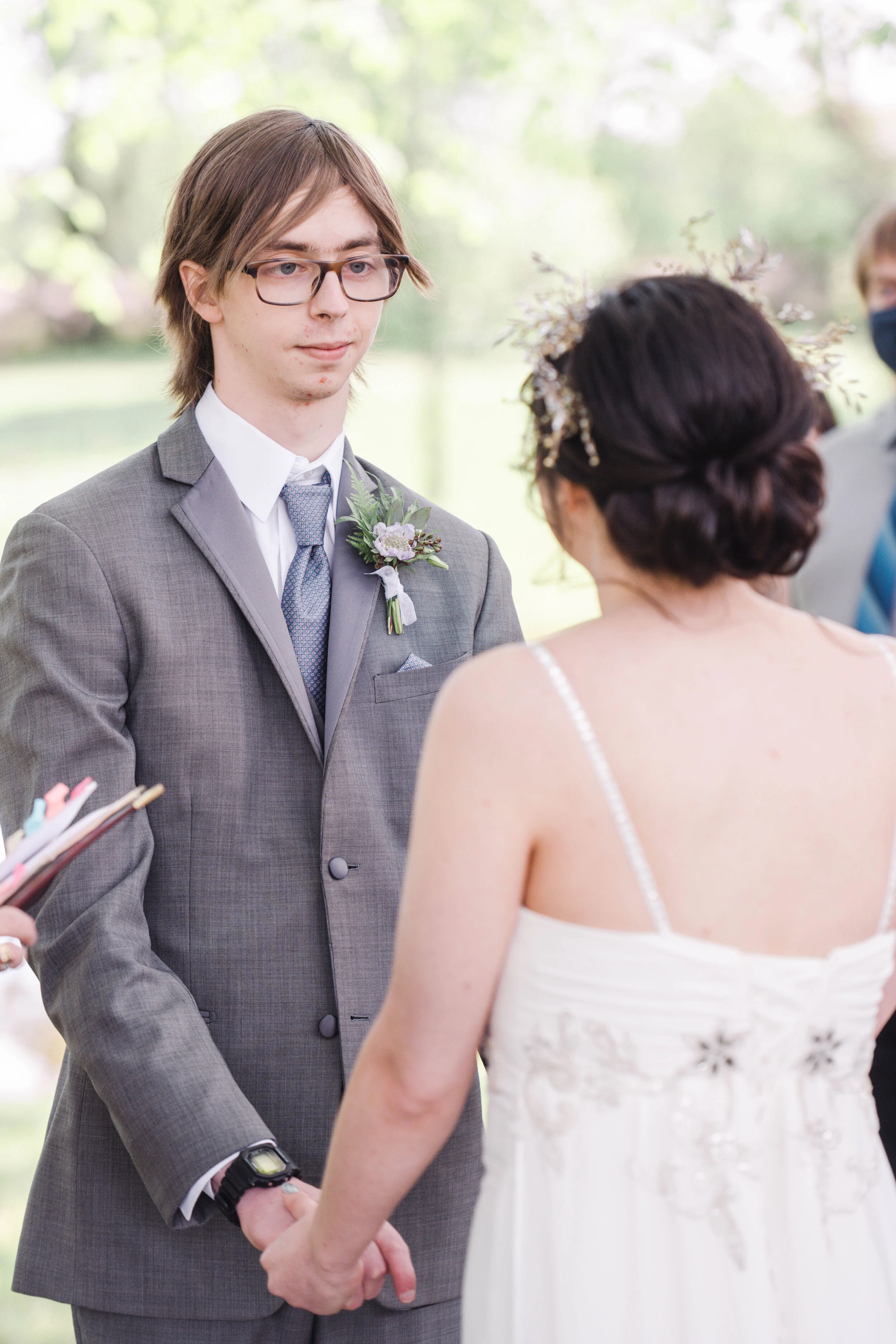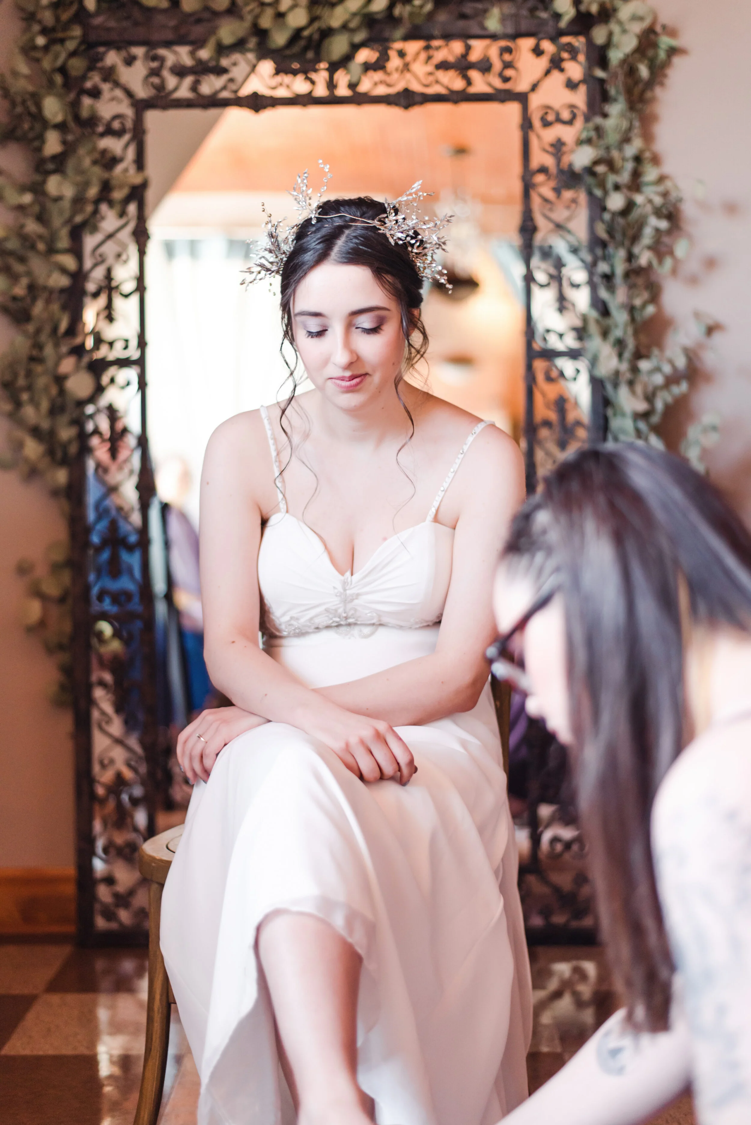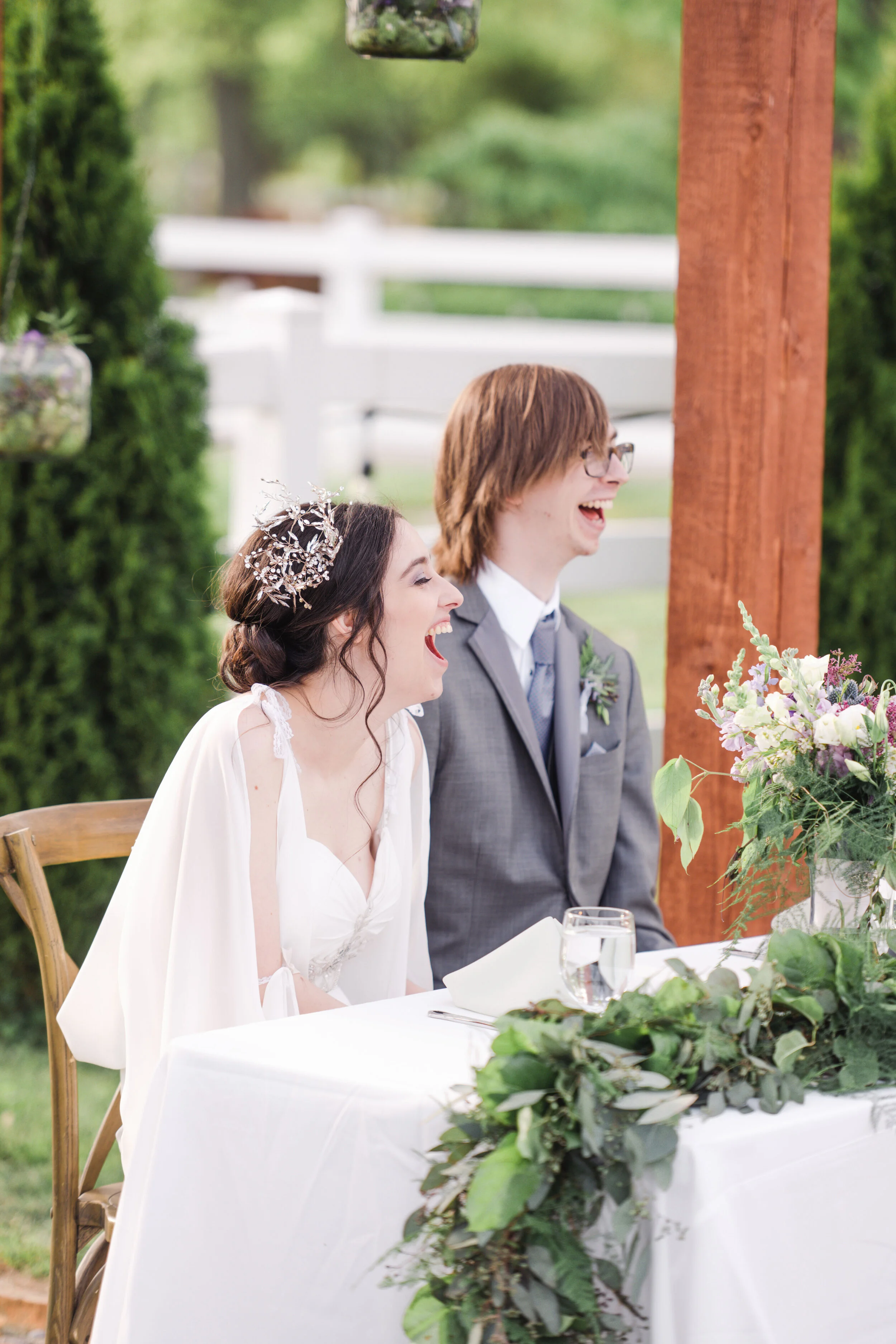 Saturday was pure wedding magic. Christina & Ryan had an ethereal garden wedding in Loveland, Ohio. Every detail came together to create an other-worldly vibe. From Christina’s bridal headpiece to the ornate cake cutting utensils- this wedding was romantic and atmospheric. Guests enjoyed an outdoor dinner reception while the sun set over the garden at The Marmalade Lily. The resident wedding cat even came out to say hello to guests. A huge congratulations to the Mr. & Mrs.! Enjoy this quick sneak peek from Christina & Ryan’s spring garden wedding.