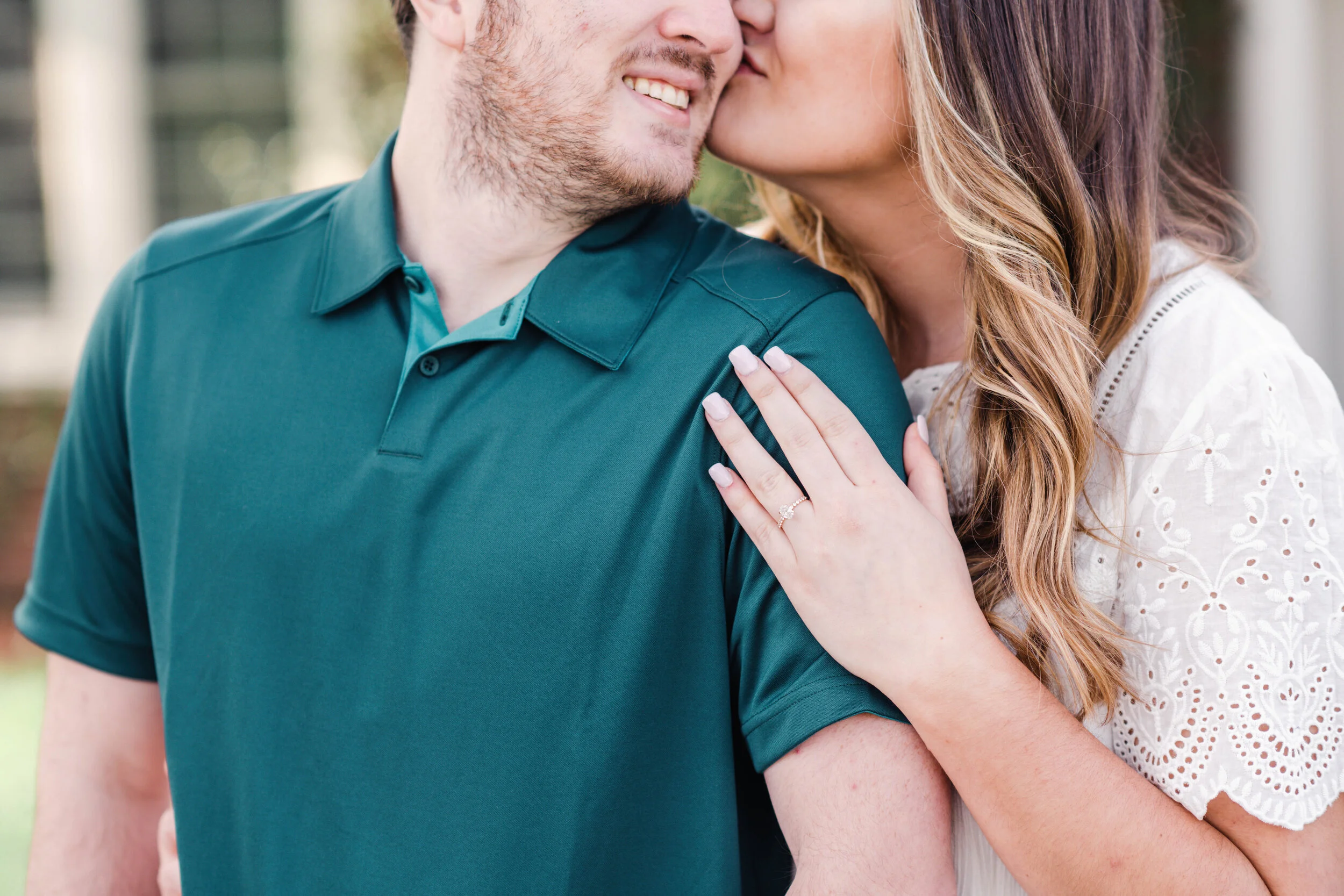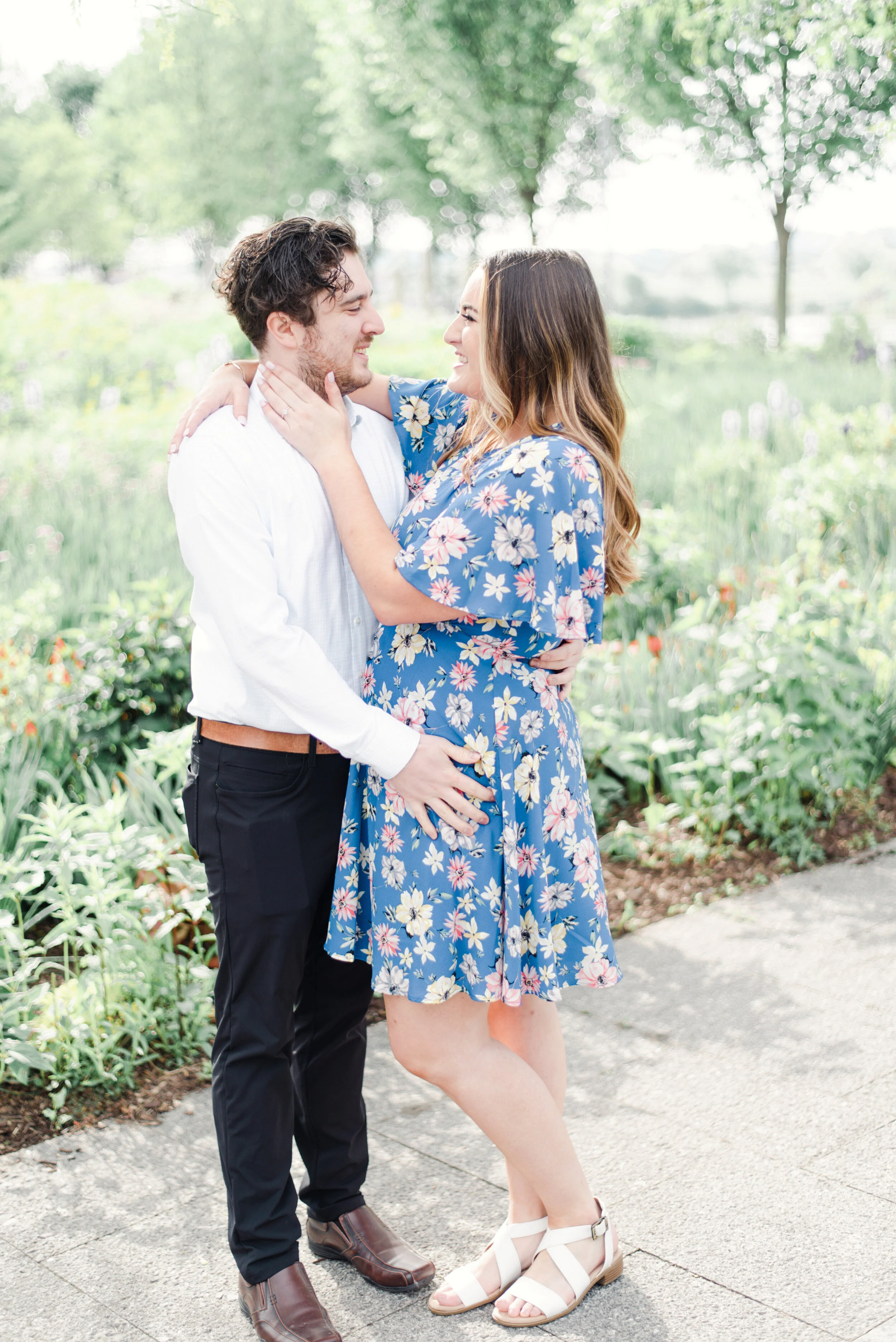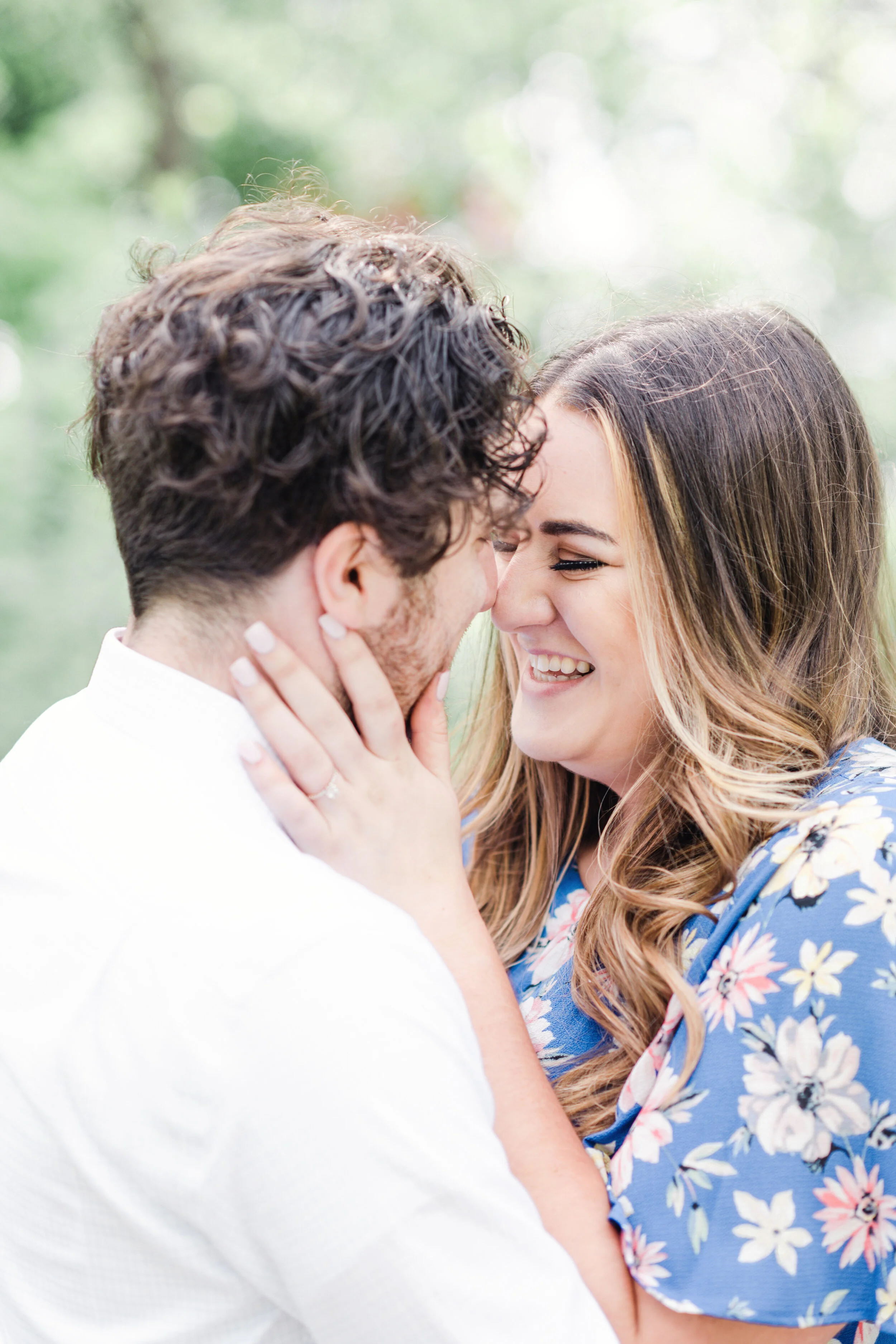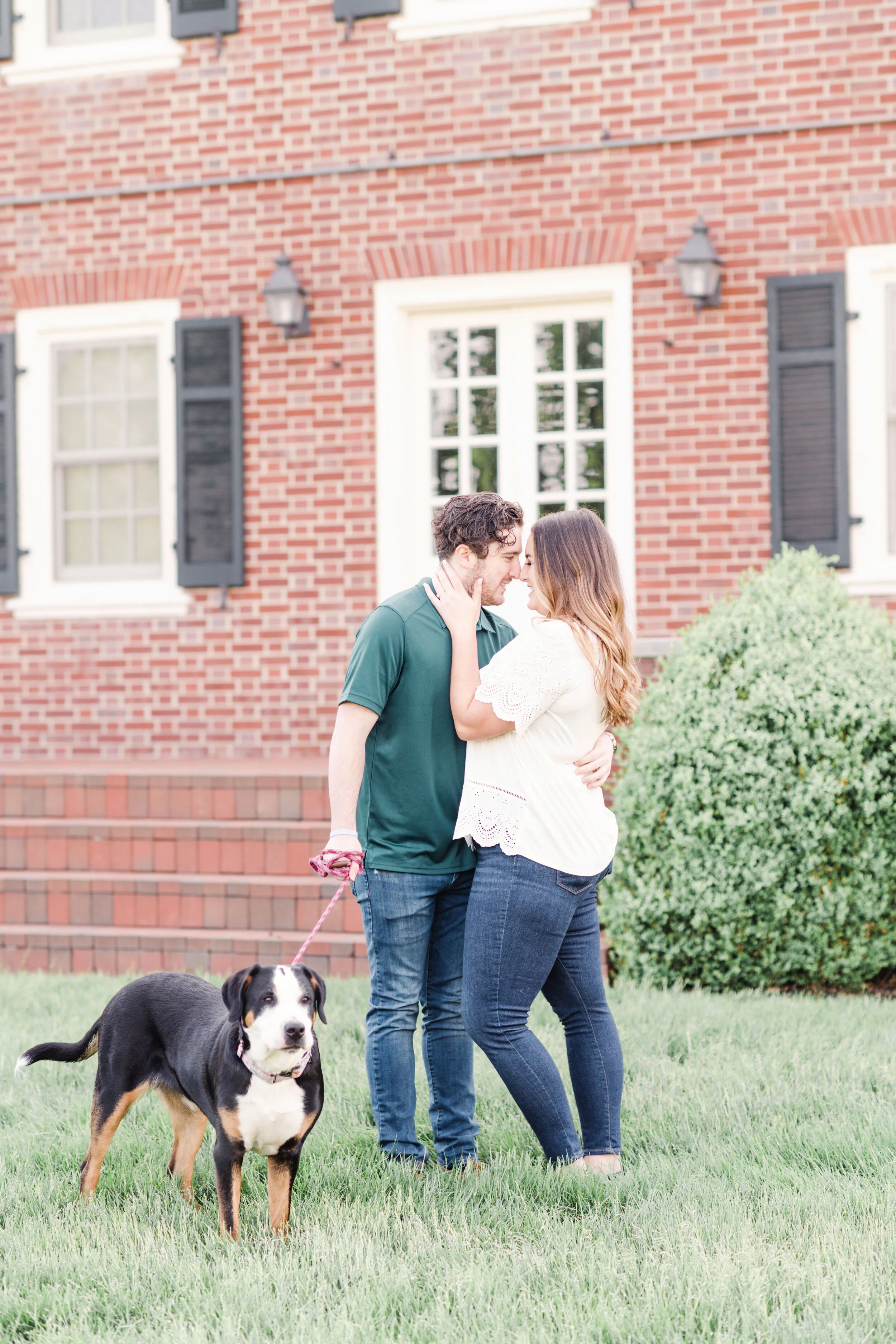 This spring engagement session is what dreams are made of. We began our time together at French Park in Cincinnati. K + J brought their dog, Geneva, along to be a part of the beginning of their engagement session. Towards the end of our time at French Park, a friend came by to pick their pup up so they could spend some time getting images of just the two of them. Having a friend ready come help with your dog during your engagement session is so helpful. I wrote a whole post about it, which you can find here. We chose an early morning session time on a weekday to take advantage of the beautiful morning light and also to minimize distractions for the dog. Choosing an early morning session, especially on a weekday, generally means you will have the location all to yourself- which is such a great experience. It totally makes up for having to wake up so early to get ready!