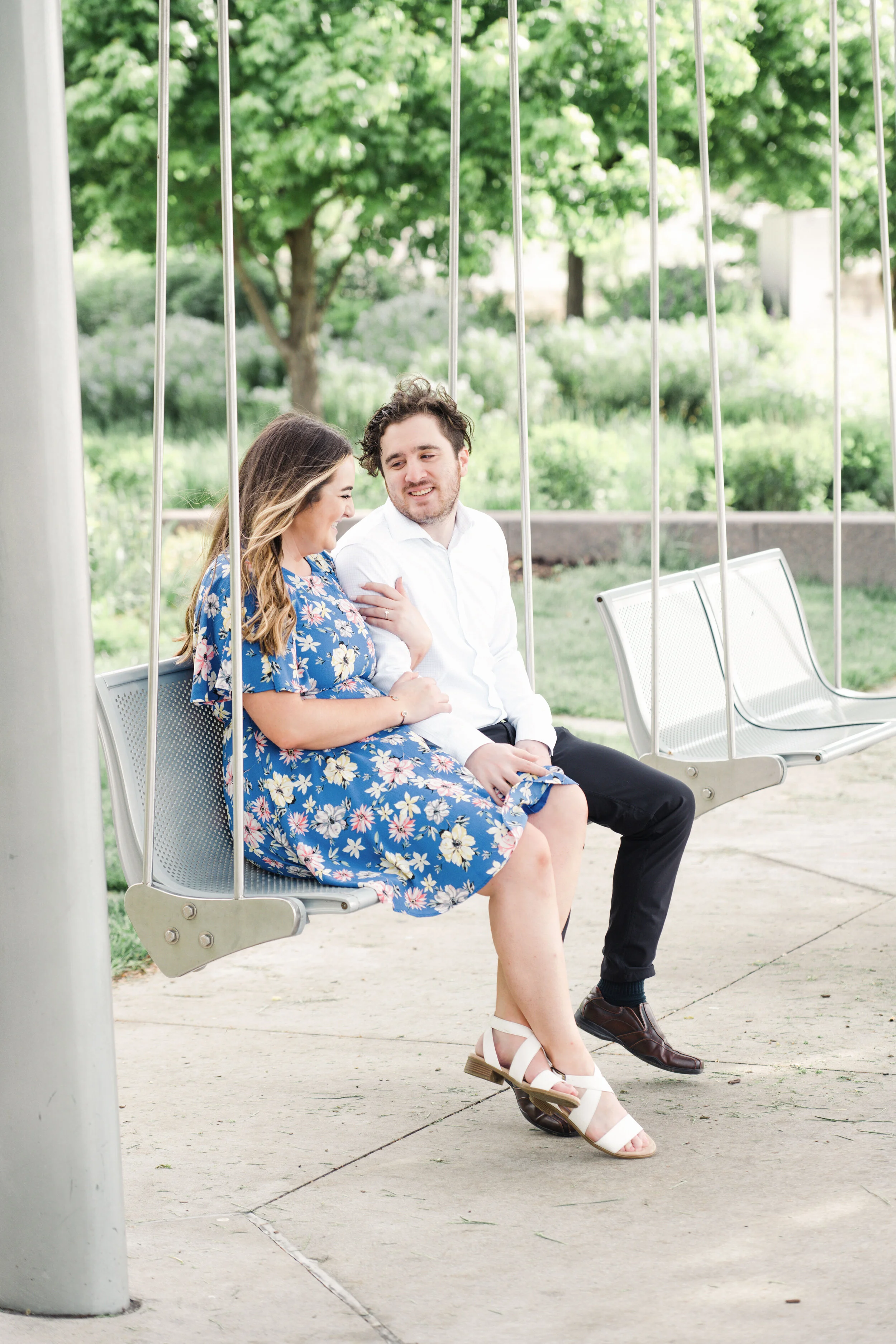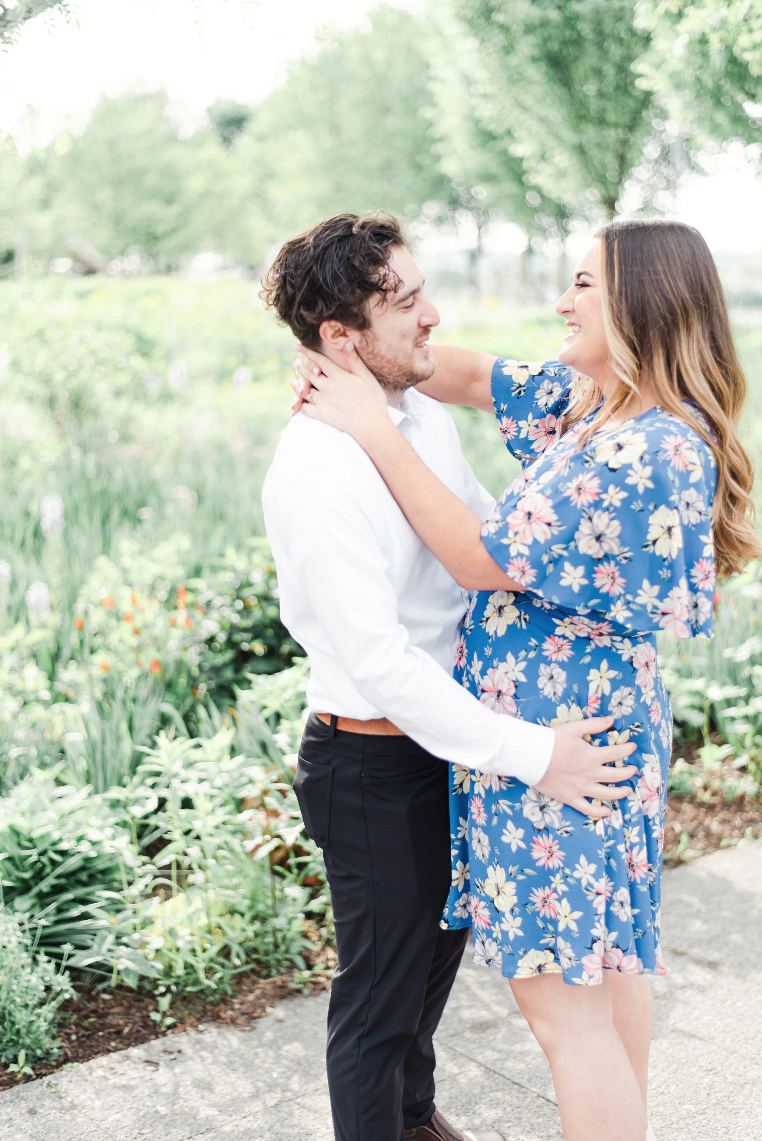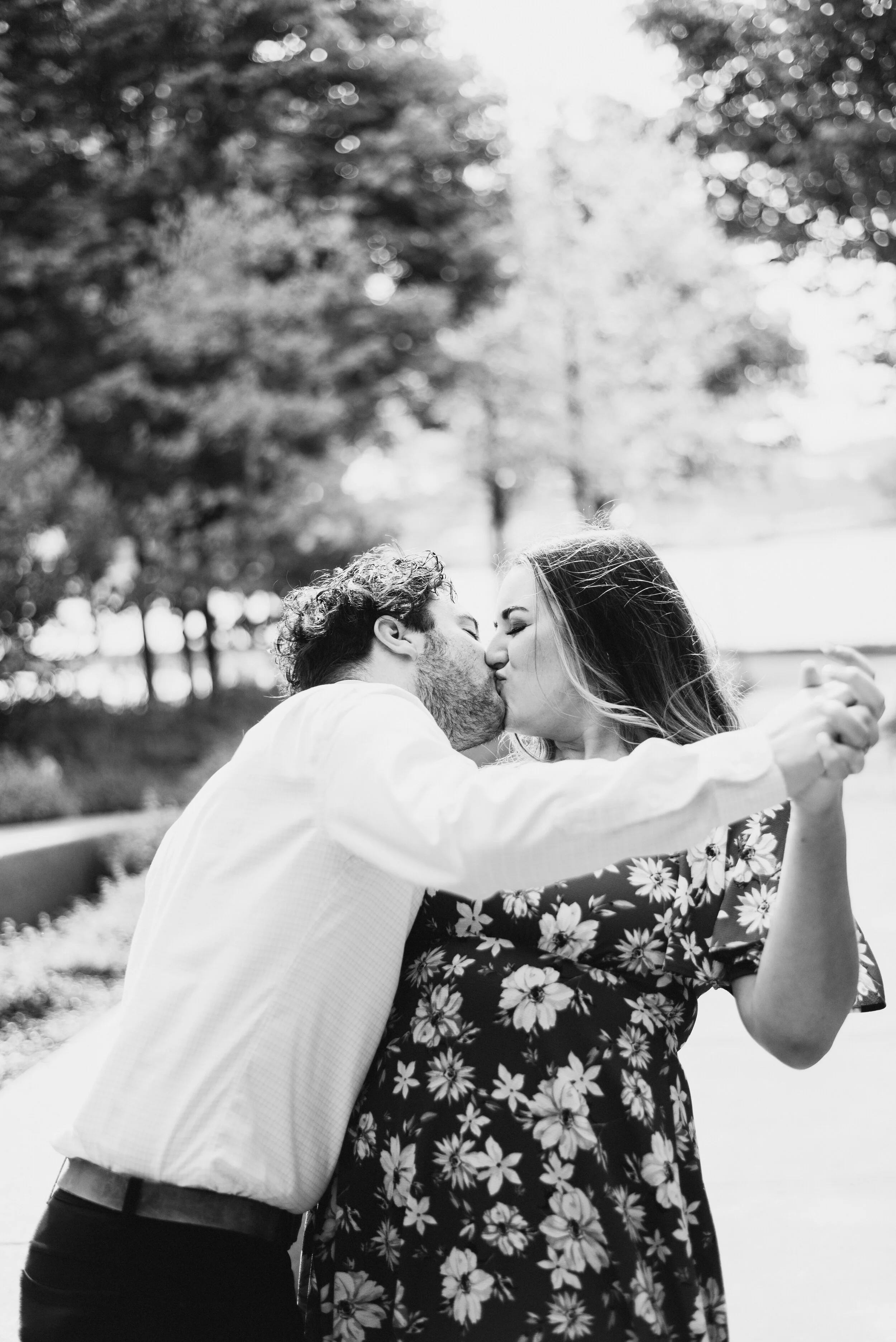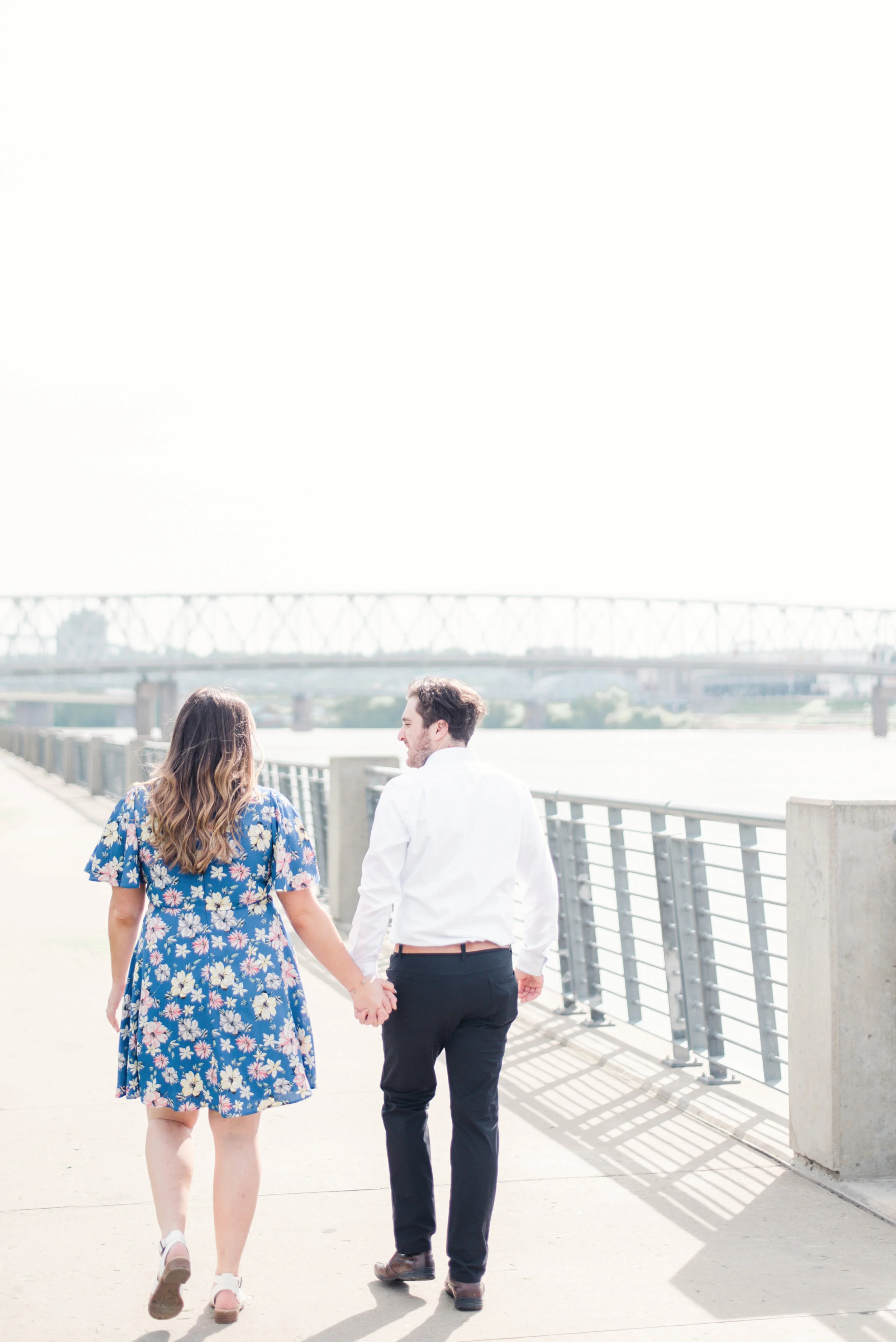 Our second location for their engagement session was Smale Park, which is located right on the riverfront in downtown Cincinnati. Itās a gorgeous park with great views of the Roebling bridge and the Ohio river. This riverfront lark is one of the absolute best locations in Cincinnati for engagement photos. It has a huge variety in one small area. The bridge was u fee construction and access was blocked off when we were there, but usually you could also take advantage of that spot and get photos actually on the bridge as well. Enjoy this gorgeous Cincinnati engagement session! I am so excited to photograph K & J on their wedding day later this year!