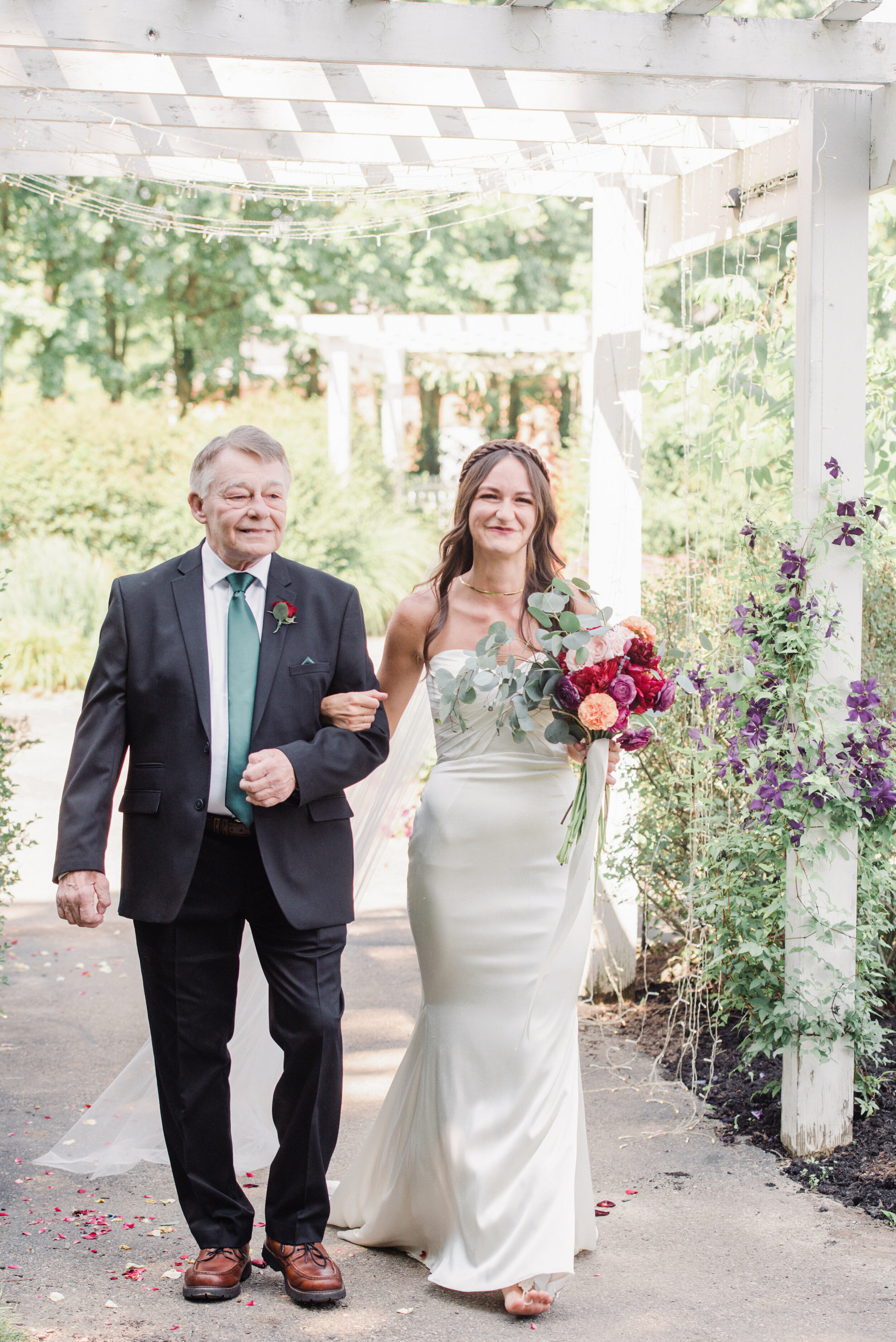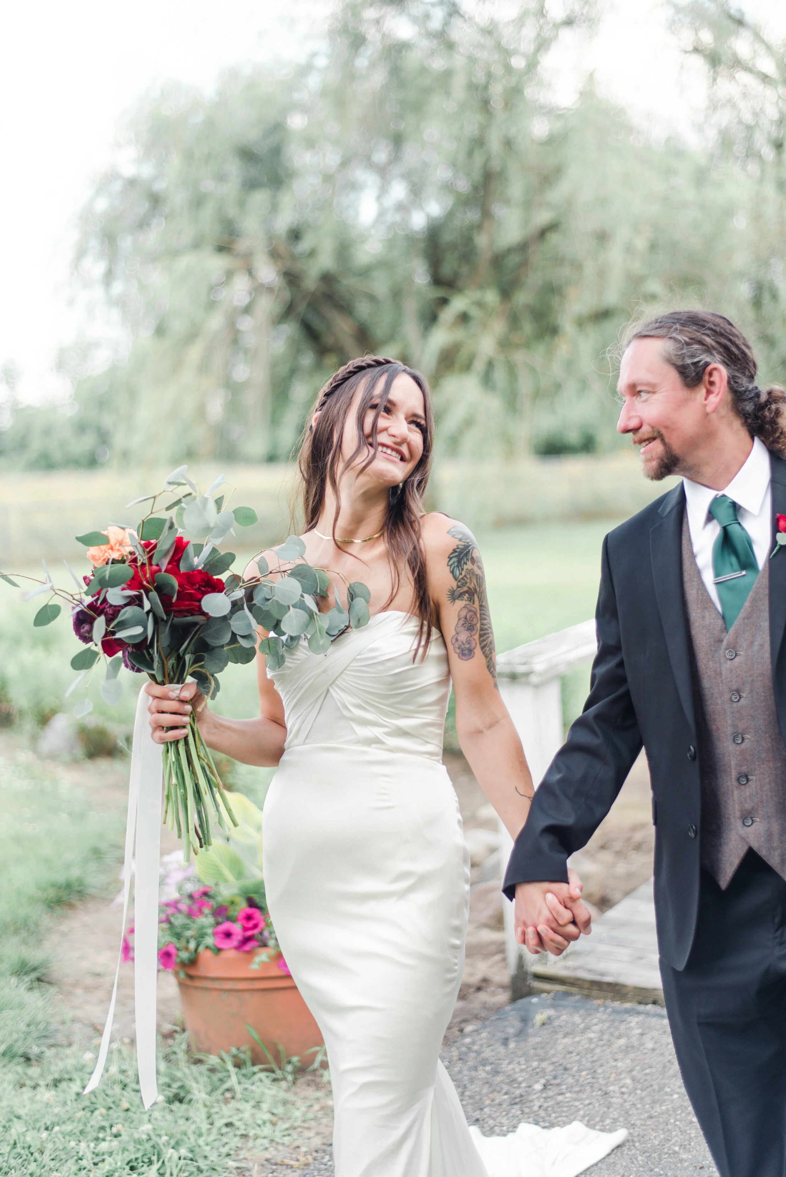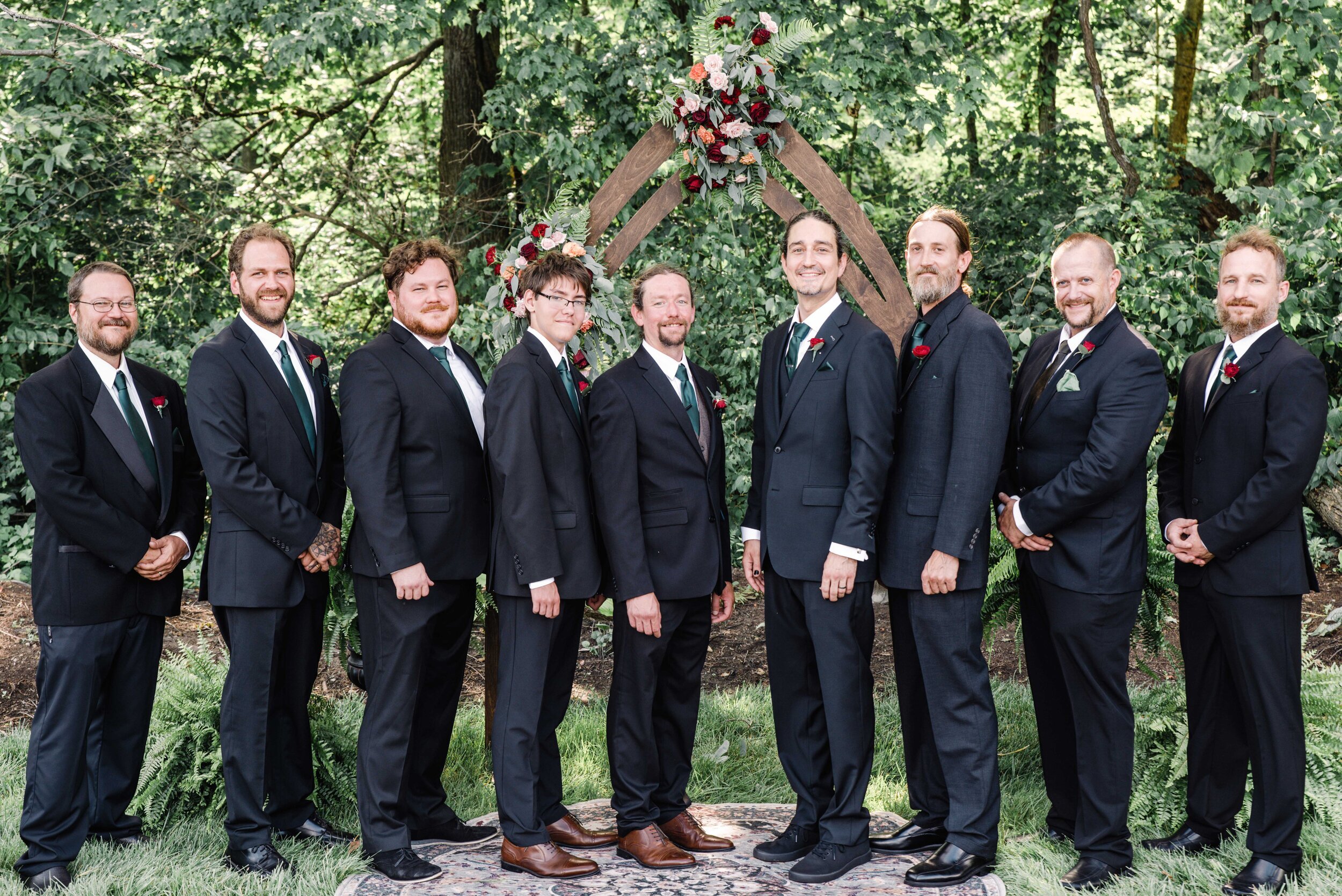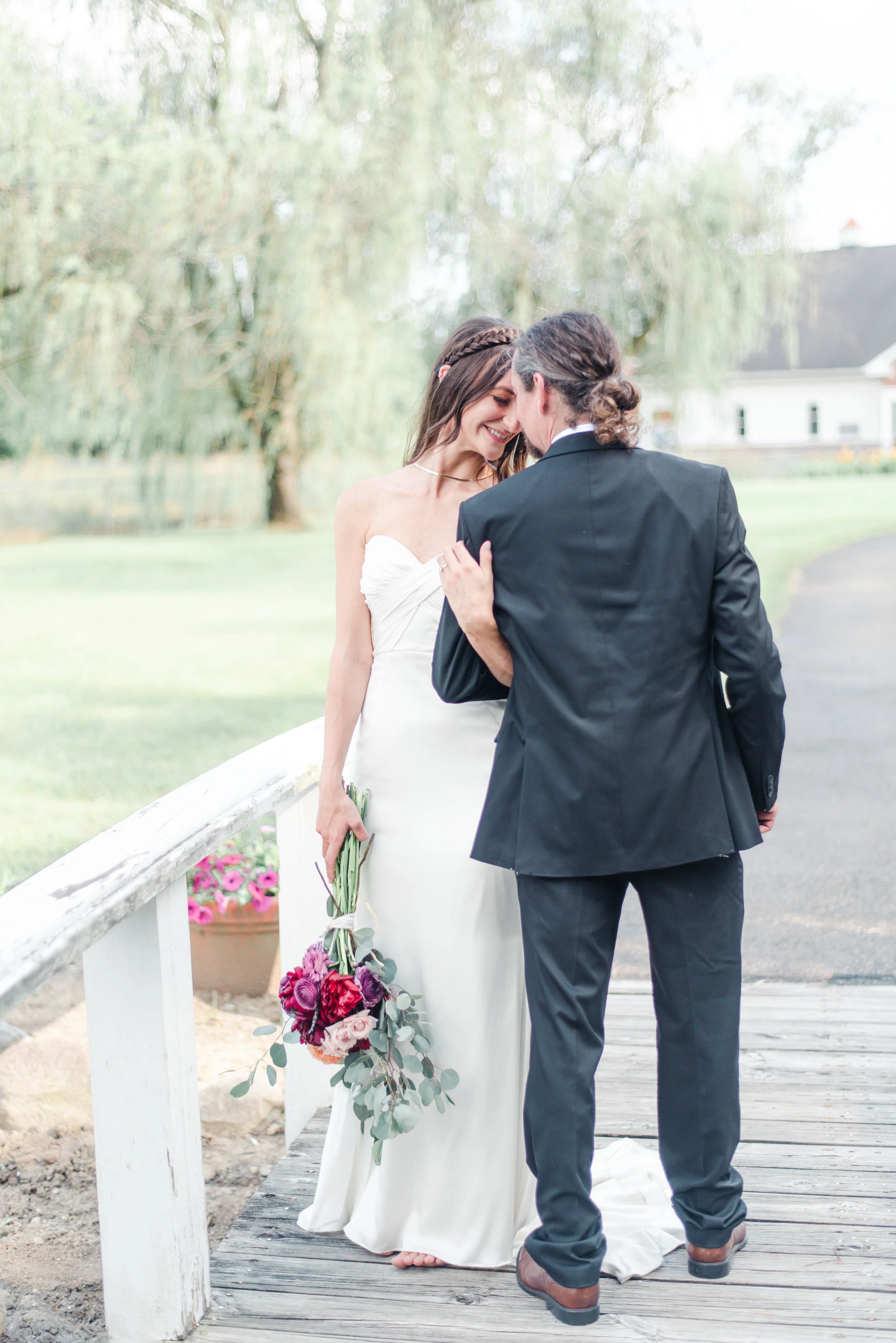 Sunday evening, Samantha & Charles tied the knot in front of their family and friends at the Estate at Sunset Farm. This venue is unique in that you can have your ceremony in so many different locations around the property. Samantha and Charles chose to have their wedding ceremony in the shade of tall trees, with the late afternoon light streaming through the branches. The effect was pure magic.