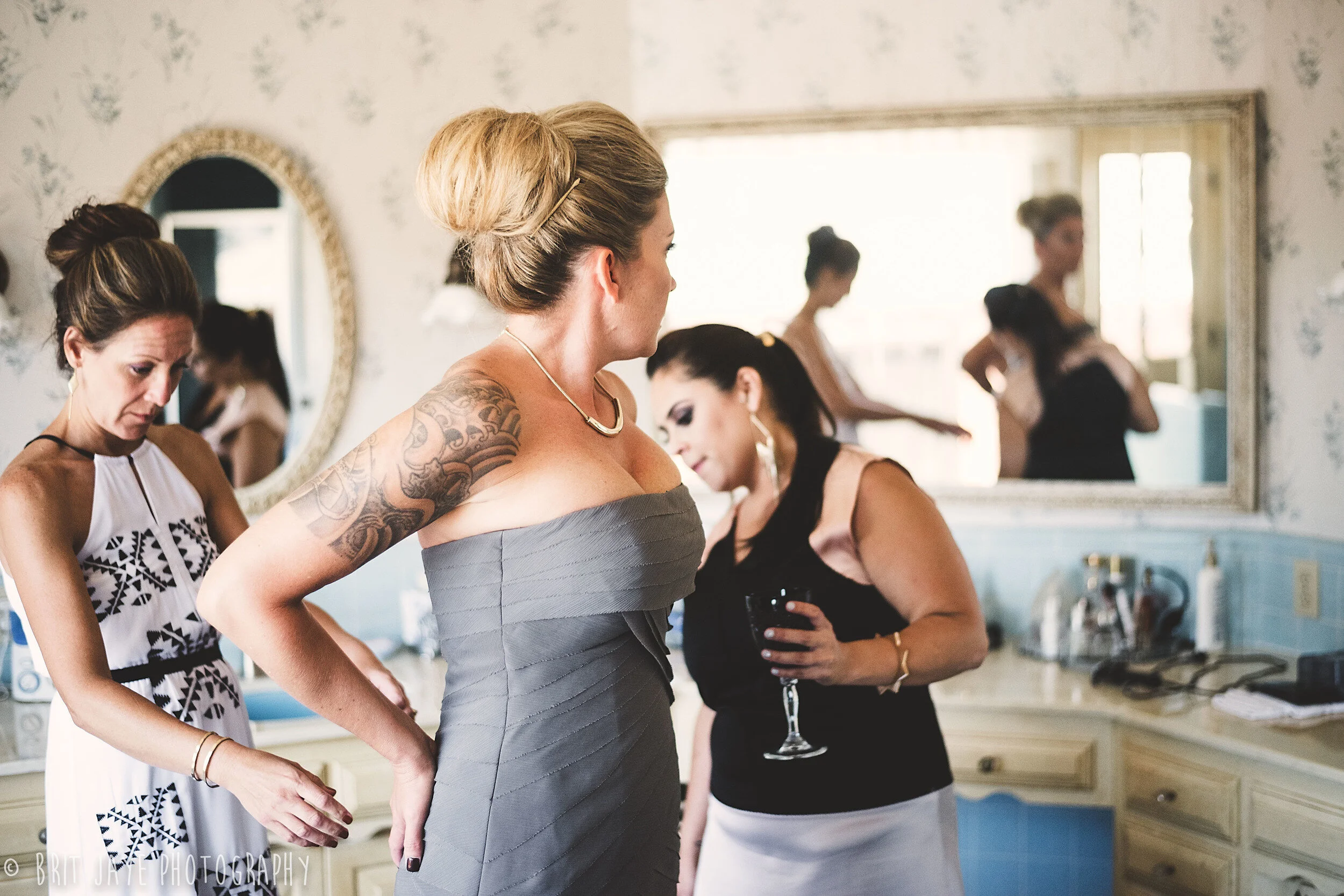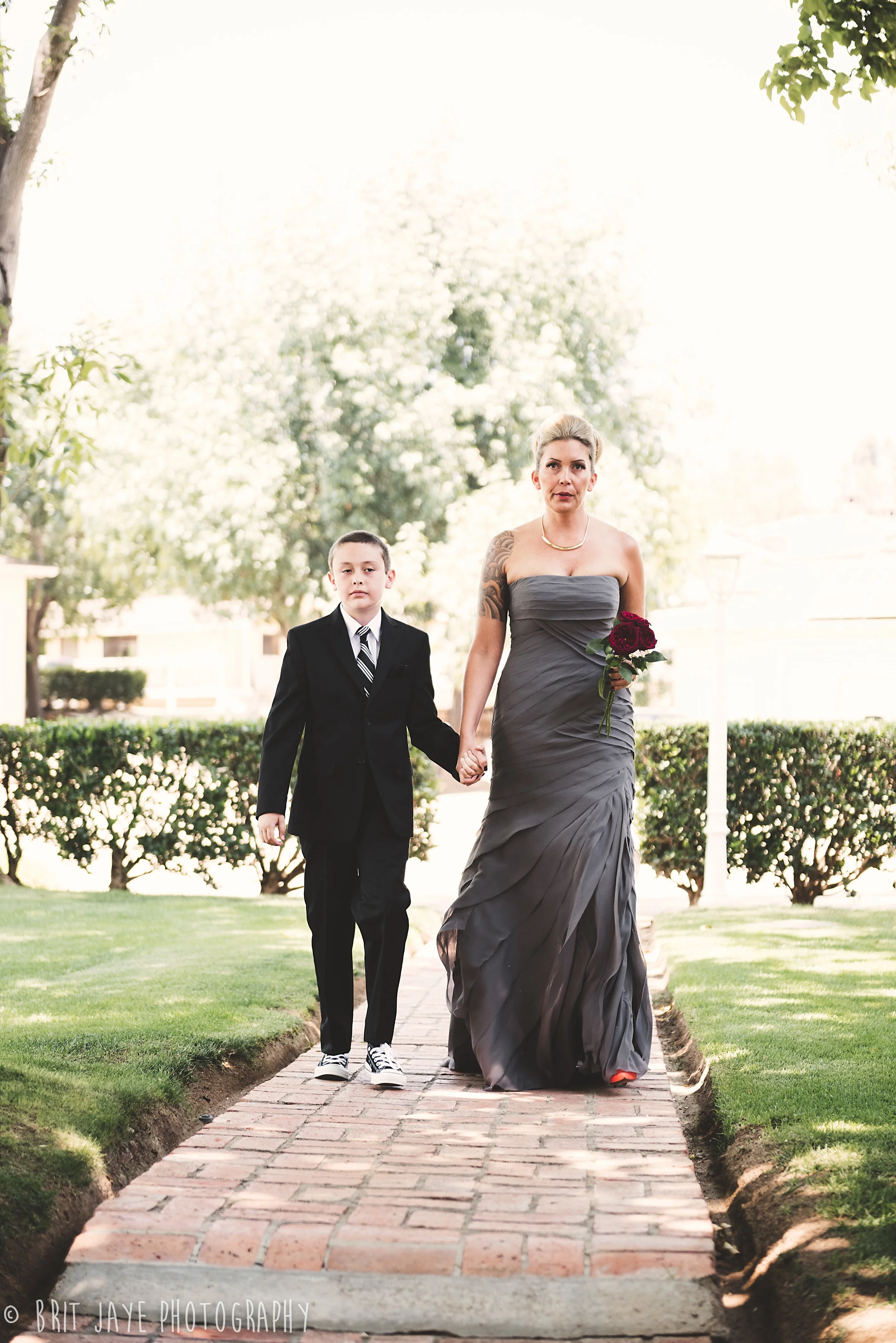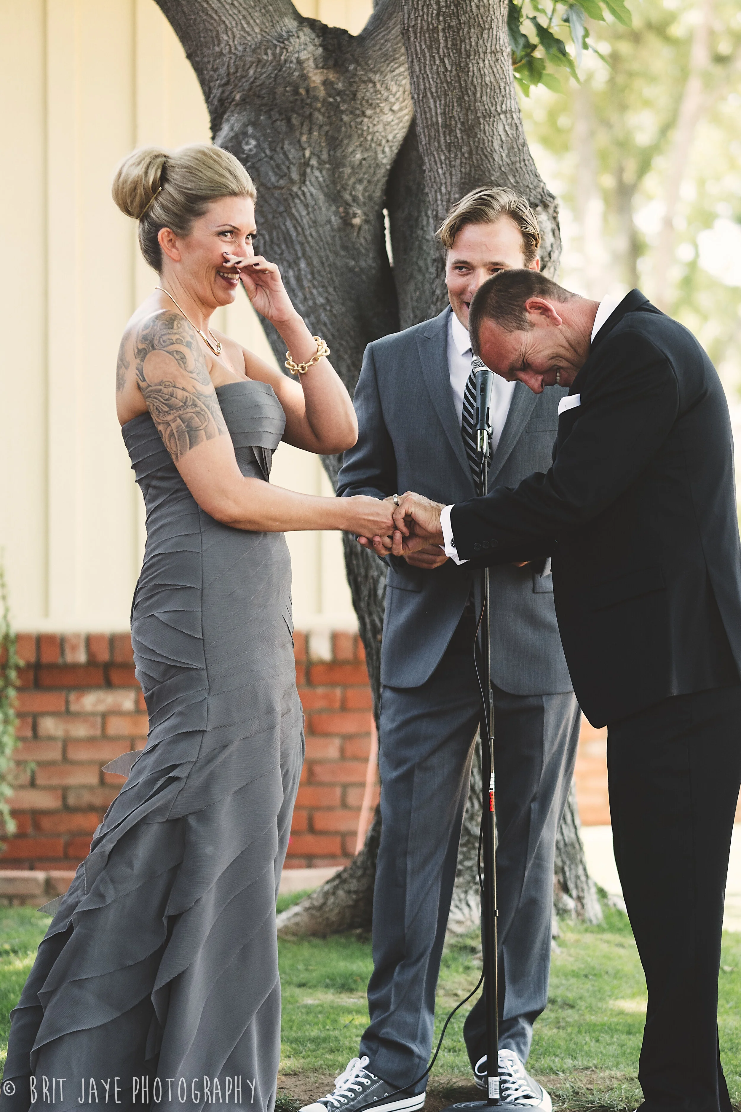 Nicole's sense of fashion was also incredible. She looked stunning in her non-traditional gray wedding gown by Vera Wang. Her gold snake hairpins were a glorious detail that should also be pointed out. Her beautifully modern look was finished with a pair of exquisite orange suede pumps by Celine. The guys looked great in black with black Converses, also! Such a great looking group.