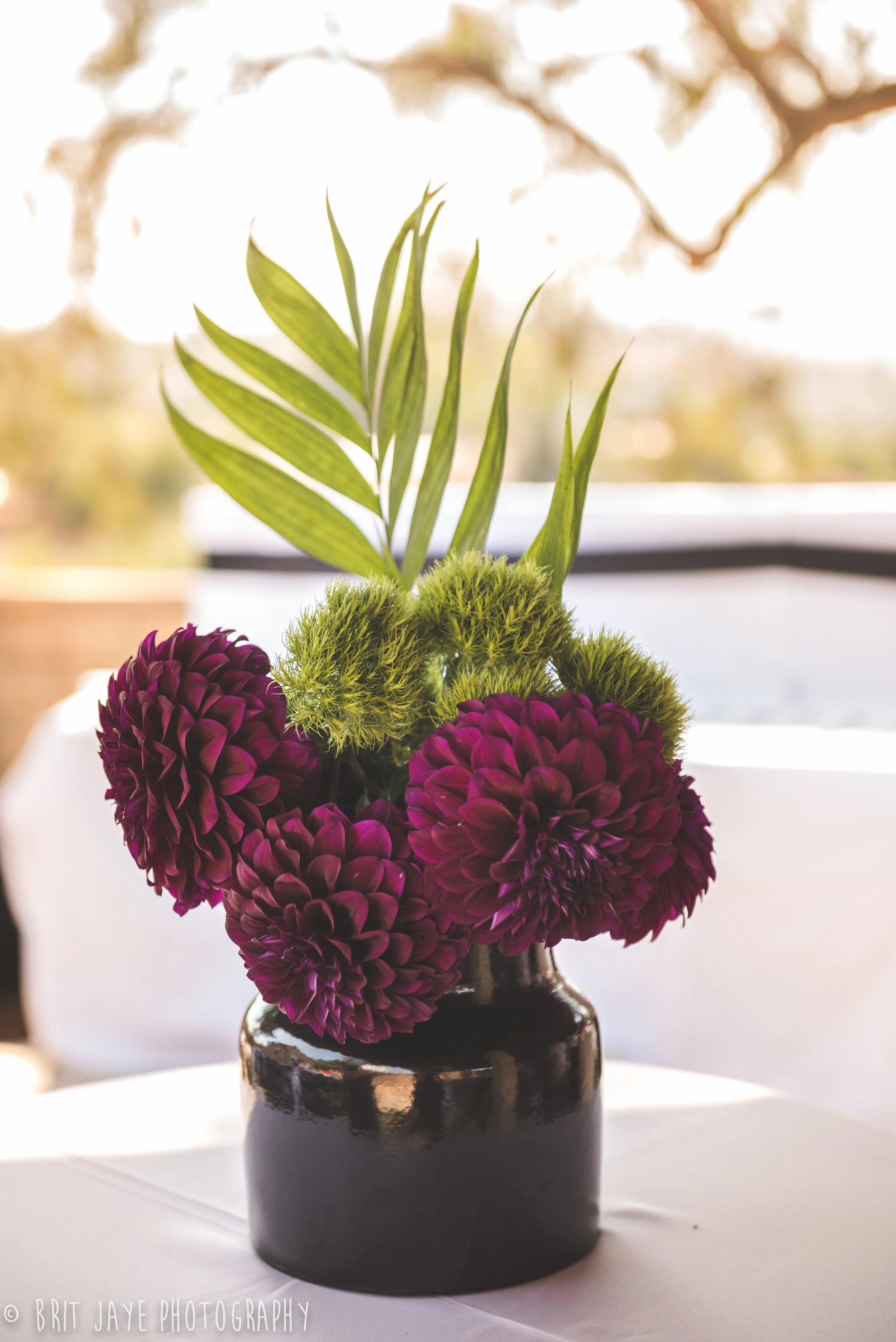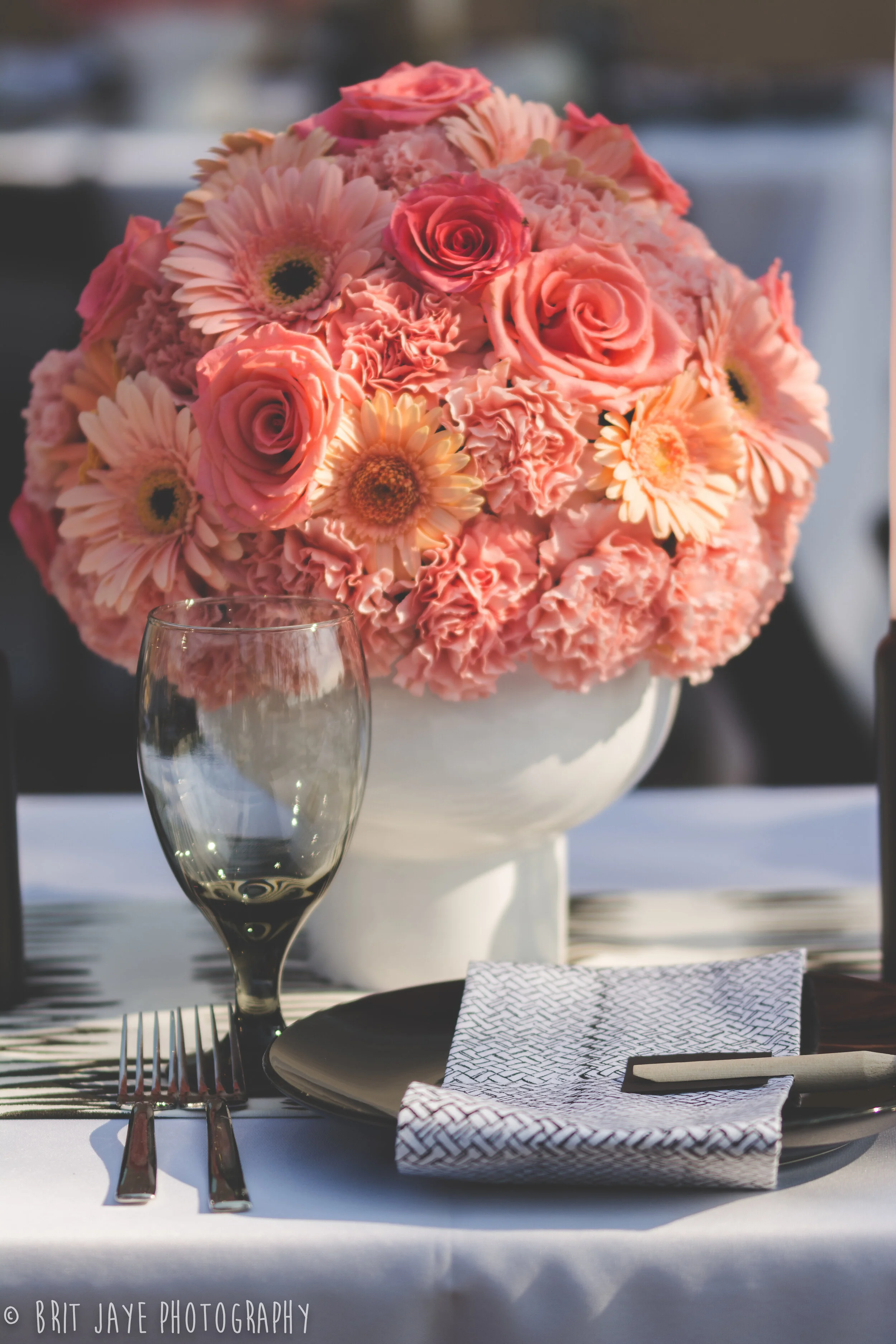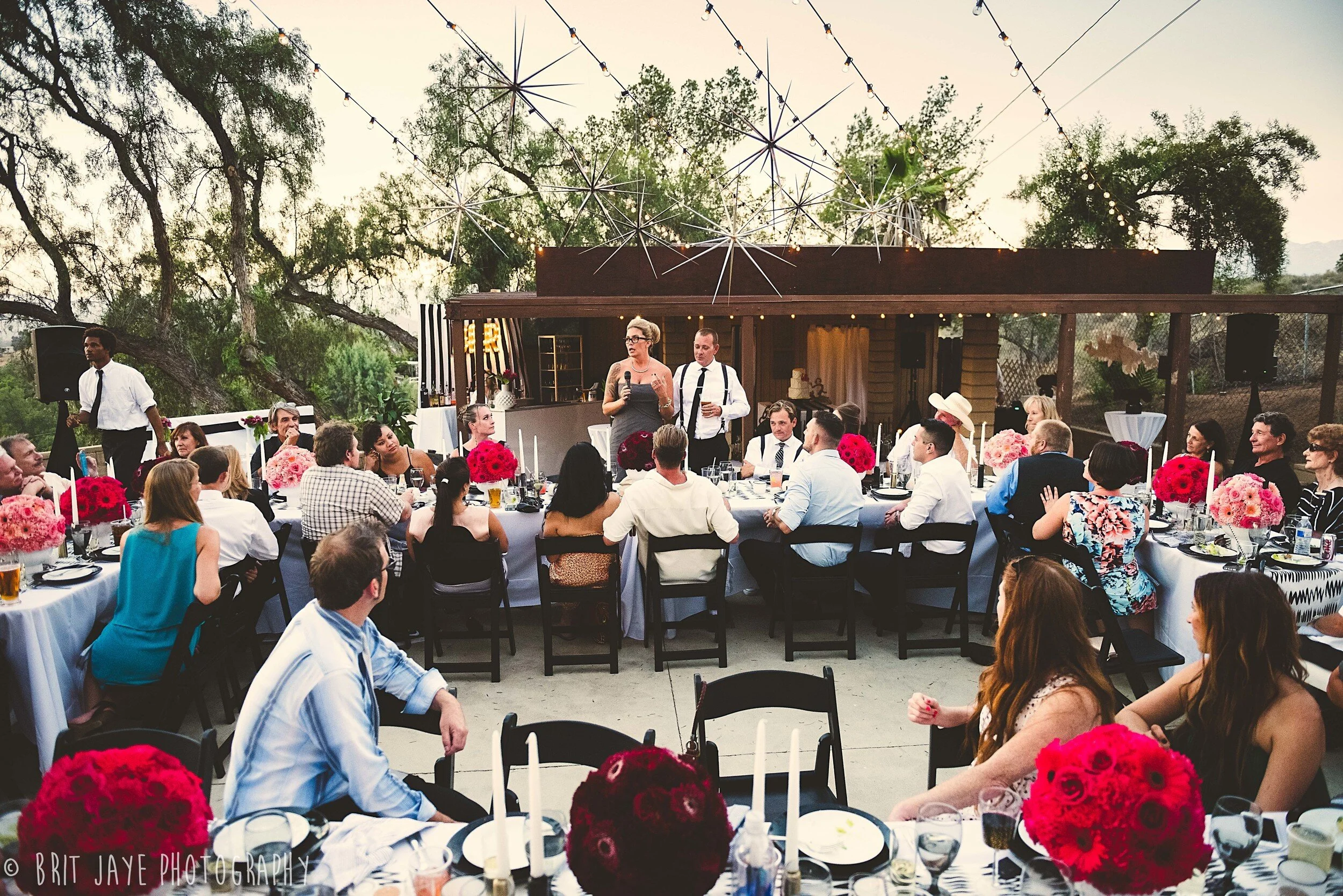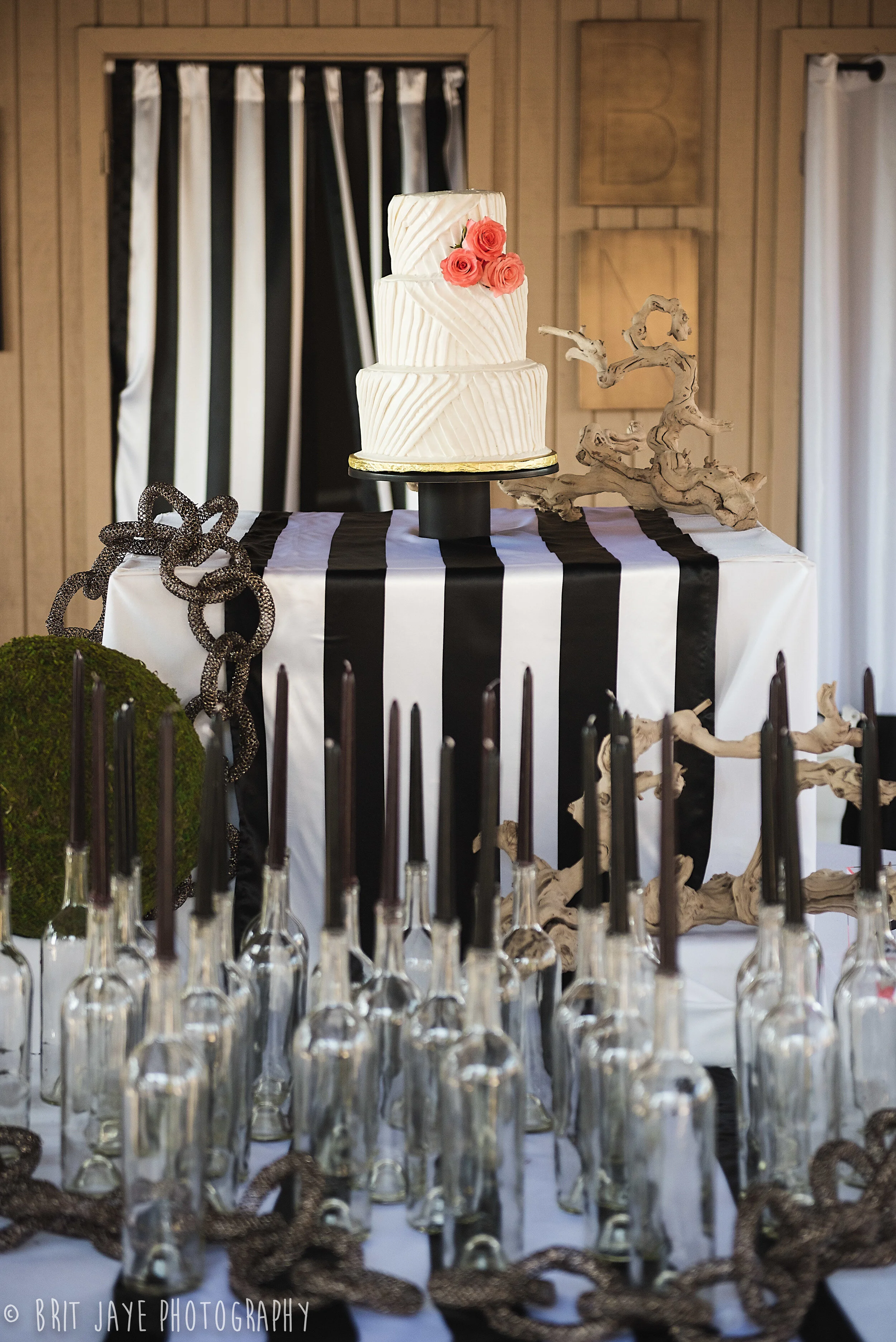 Nicole & Brant tied the knot at Brant’s grandmother’s house, the perfect ceremony location with an gorgeous mountain view. Then guests moved to the bride and groom's house for a backyard wedding reception unlike any other. Nicole's design work is truly incredible. She used a modern color scheme for the reception- black, white & gold with pink ombre accents. The look was modern and whimsical, and every detail was absolutely perfect. Nicole did everything herself, including the gorgeous modern floral arrangements.